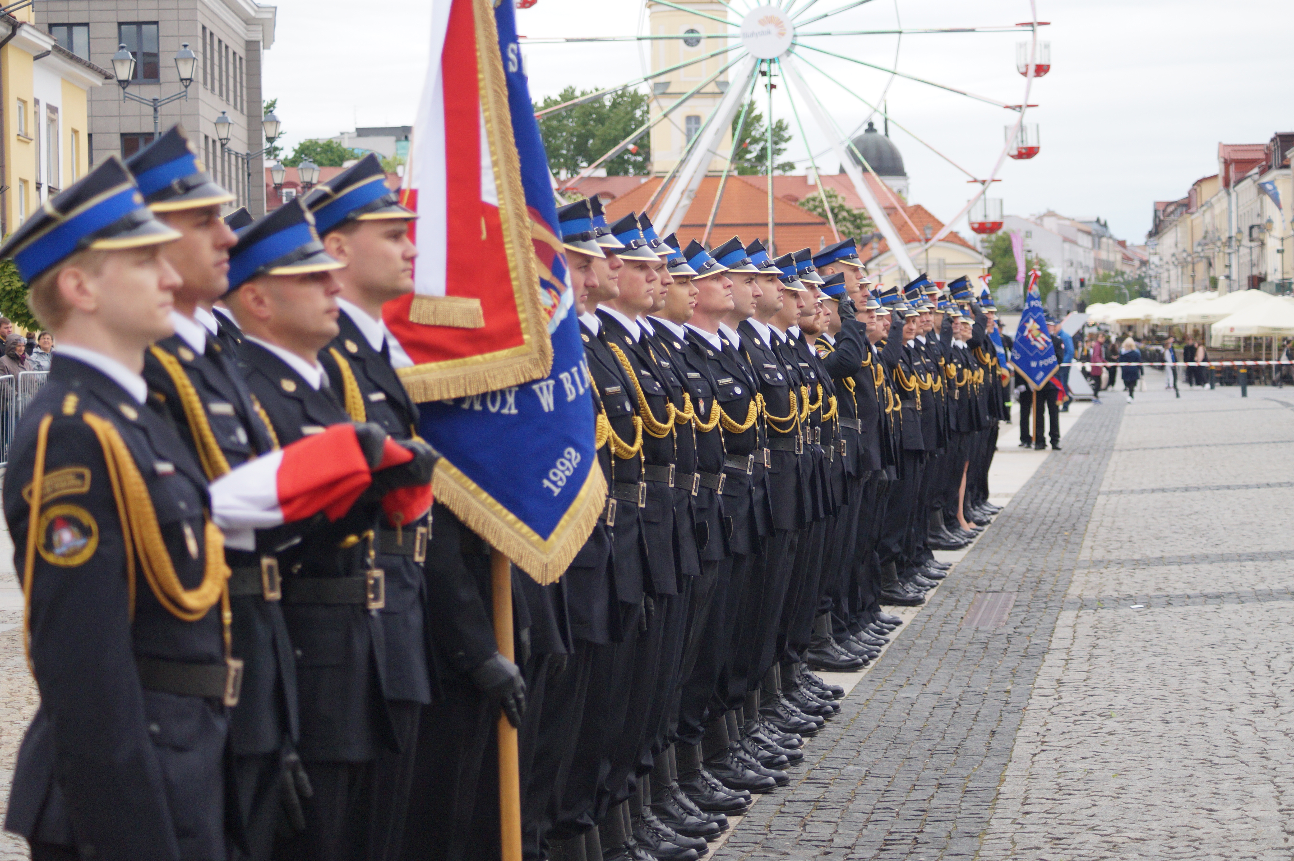 Wspaniała Defilada Kompanii Reprezentacyjnej KW PSP w Białymstoku, pocztów sztandarowych i pododdziałów PSP w akompaniamencie Młodzieżowej Orkiestry Dętej Zespołu Szkół w Suchowoli zakończyła dzisiejsze uroczystości.