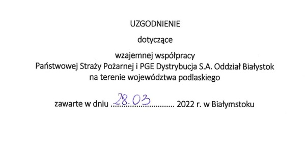 28 marca 2022 roku w siedzibie PGE Dystrybucja S.A. Oddział Białystok odbyło się spotkanie, w którym uczestniczył Podlaski Komendant Wojewódzki Państwowej Straży Pożarnej st. bryg. Sebastian Zdanowicz oraz Dyrektor Generalny PGE Dystrybucja S.A. Oddział Białystok Pan Jacek Michał Płoński.