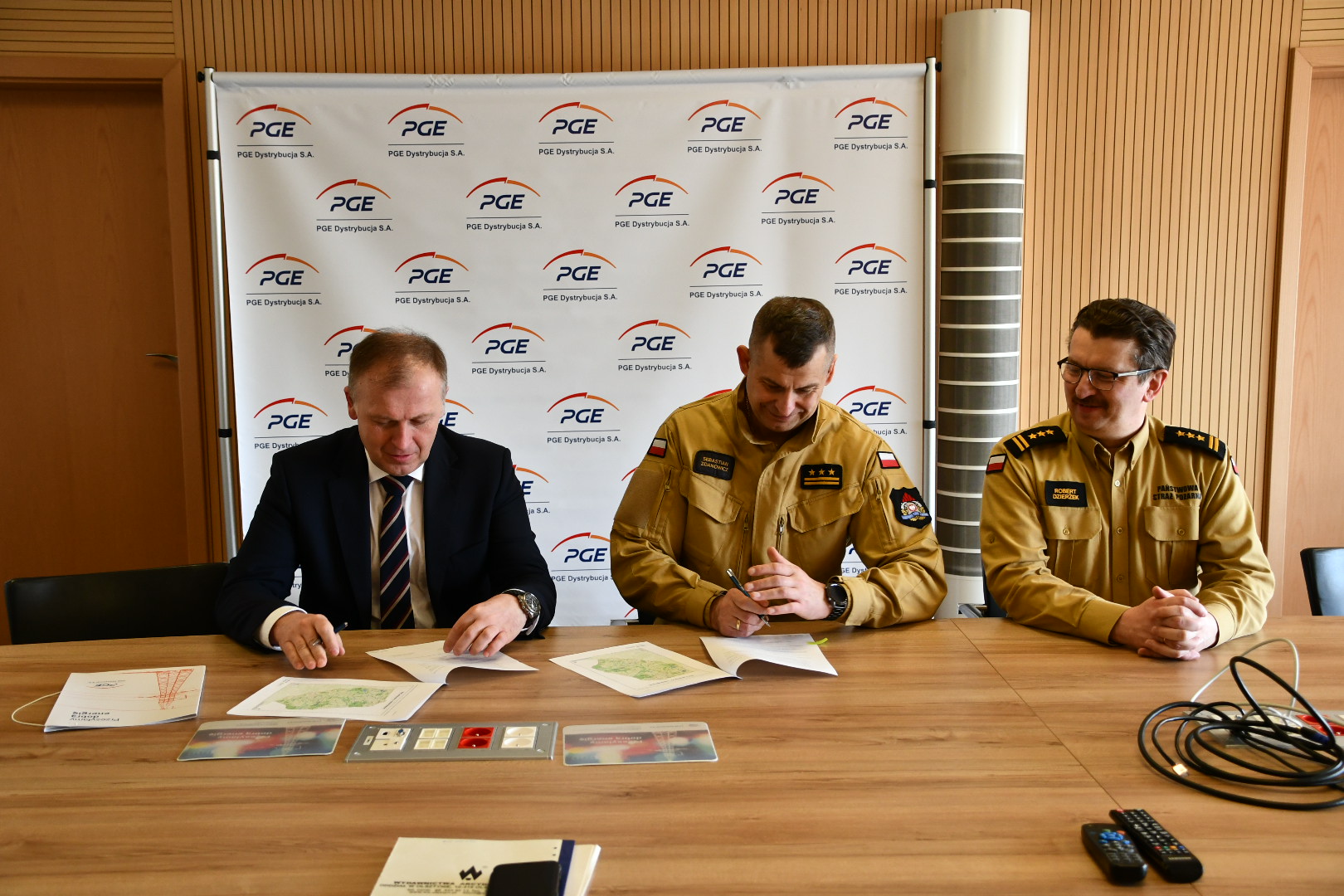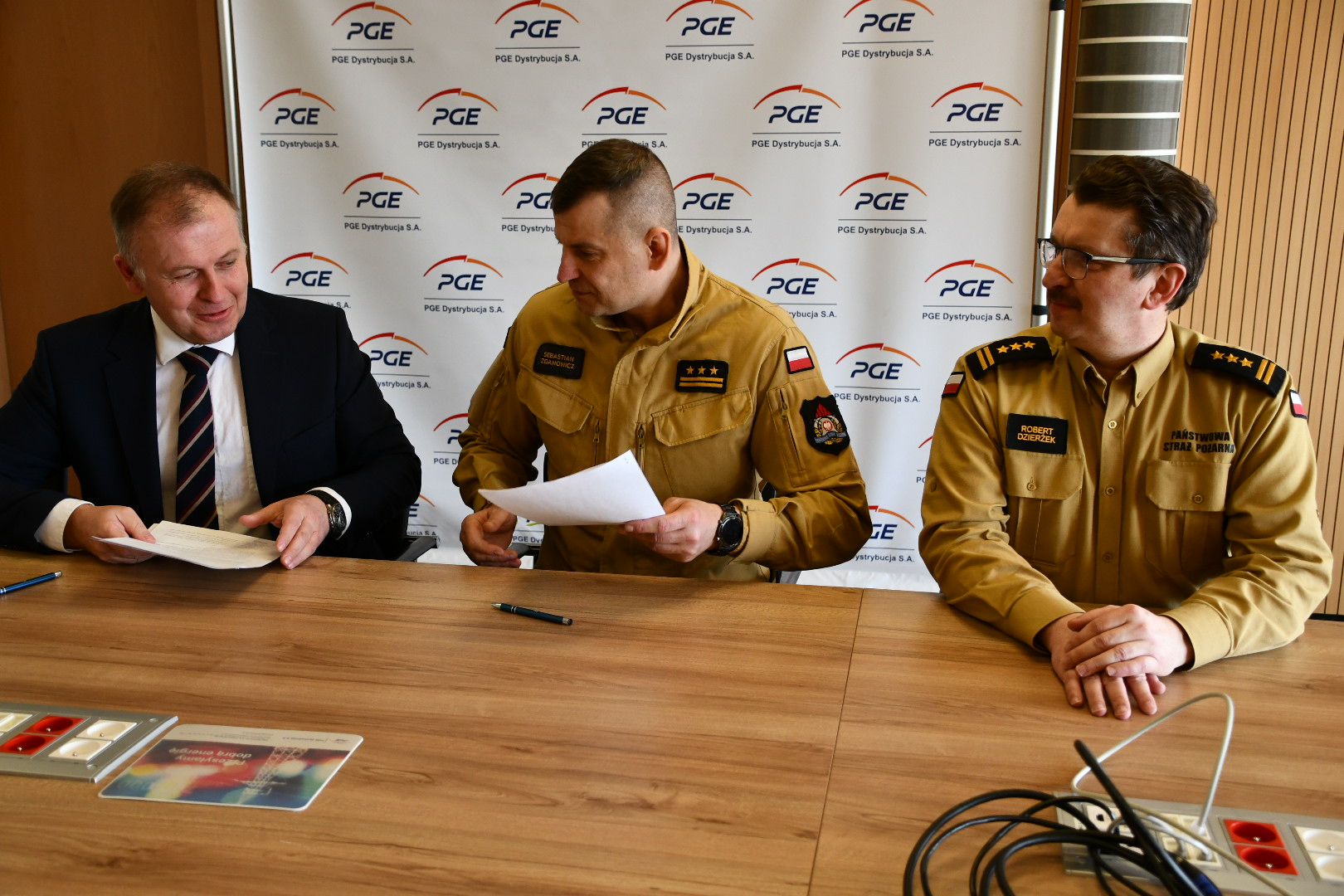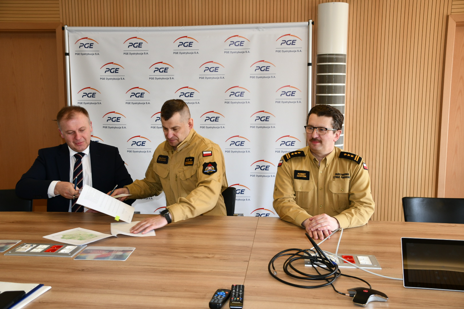 Podpisanie uzgodnienia pomiędzy Podlaskim Komendantem Wojewódzkim PSP a PGE Dystrybucja S.A. Oddział Białystok dotyczącego wzajemnej współpracy.