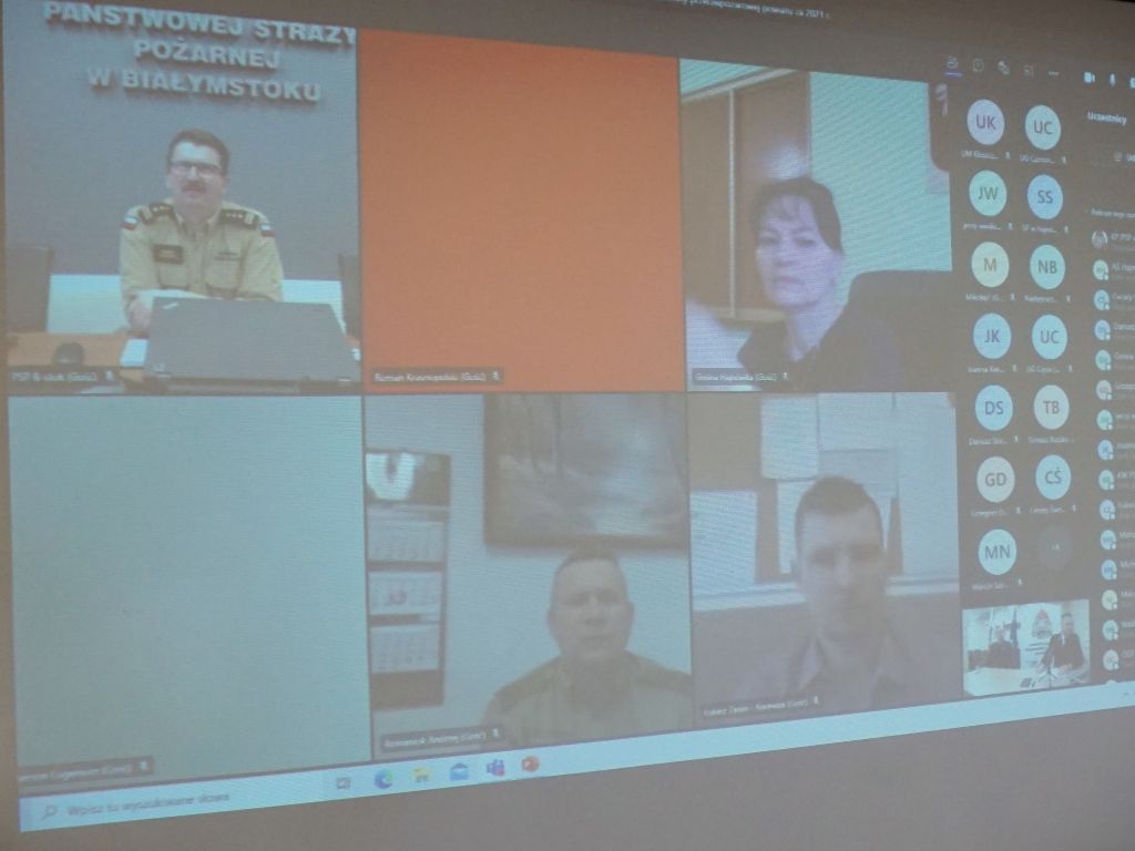 W naradzie wziął udział Zastępca Podlaskiego Komendanta Wojewódzkiego PSP st. bryg. Robert Dzierżek, przedstawiciele jednostek samorządu terytorialnego, Nadleśniczowie, Dyrektor Białowieskiego Parku Narodowego, komendanci służb współdziałających (Policji, Straży Granicznej, aresztu śledczego), a także kadra kierownicza tutejszej Komendy. Ze względu na panującą sytuację epidemiczną narada miała formę wideokonferencji, tym samym osoby spoza jednostki uczestniczyły w sposób zdalny.
