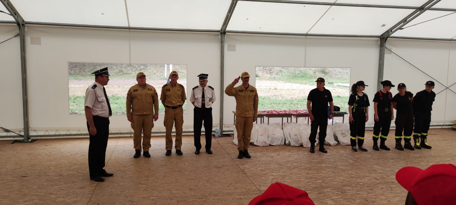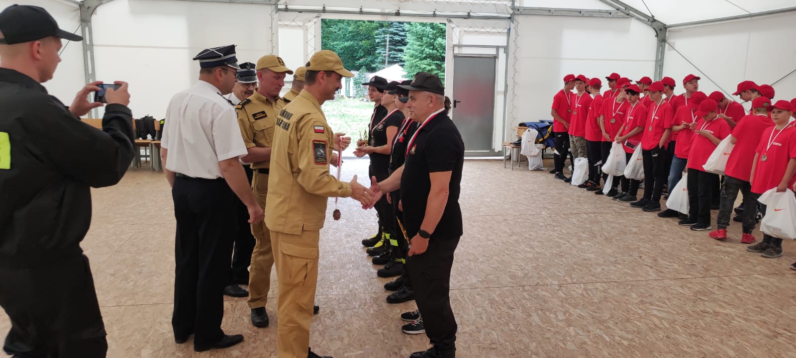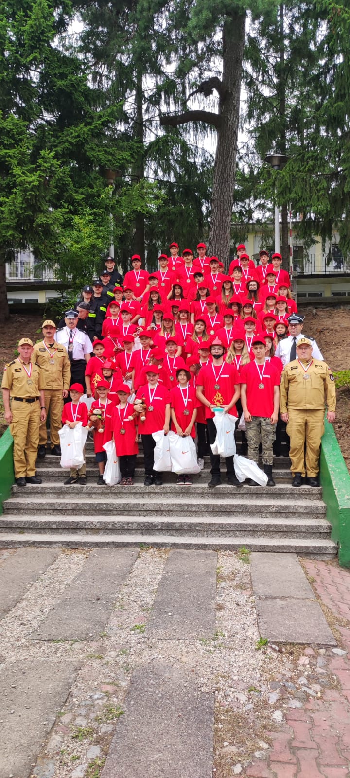 Obecni na uroczystej zbiórce zakończenia obozu Zastępca Podlaskiego Komendanta Wojewódzkiego PSP st. bryg. Paweł Piotr Ostrowski, Komendant Powiatowy PSP w Sejnach st. bryg. Artur Przeborowski, Komendant Powiatowy PSP w Ełku st. bryg. Marek Markowski, Prezes OSP Sejny dh Zdzisław Czakis, Prezes OSP Barszczewo dh Krzysztof Konicki podziękowali uczestnikom za zaangażowanie i pogratulowali zapału w zdobywaniu nowych umiejętności z dziedziny pożarnictwa. Tegoroczna edycja trwała od 17 do 29 lipca 2023 r. i była organizowana przy udziale OSP Barszczewo oraz OSP Sejny dla młodzieży z powiatów: białostockiego i sejneńskiego. W ośrodku wypoczynkowym w Ełku przebywało łącznie ponad 70 osób.