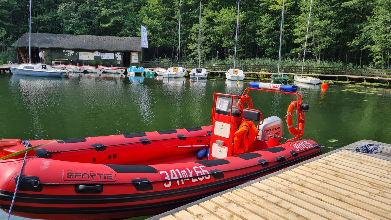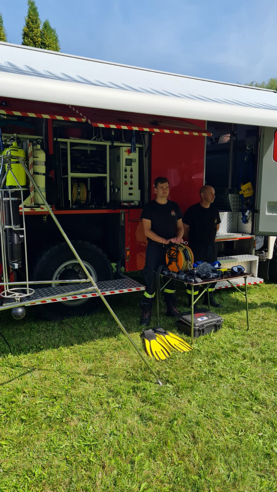 W dniu 14.08.2021 r. w godzinach 10:00 - 13:00 strażacy z Specjalistycznej Grupy Ratownictwa Wodno - Nurkowego w Suwałkach uczestniczyli w pokazach na Jarmarku Wigierskim w malowniczym zakątku suwalszczyzny obok Pokamedulskiego Klasztoru na Wigrach. Pokazy polegały na podjęciu osoby tonącej z łodzi ratowniczej oraz udzieleniu pierwszej pomocy medycznej dla pozoranta. Zaprezentowano również sprzęt będący na wyposażeniu grupy wodno - nurkowej, w tym sonary i skafandry. W festynie brał udział również zastęp z Jednostki Ratowniczo Gaśniczej w Sejnach. Po pokazie w ramach akcji "Kręci mnie bezpieczeństwo nad wodą" przeprowadzono pogadankę przy samochodzie ratowniczym, zaprezentowano sposoby udzielania pierwszej pomocy, metody ratowania ludzi topiących się oraz specyfikę pracy strażaka.