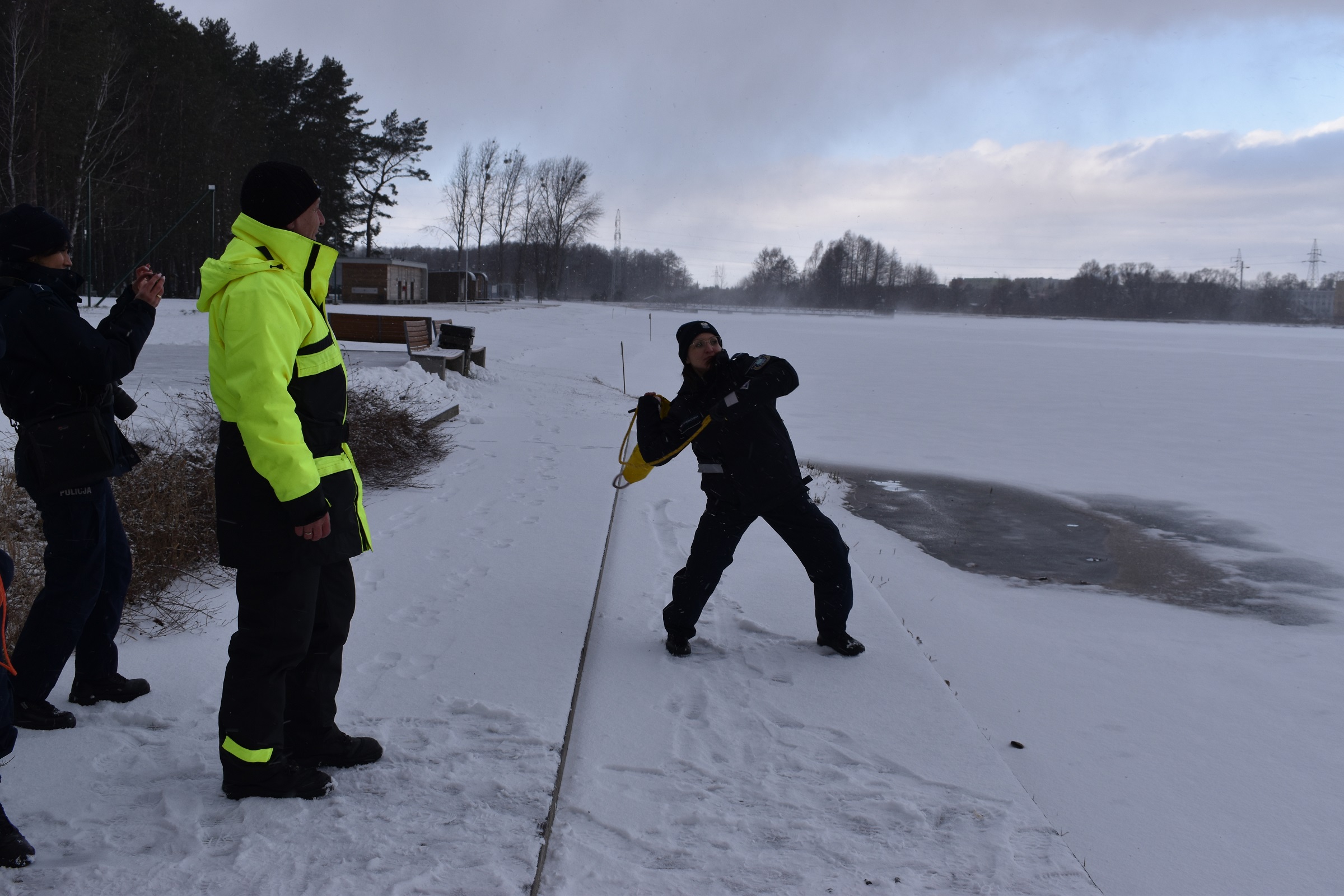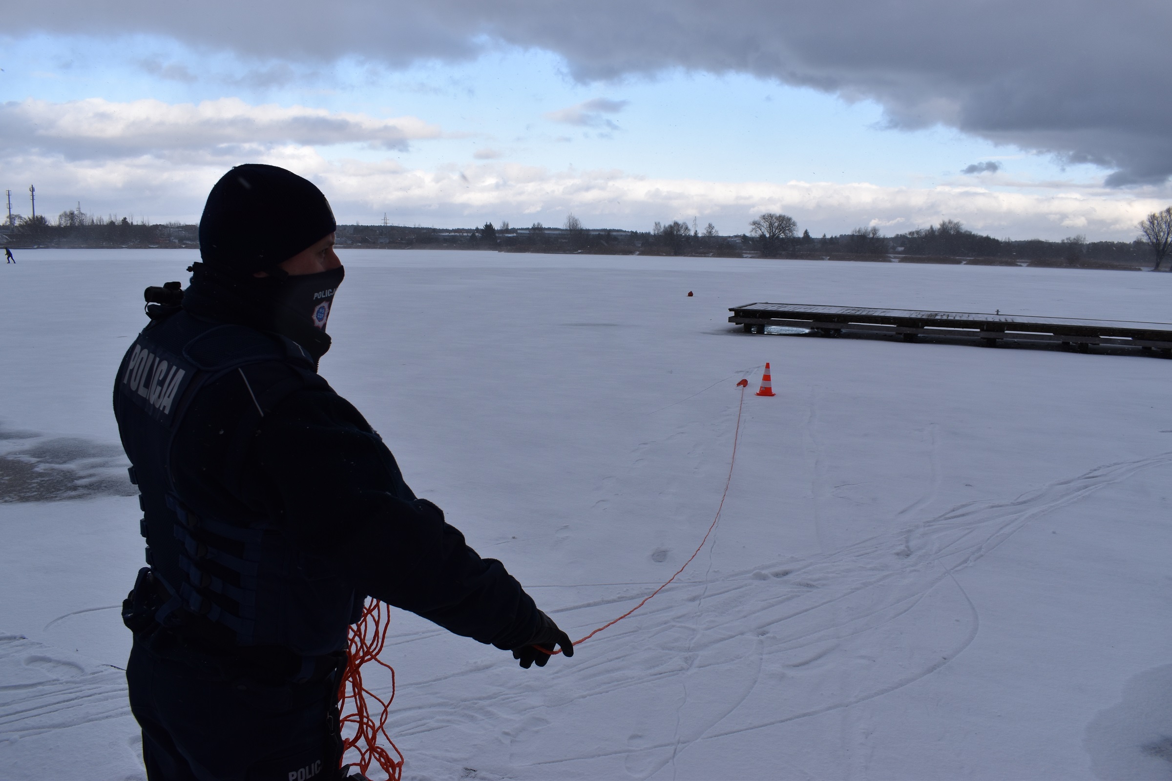 Policjanci ćwiczyli ratownictwo lodowe pod okiem strażaków