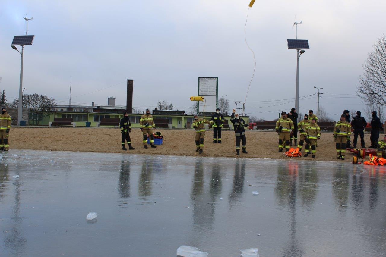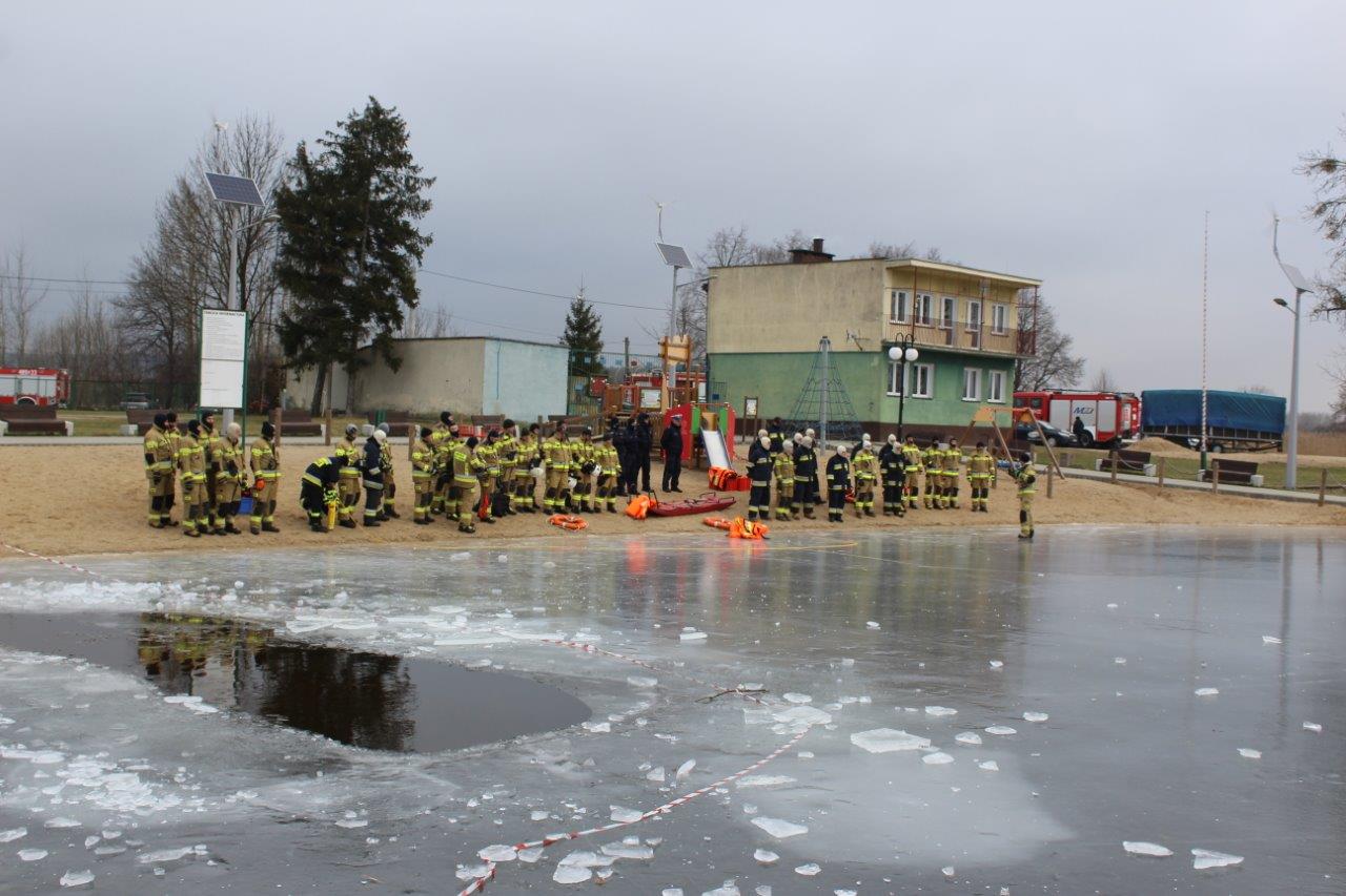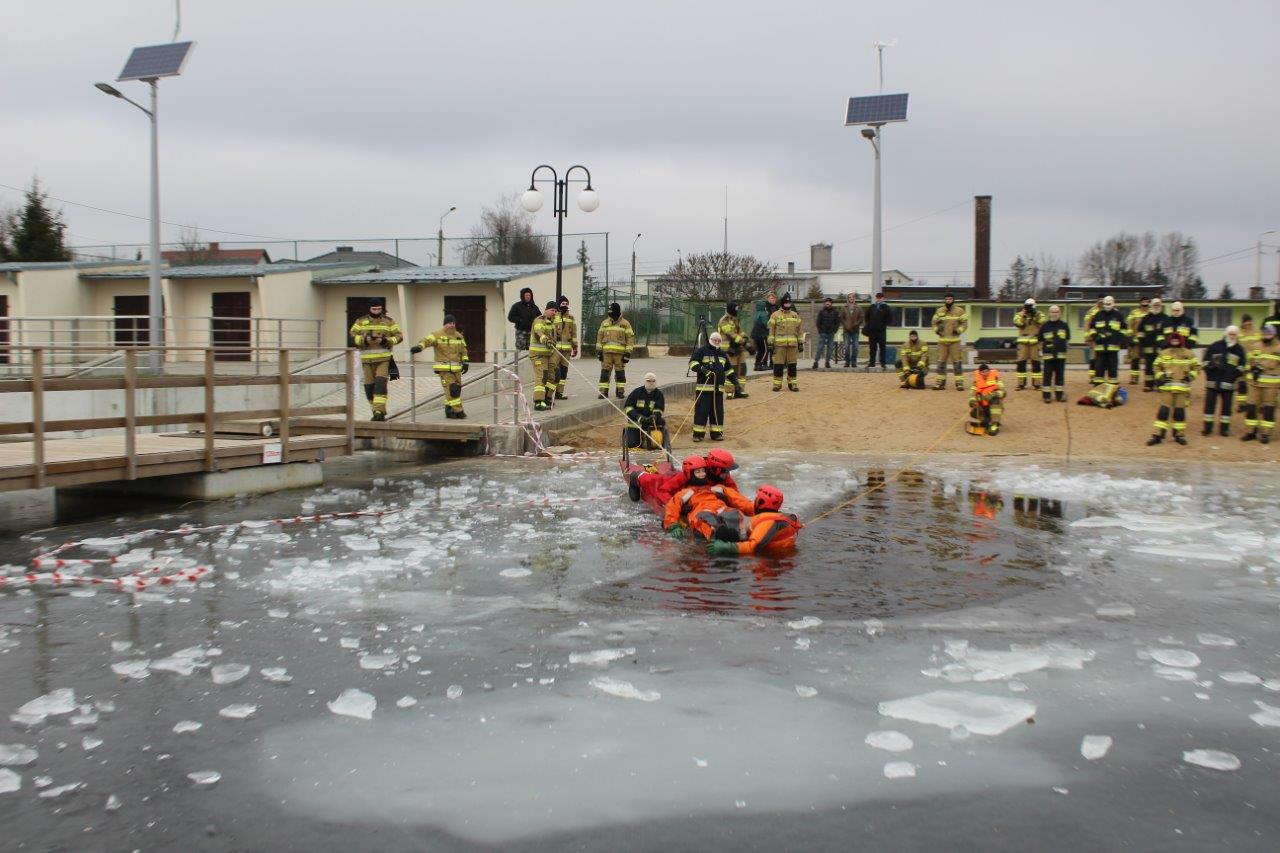 Głównym zadaniem ćwiczących była pomoc osobie, która znalazła się w wodzie w wyniku załamania się tafli lodu na zbiorniku wodnym poprzez dotarcie do tonącego, podjęcie poszkodowanego z przerębla i ewakuacja na brzeg zalewu przy użyciu sań lodowych. W dalszej kolejności zostało przećwiczone samoratowanie oraz użycie do ratowania tonących sprzętu ratownictwa wodnego, sprzętu ratowniczo – gaśniczego znajdującego się na wyposażeniu pojazdów pożarniczych oraz innych dostępnych środków na miejscu zdarzenia.