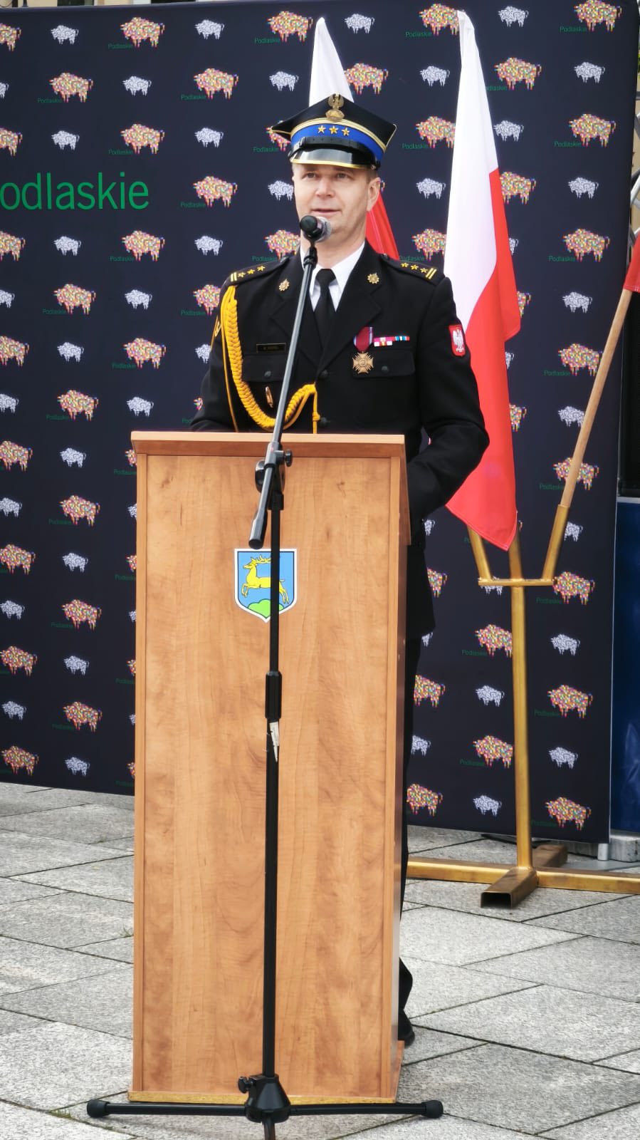 Uroczysty apel rozpoczął się złożeniem meldunku st. bryg. Marcinowi Wierelowi - zastępcy podlaskiego komendanta wojewódzkiego PSP przez dowódcę uroczystości bryg. Daniela Lewczuka. Następnie komendant powiatowy PSP w Grajewie - bryg. Arkadiusz Lichota przywitał zaproszonych gości oraz podziękował za ofiarną służbę, zaangażowanie i wsparcie jakie strażacy otrzymują od instytucji współdziałających.