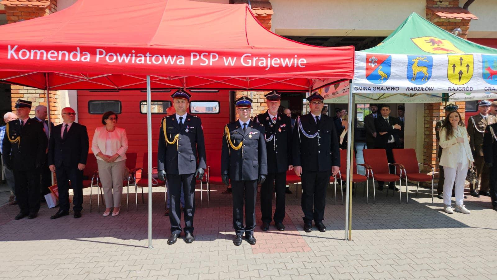 26 maja 2024 r. w Grajewie świętowano Powiatowe Obchody Dnia Strażaka. Uroczystości rozpoczęły się Mszą Św. w intencji strażaków i pracowników PSP, druhów OSP i ich rodzin, a także emerytów pożarnictwa w kościele pw. Matki Bożej Nieustającej Pomocy w Grajewie. Następnie pododdziały, poczty sztandarowe i zaproszeni goście przemaszerowali na plac Komendy Powiatowej PSP w Grajewie.