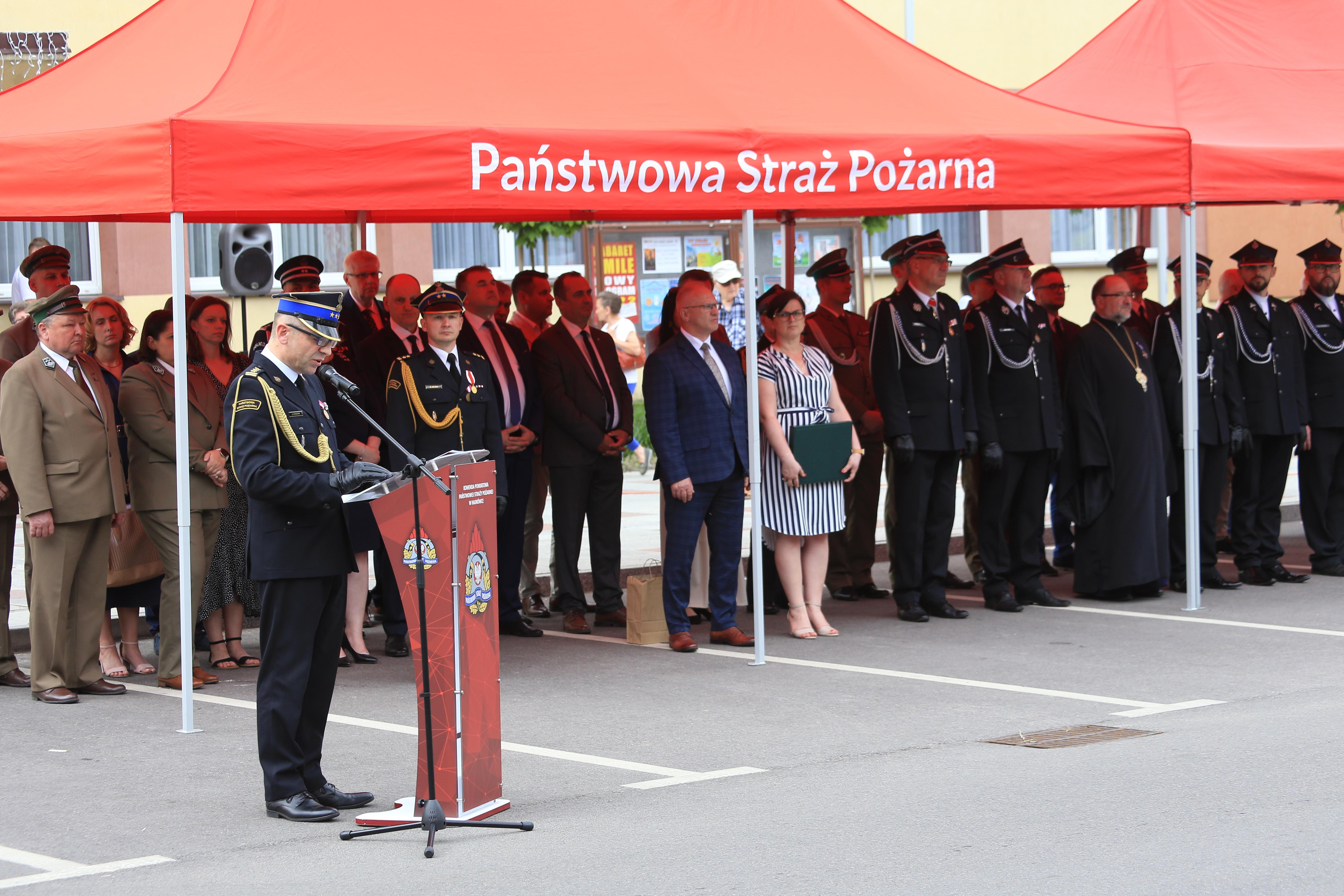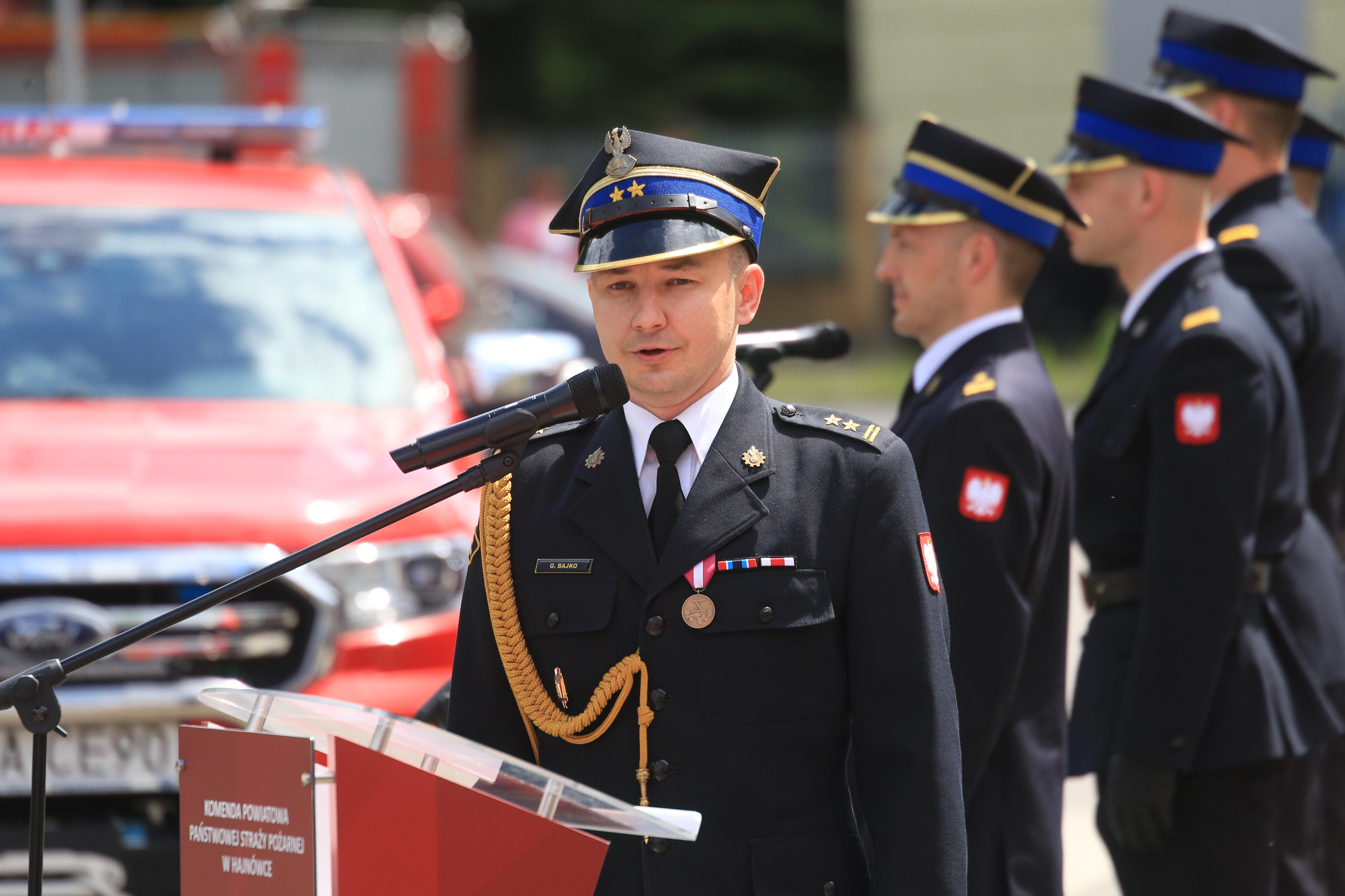 Zaproszonych gości, sympatyków pożarnictwa oraz strażaków powitał Komendant Powiatowy Państwowej Straży Pożarnej w Hajnówce bryg. Grzegorz Bajko. Komendant w swoim wystąpieniu podziękował strażakom Państwowej Straży Pożarnej, druhom Ochotniczych Straży Pożarnych, służbom działającym na rzecz bezpieczeństwa mieszkańców naszego powiatu, władzom samorządowym, przedstawicielom Lasów Państwowych i wszystkim tym, którym pomoc bliźnim i potrzebującym leży głęboko na sercu.