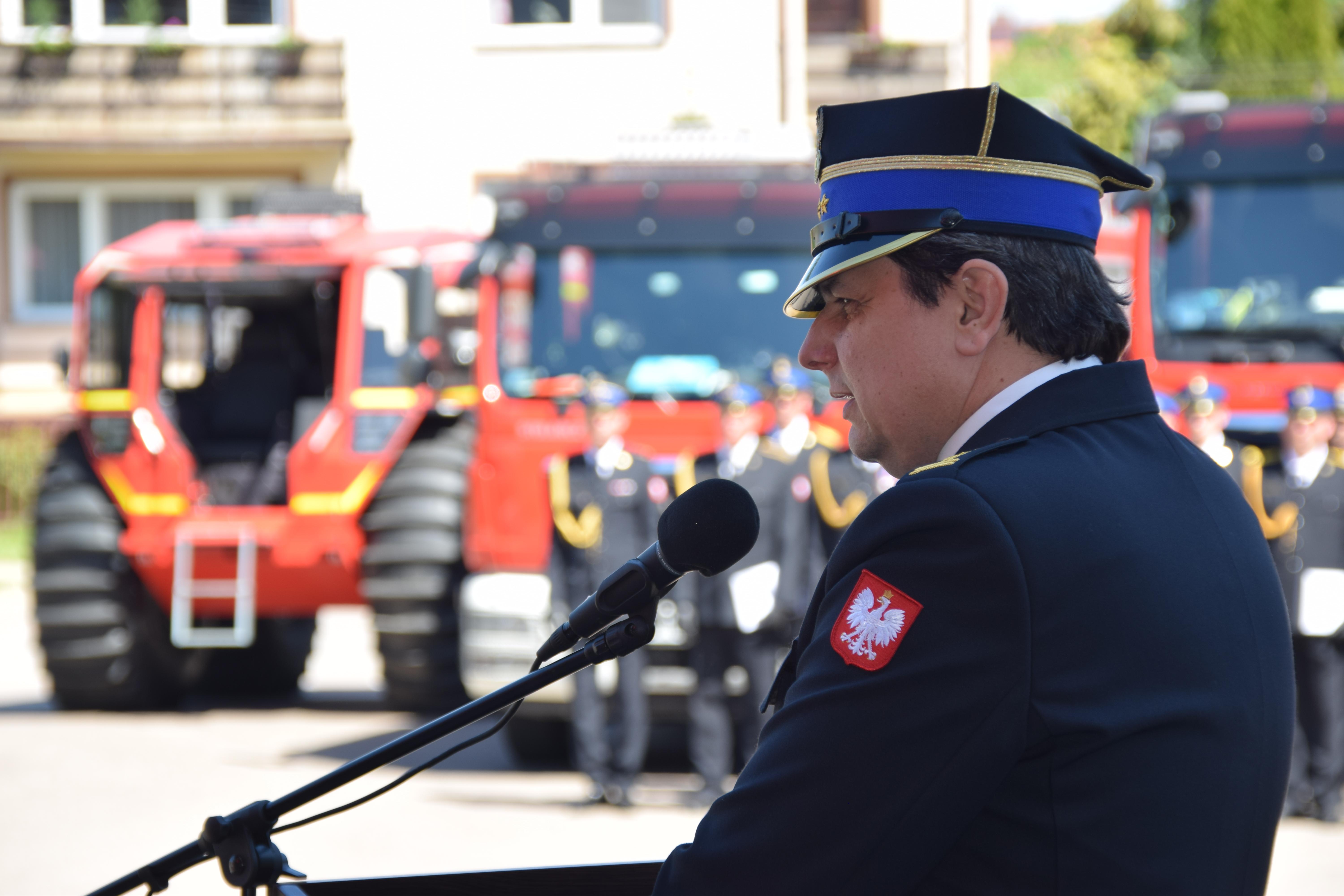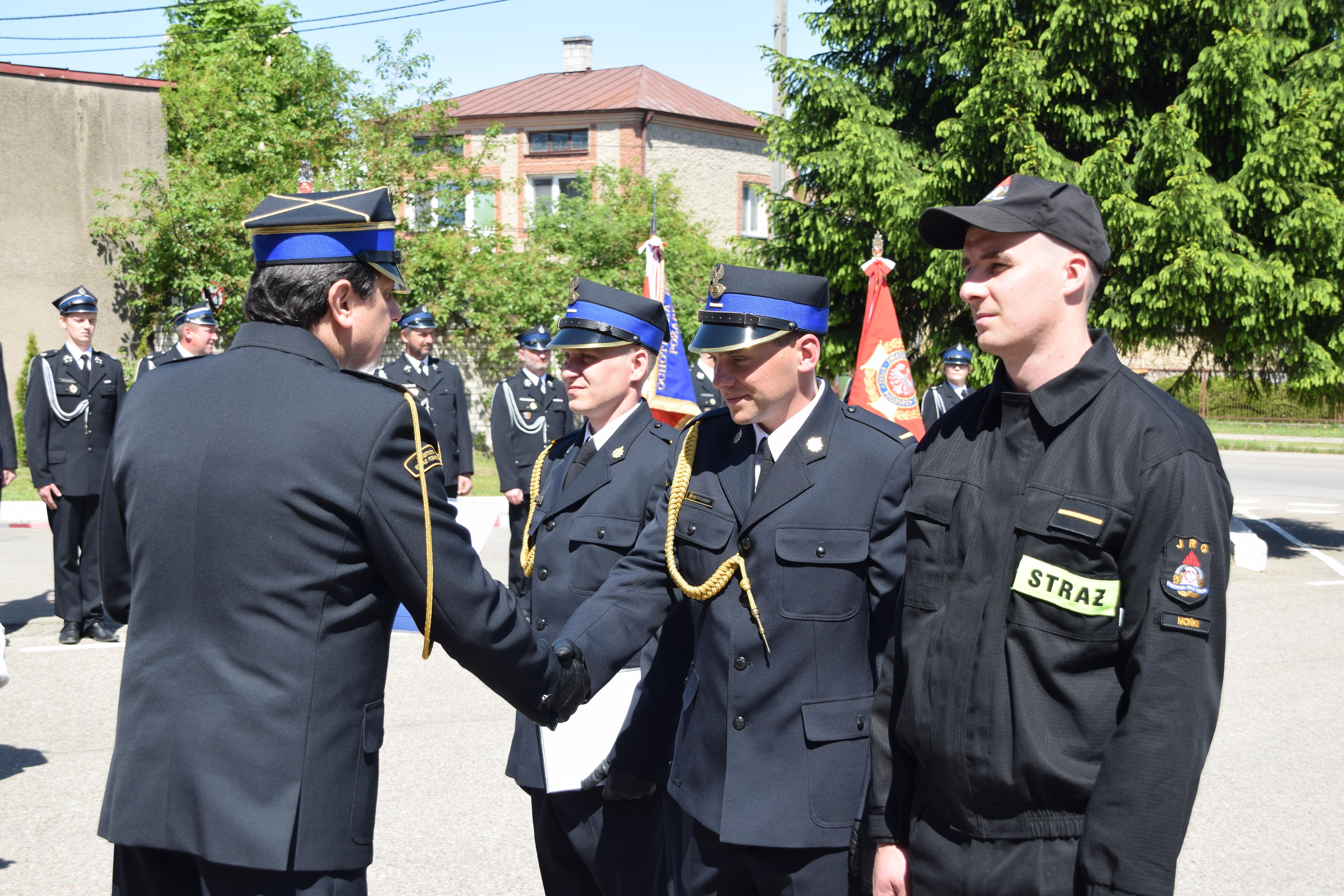 Następnie głos zabrali zaproszeni goście. Zastępca Dowódcy JRG PSP w Mońkach – kpt. Jarosław Lewocz zakończył uroczysty apel złożeniem meldunku st. bryg. Grzegorzowi Lisowskiemu – Zastępcy Podlaskiego Komendanta Wojewódzkiego PSP.
