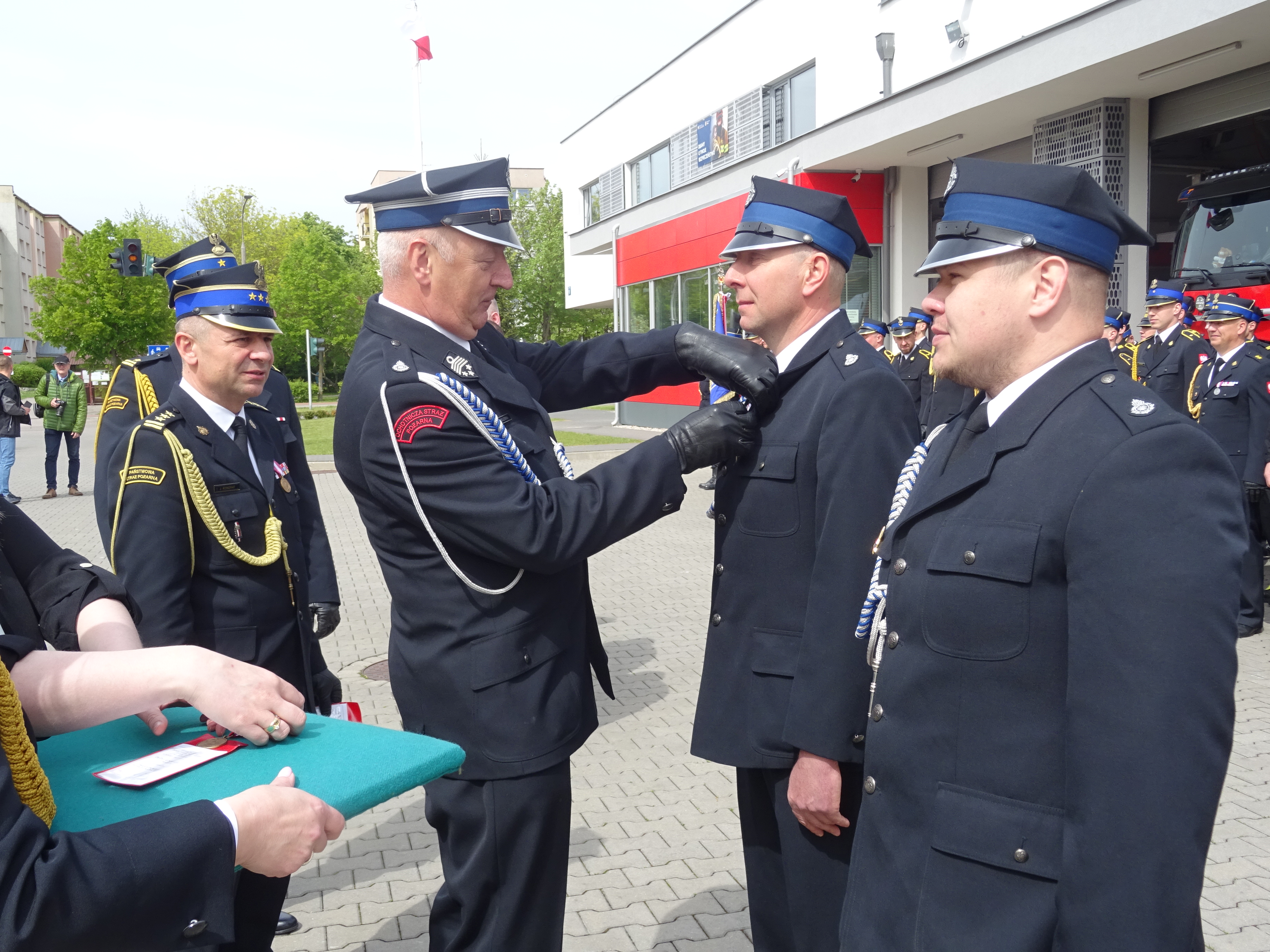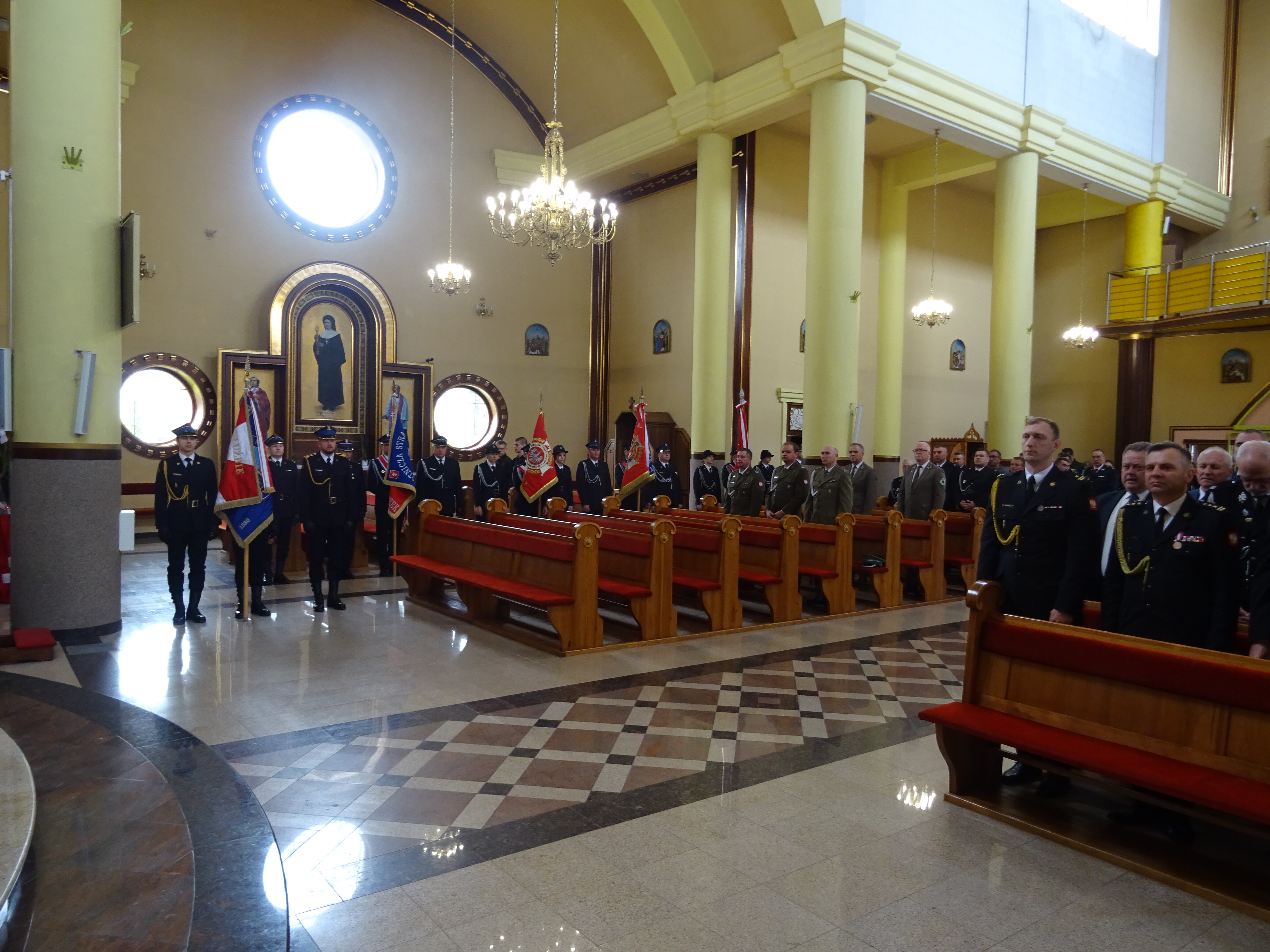 Po mszy nastąpił przemarsz pododdziałów pożarniczych wraz z pocztami sztandarowymi na plac Komendy Miejskiej PSP w Suwałkach.