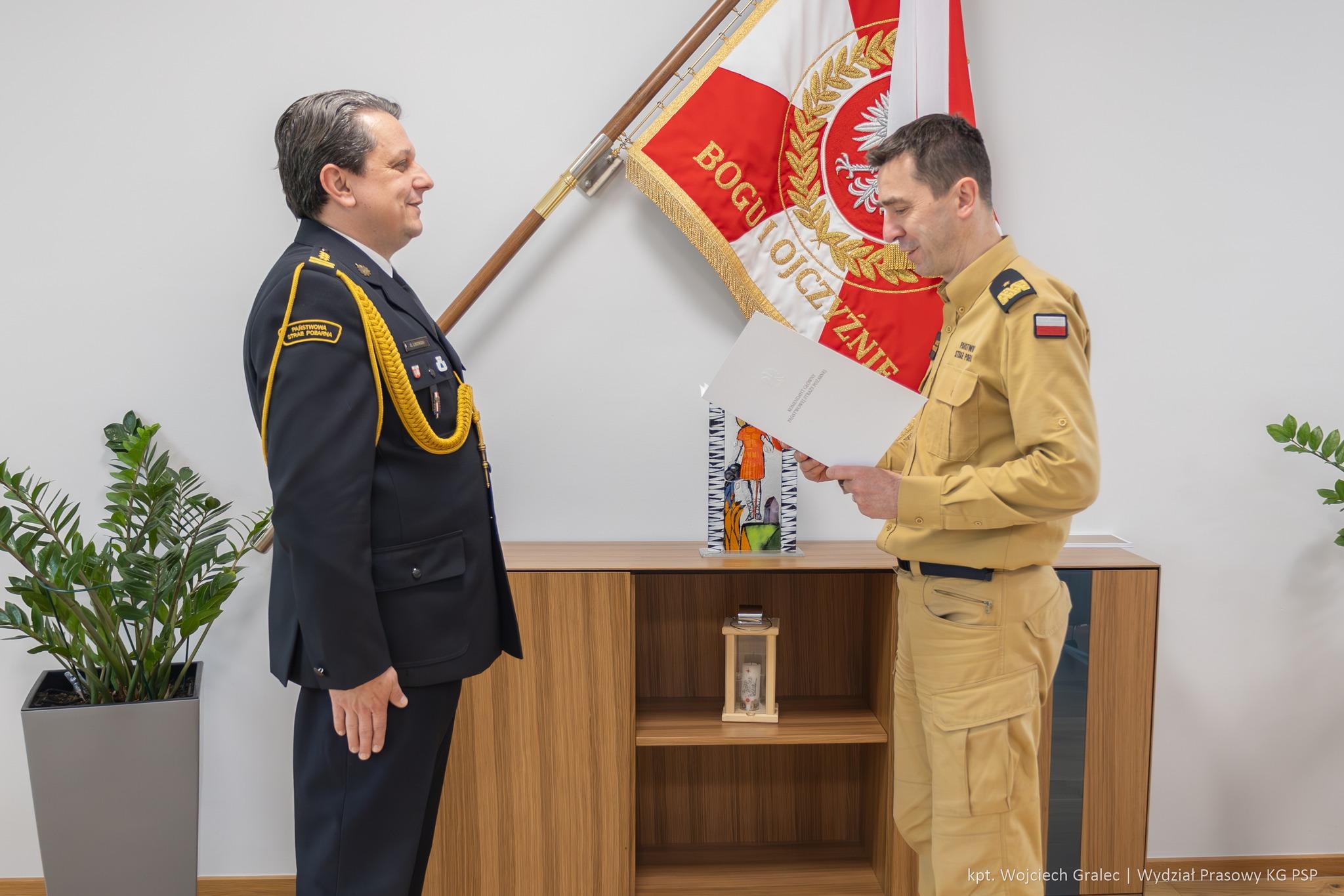 We środę 24 kwietnia 2024 r. Komendant Główny Państwowej Straży Pożarnej nadbryg. dr inż. Mariusz Feltynowski wręczył decyzje personalne o powołaniu: