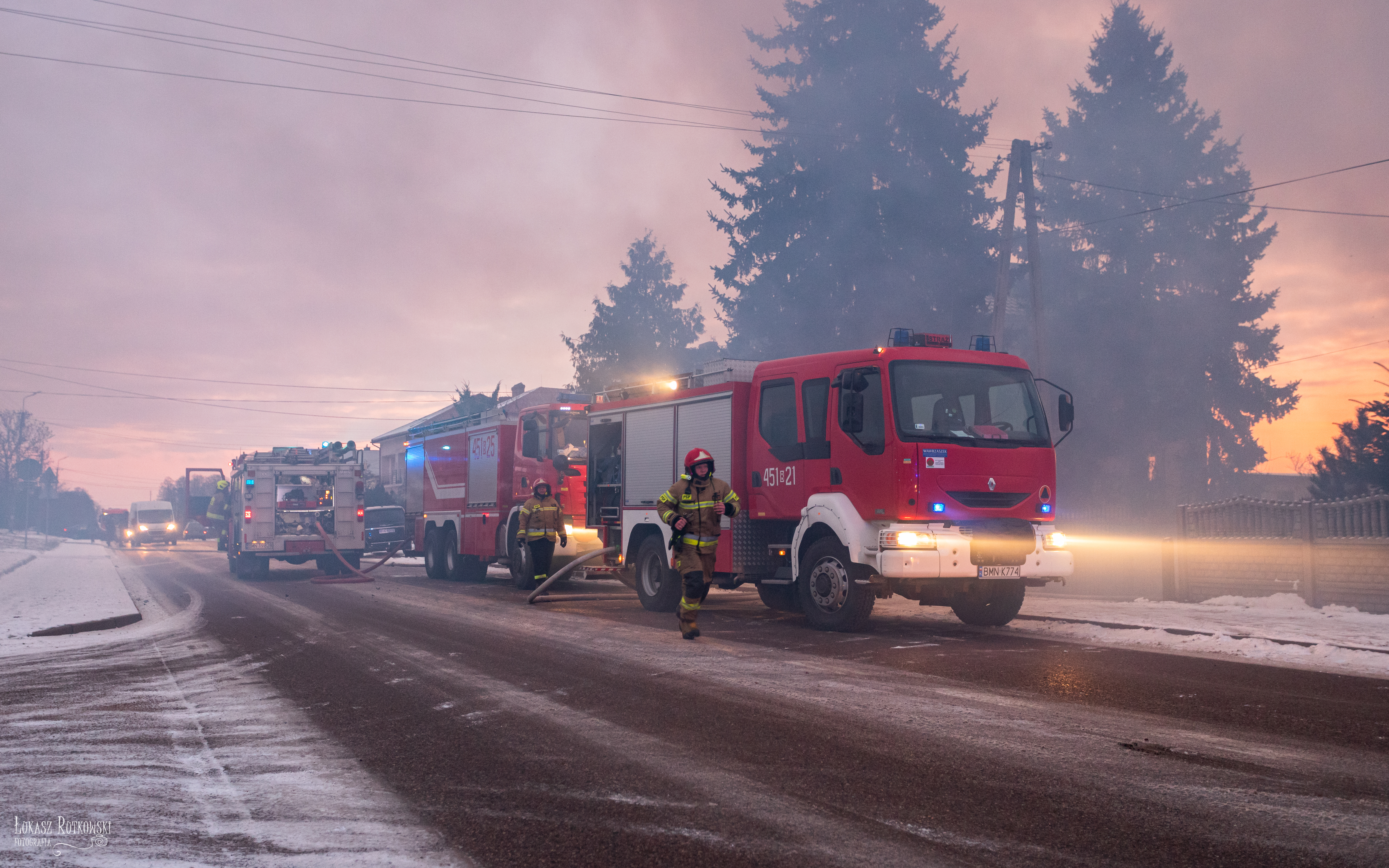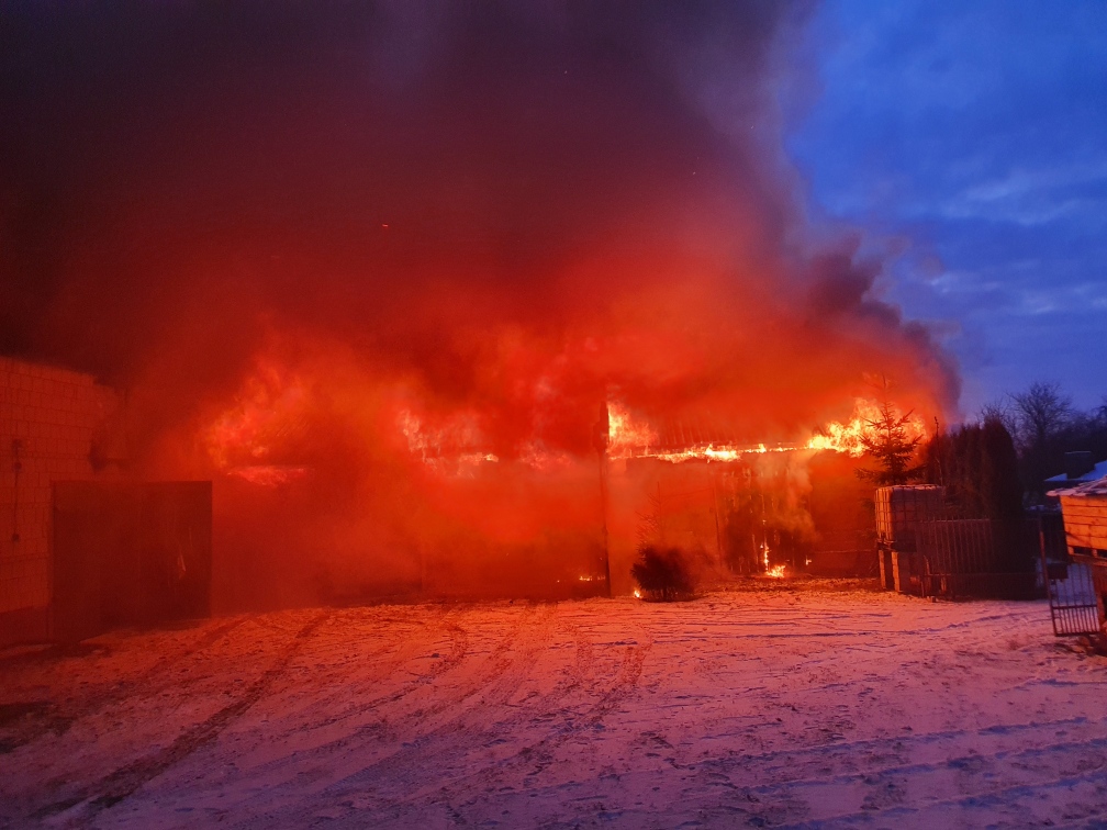 W dniu 29 grudnia 2021 r. o godz. 7.04 do Stanowiska Kierowania Komendanta Powiatowego PSP w Mońkach wpłynęło zgłoszenie o pożarze budynku gospodarczo-magazynowego w miejscowości Krypno Kościelne. W chwili przyjazdu pierwszych zastępów straży pożarnej pożarem objęty był murowany budynek gospodarczy. Płomienie i dym wydobywały się spod drewnianej konstrukcji dachu krytego blachą. Podano dwa prądy wody na palący się budynek, a w trakcie przyjazdu kolejnych zastępów kolejne 5 prądów. W budynku znajdował się samochód typu bus, znaczna ilość drewna opałowego oraz zbiorniki z paliwem (ok. 200 l). Zorganizowano zaopatrzenie wodne z hydrantów naziemnych. Działania utrudniało silne zadymienie, ograniczające znacznie widoczność na miejscu akcji oraz niska temperatura. Po ugaszeniu pożaru przystąpiono do prac rozbiórkowych konstrukcji dachu. W trakcie działań współpracowano z Policją i Pogotowiem Energetycznym.