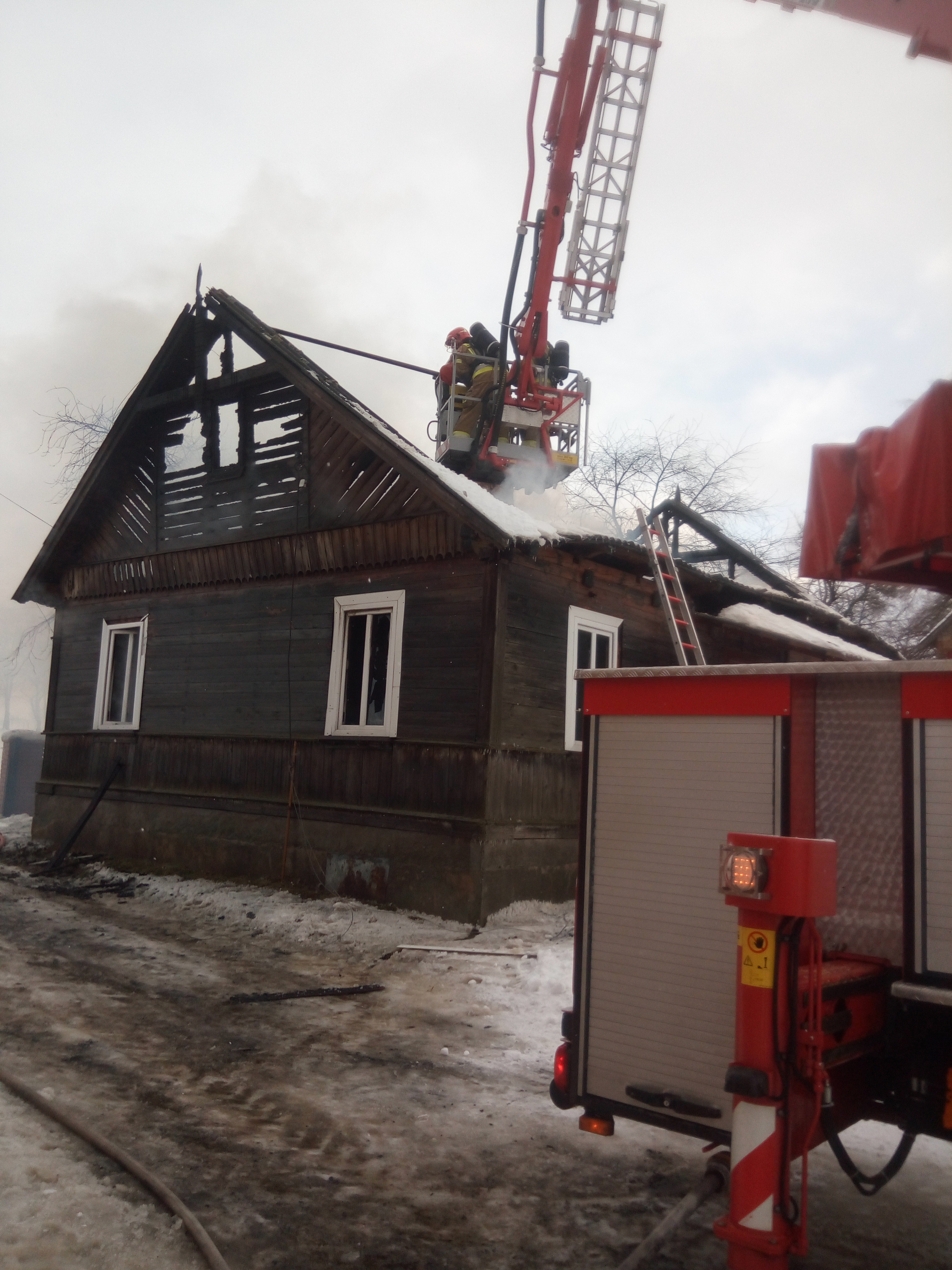 Kiedy strażacy dotarli na miejsce zdarzenia stwierdzono, że drewniany budynek mieszkalny jest całkowicie objęty pożarem. Palący się budynek stwarzał również zagrożenie rozprzestrzenienia się ognia na sąsiadujące zabudowania. Mieszkaniec opuścił budynek przed przybyciem zastępów straży pożarnej. Nie doznał on żadnych obrażeń.