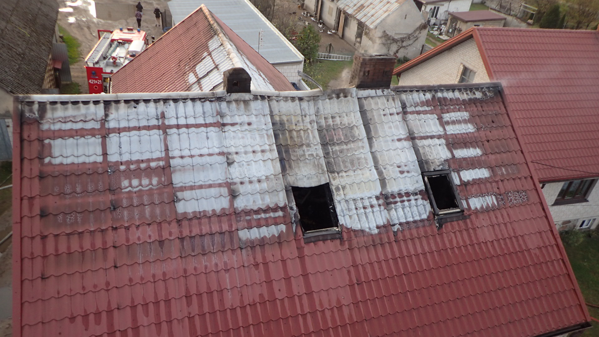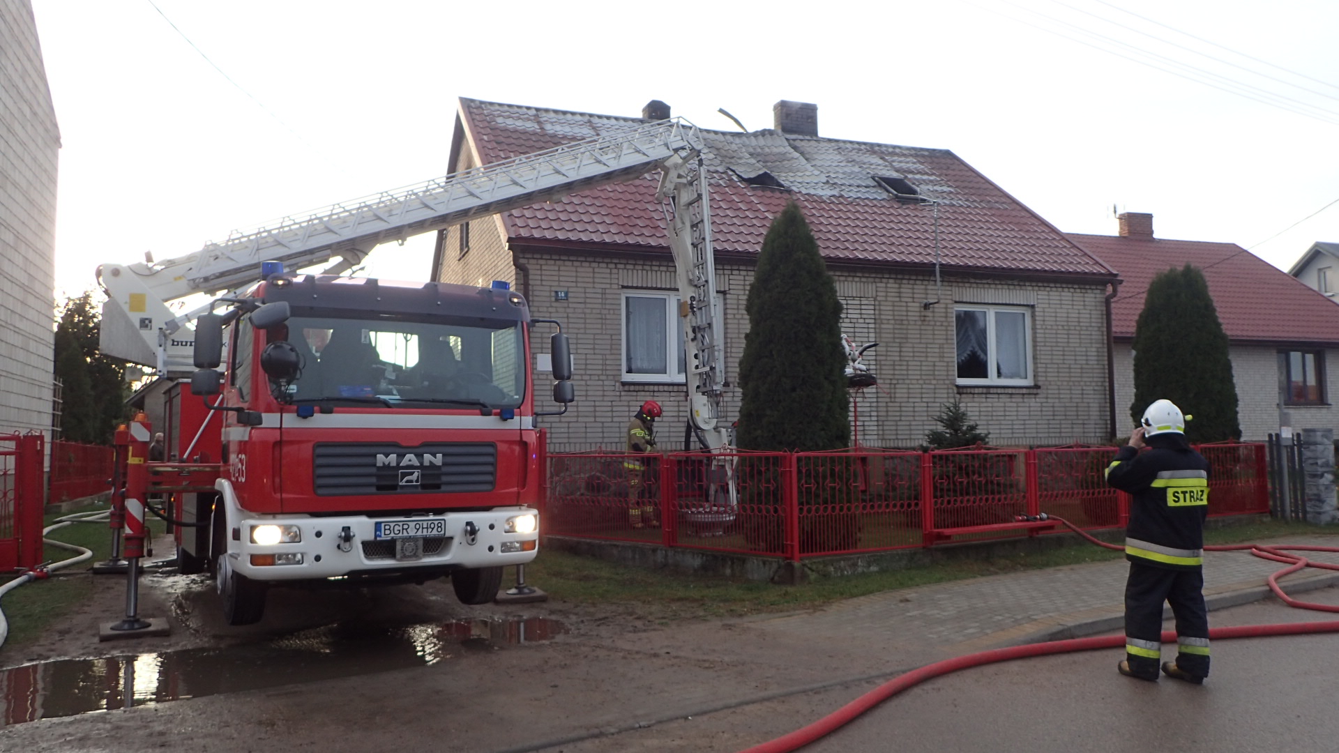 Strażacy z jednostki Ochotniczej Straży Pożarnej w Szczuczynie, którzy jako pierwsi przybyli na miejsce zdarzenia zastali w pełni rozwinięty pożar jednego z pomieszczeń na poddaszu budynku mieszkalnego jednorodzinnego oraz częściowo objęte ogniem dwa sąsiednie pokoje i dach. Na szczęście domownicy szybko zauważyli pożar i bezpiecznie ewakuowali się na zewnątrz przed przybyciem jednostek ochrony przeciwpożarowej. Żadna z 6 osób w wieku od kilku do kilkudziesięciu lat przebywających w budynku nie odniosła obrażeń.