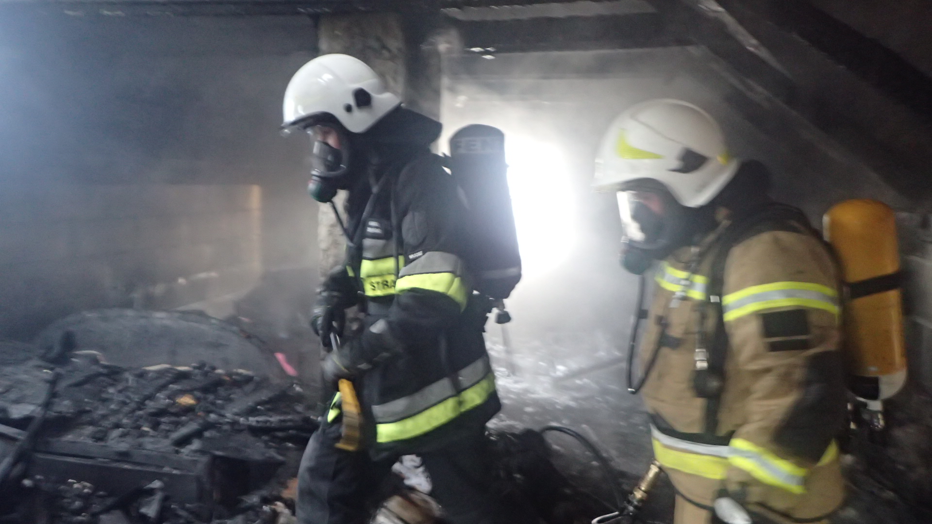 W początkowej fazie działań wprowadzono do budynku 2 roty gaśnicze w aparatach ochrony dróg oddechowych i pełnym zabezpieczeniu w celu szybkiego i skutecznego podjęcia działań ratowniczych. Równocześnie z podawaniem prądów gaśniczych wody strażacy przeszukali wszystkie pomieszczenia, w których nie odnaleźli innych osób. Po dojeździe na miejsce kolejnych jednostek PSP i OSP podano dodatkowo dwa prądy wody w natarciu na palące się poddasze i dach budynku oraz ewakuowano z budynku zagrożone mienie. Do pracy na wysokości wykorzystano drabiny strażackie i podnośnik hydrauliczny, z którego m.in. prowadzono prace rozbiórkowe i działania gaśnicze. Przy użyciu kamery termowizyjnej sprawdzono wszystkie miejsca, w których mogły wystąpić ukryte źródła ognia, a detektorem wielogazowym dokonano pomiaru stężeń substancji niebezpiecznych dla życia i zdrowia ludzi.