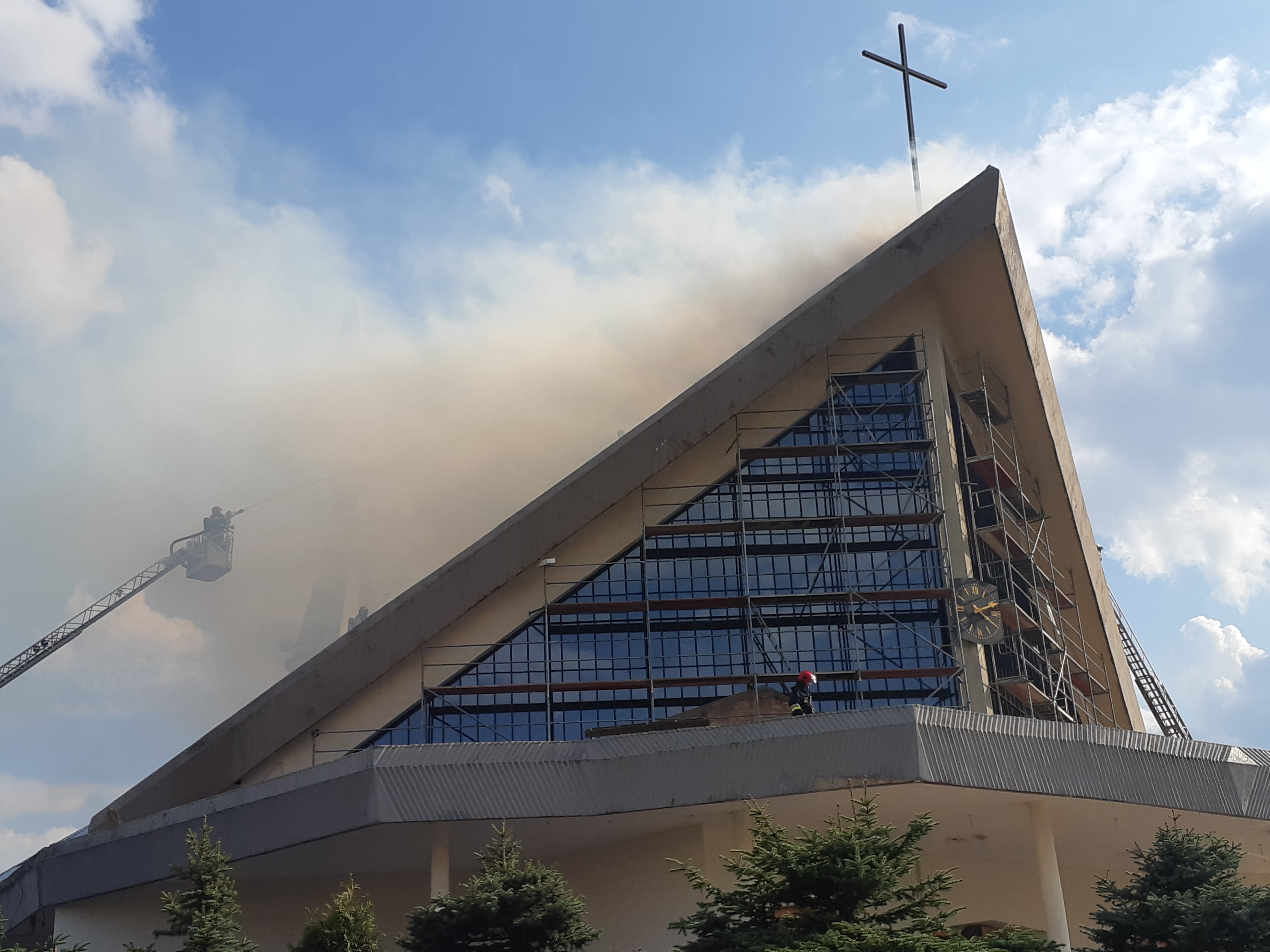 Pożar dachu kościoła Św. Maksymiliana Marii Kolbego w Białymstoku