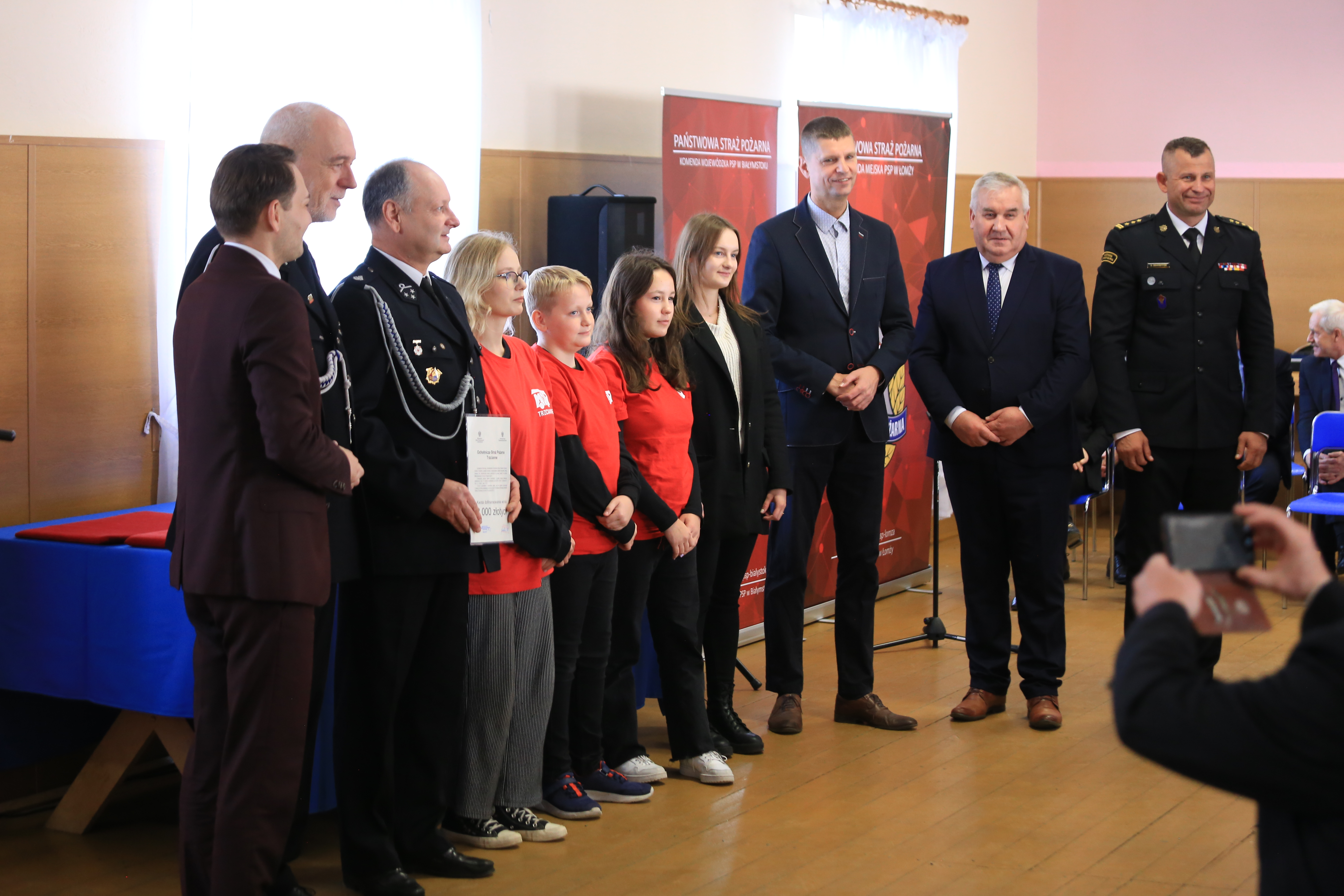 Pierwsza z czterech zaplanowanych uroczystości w związku z przekazaniem promes dla Młodzieżowych Drużyn Pożarniczych w woj. Podlaskim.