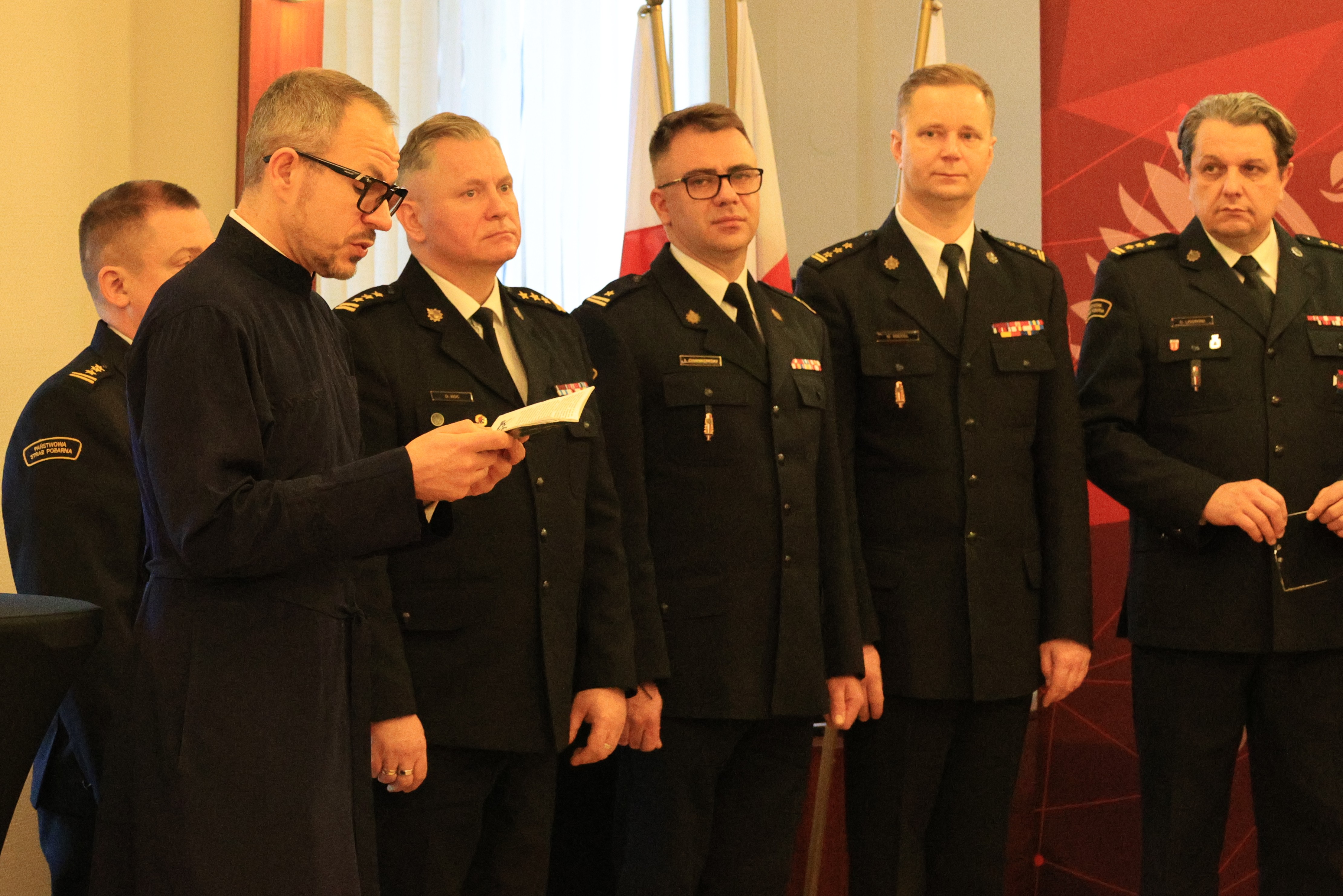 Gospodarz spotkania - podlaski komendant wojewódzki PSP - st. bryg. Janusz Kondrat, w imieniu kierownictwa powitał zgromadzonych gości, a następnie podziękował zebranym za wspólne działania na rzecz bezpieczeństwa mieszkańców województwa podlaskiego, jak również ochrony przeciwpożarowej, życząc wszystkim spokojnych, zdrowych i ciepłych Świąt Bożego Narodzenia.