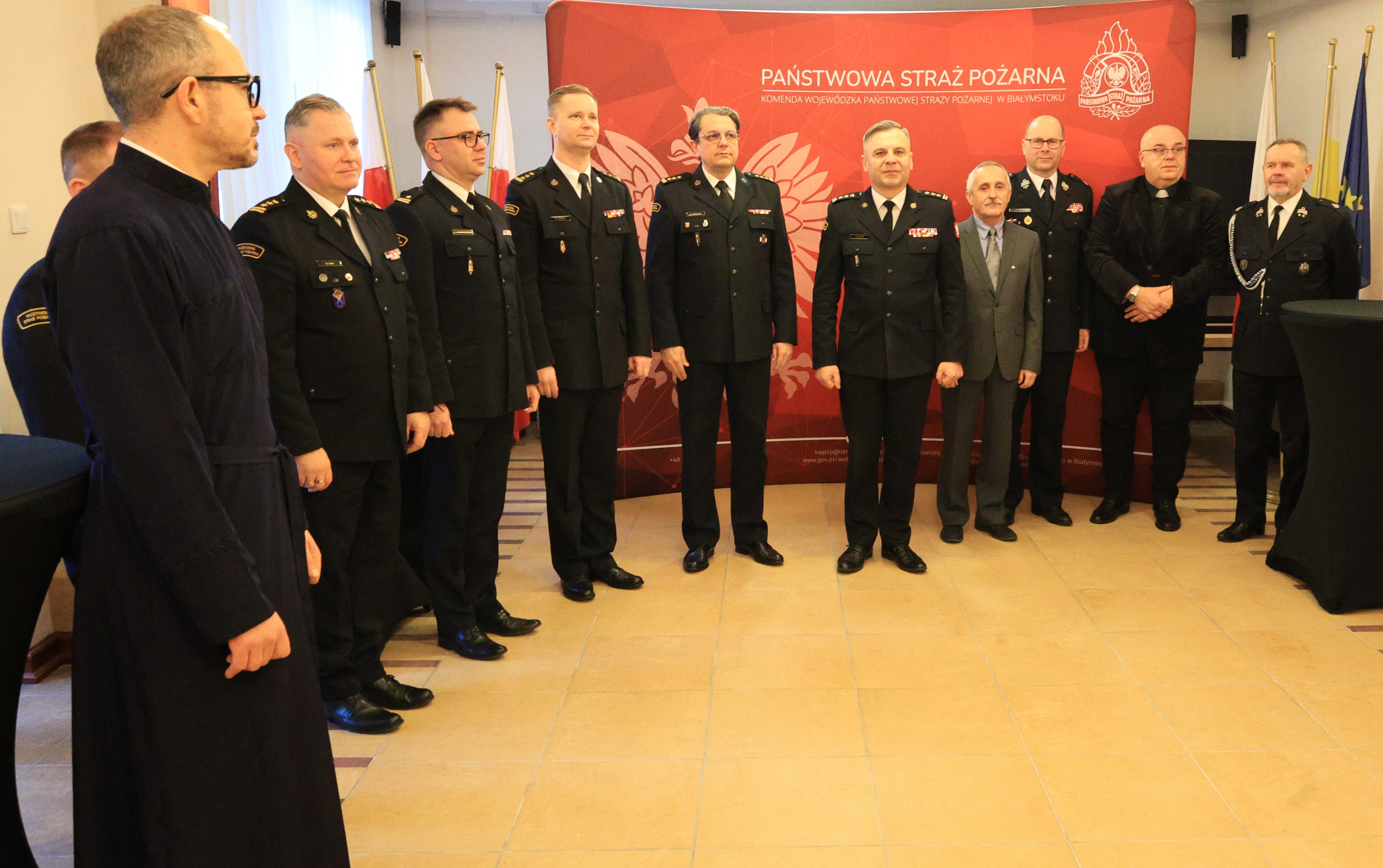 Dziś w świetlicy Komendy Miejskiej PSP w Białymstoku odbyło się tradycyjne spotkanie opłatkowe, w którym wzięli udział funkcjonariusze i pracownicy Komendy Wojewódzkiej Państwowej Straży Pożarnej w Białymstoku, a także Komendy Miejskiej Państwowej Straży Pożarnej w Białymstoku, na czele z podlaskim komendantem wojewódzkim Państwowej Straży Pożarnej – st. bryg. Januszem Kondratem.