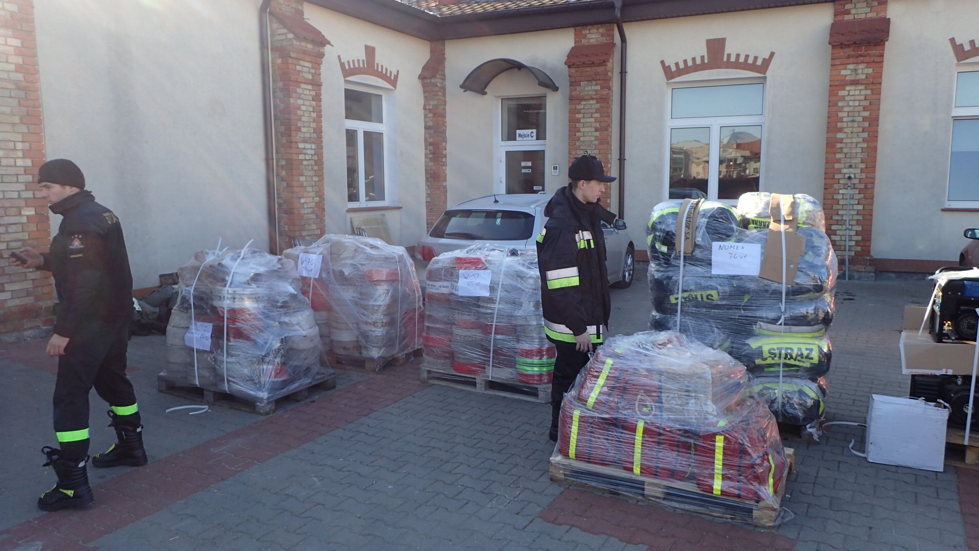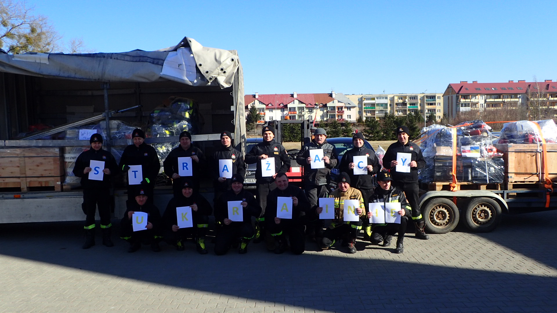 W dniu 27.02.2022 r. strażacy OSP oraz PSP z terenu powiatu grajewskiego odpowiedzieli na apel dzieląc się tym co posiadają w swoich jednostkach. Zbiórka najpotrzebniejszych rzeczy odbyła się w Komendzie Powiatowej PSP w Grajewie, a dzień później rzeczy te zostały spakowane i przewiezione do Komendy Wojewódzkiej PSP w Białymstoku skąd ruszą w dalszą drogę do Naszych sąsiadów. Zebrano 12 palet sprzętu pożarniczego i wyposażenia.