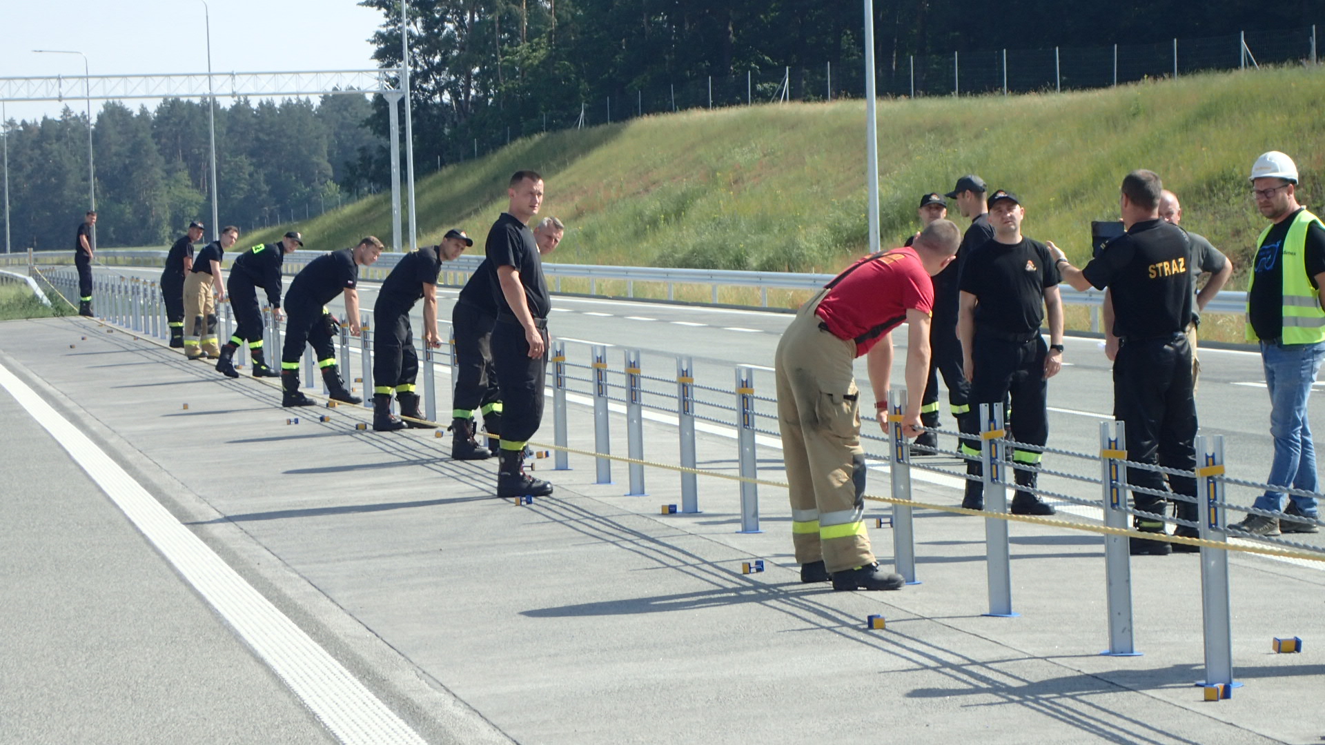 Po części teoretycznej przystąpiono do praktycznego demontażu stalowych lin wzdłuż przejazdów awaryjnych na potrzeby akcji ratowniczej. Jak przyznali uczestnicy szkolenia zdobyta wiedza w znaczący sposób wpłynie na szybkość i skuteczność prowadzonych działań w przypadku zdarzeń z udziałem środków transportu.