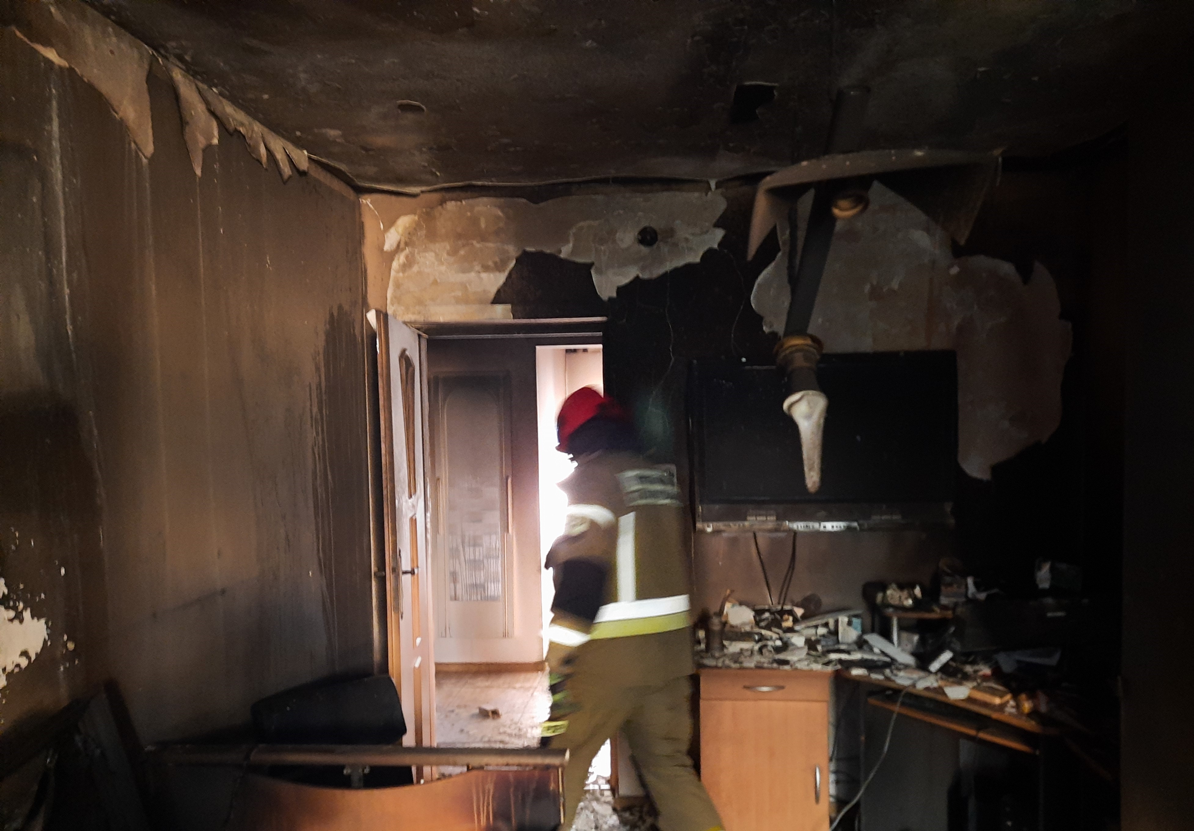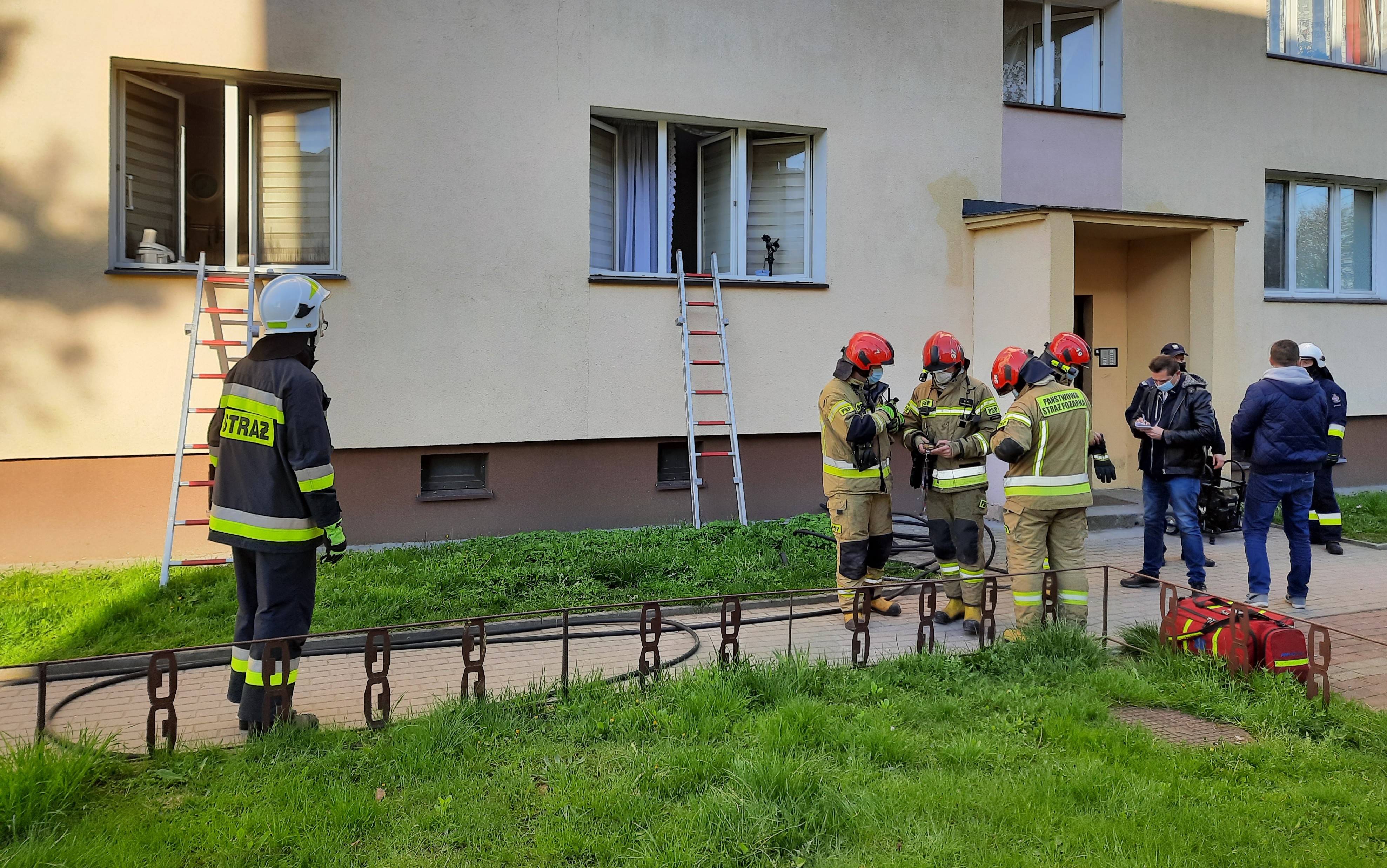 W chwili przyjazdu na miejsce jednostek ochrony przeciwpożarowej przy otwartymokniemieszkania znajdującego się na parterze budynku, z którego wydobywał się gęsty dym stał mężczyzna wołający o pomoc. Ten sam mężczyzna poinformował strażaków, że w pokoju, w którym wybuchł pożar przebywa druga osoba, ale ze względu na gęsty dym utrudniający oddychanie i widoczność nie jest w stanie do niej dotrzeć.