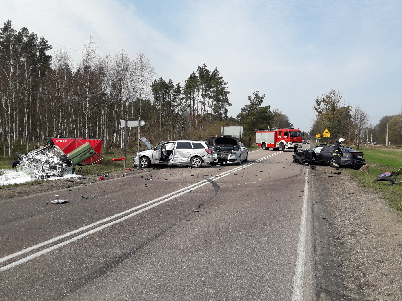Do drugiego tragicznego w skutkach zdarzenia doszło 18 kwietnia 2021 r. około godziny 11.05 na drodze krajowej Nr 65 w okolicach miejscowości Osowiec-Twierdza. Doszło tam do zderzenia pięciu samochodów osobowych, którymi podróżowało łącznie 10 osób. W jednym z pojazdów znajdował się zakleszczony kierowca. Działania JOP polegały na zabezpieczeniu miejsca zdarzenia, ewakuacji poszkodowanego z samochodu oraz udzieleniu pomocy medycznej osobom biorącym udział w zdarzeniu. Niestety przybyły na miejsce lekarz Zespołu Pogotowia Ratunkowego po przejęciu poszkodowanych stwierdził zgon jednego z kierowców. W działaniach trwających ponad 4 godziny udział brało 6 zastępów ratowniczo-gaśniczych i 22 ratowników z PSP i OSP, Pogotowie Ratunkowe i Policja.