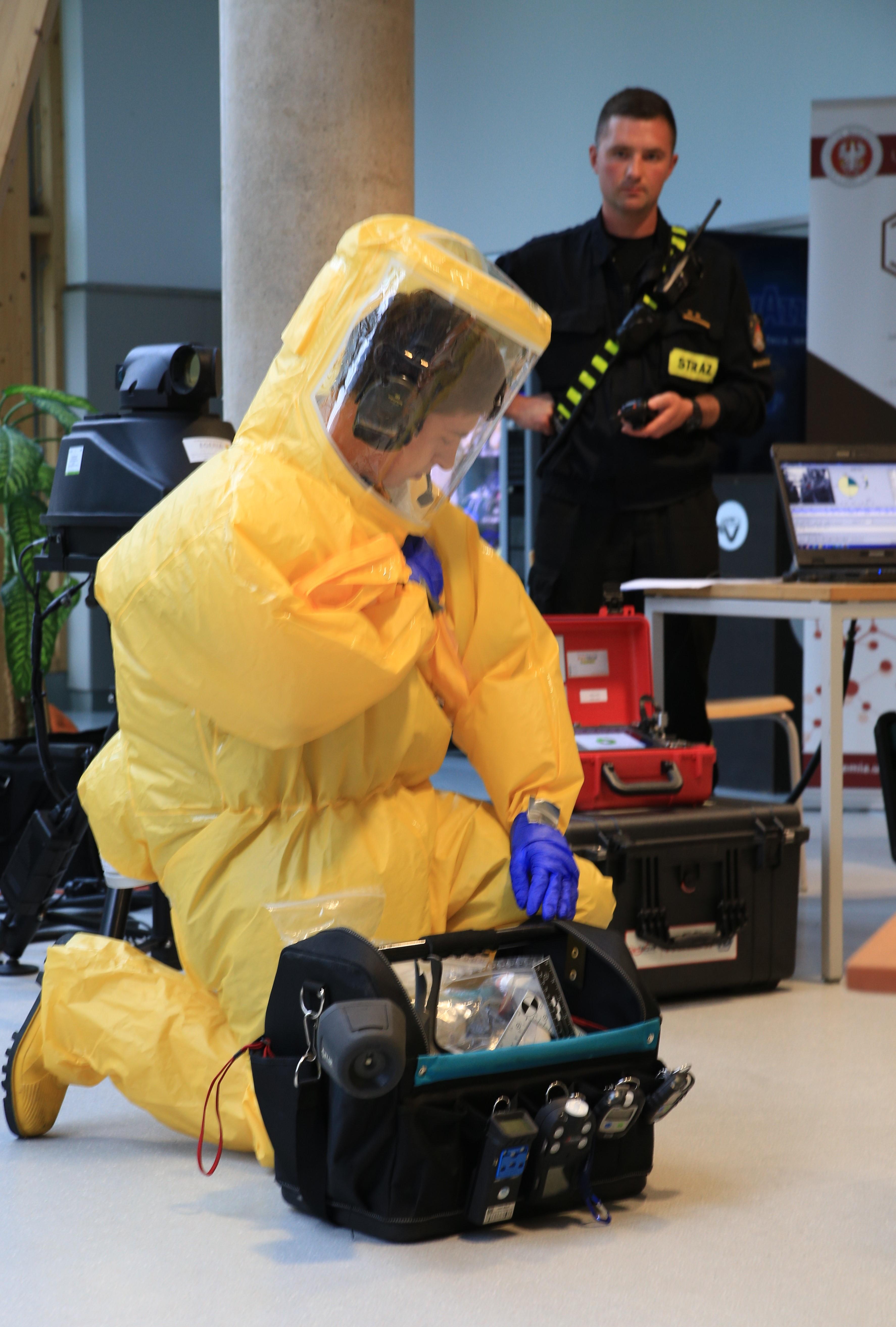 Strażacy z SGR Chem-Eko Białystok zaprezentowali sprzęt wykorzystywany do detekcji i pomiarów stężeń substancji chemicznych, a także środki ochrony indywidualnej.