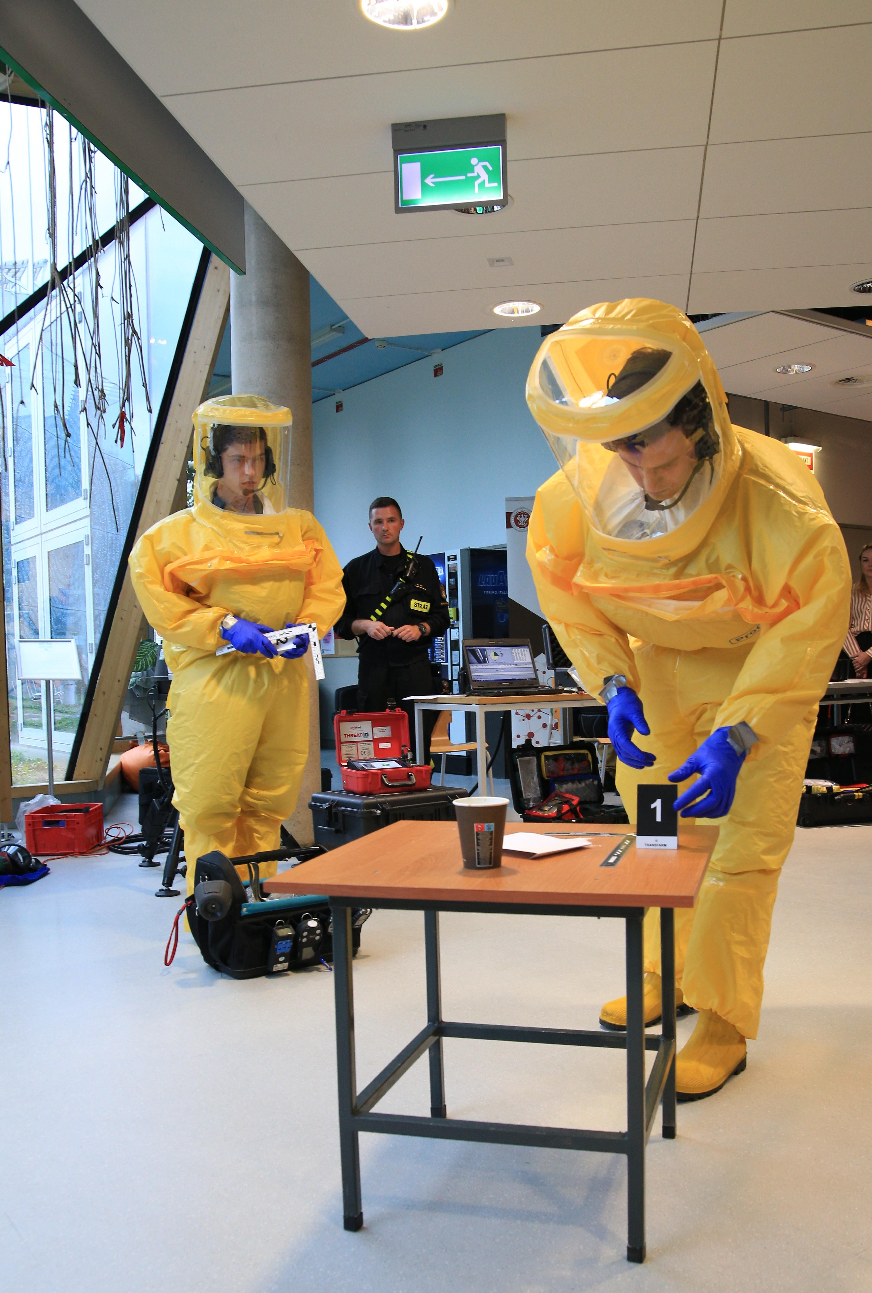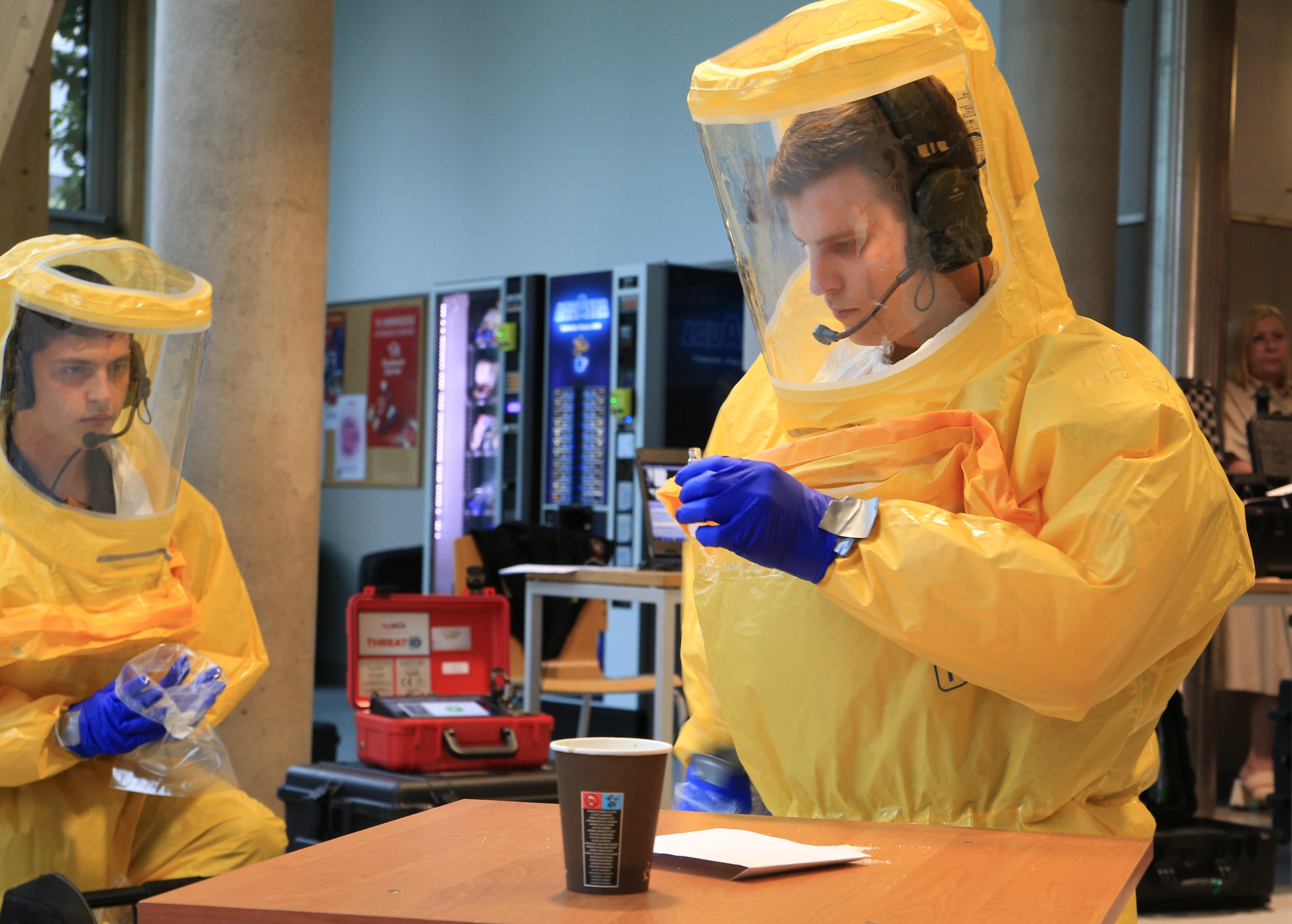 Kulminacyjnym elementem spotkania był pokaz działania SRG Chem-Eko Białystok w warunkach wystąpienia potencjalnego zagrożenia wynikającego z obecności substancji niewiadomego pochodzenia.