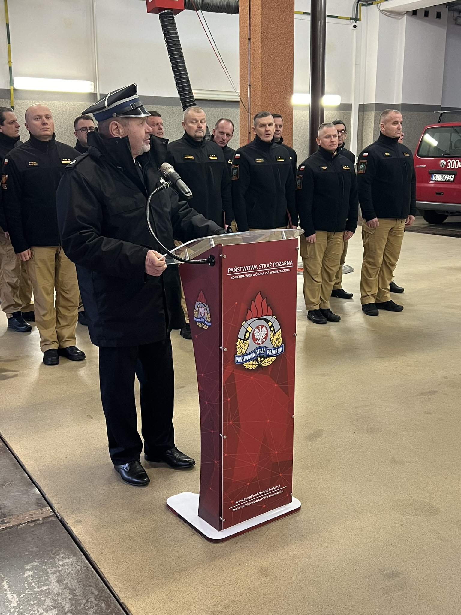 Podczas krótkiej uroczystości przekazano 14 pojazdów do komend powiatowych i miejskich PSP województwa podlaskiego. Nowe pojazdy otrzymały następujące komendy PSP: