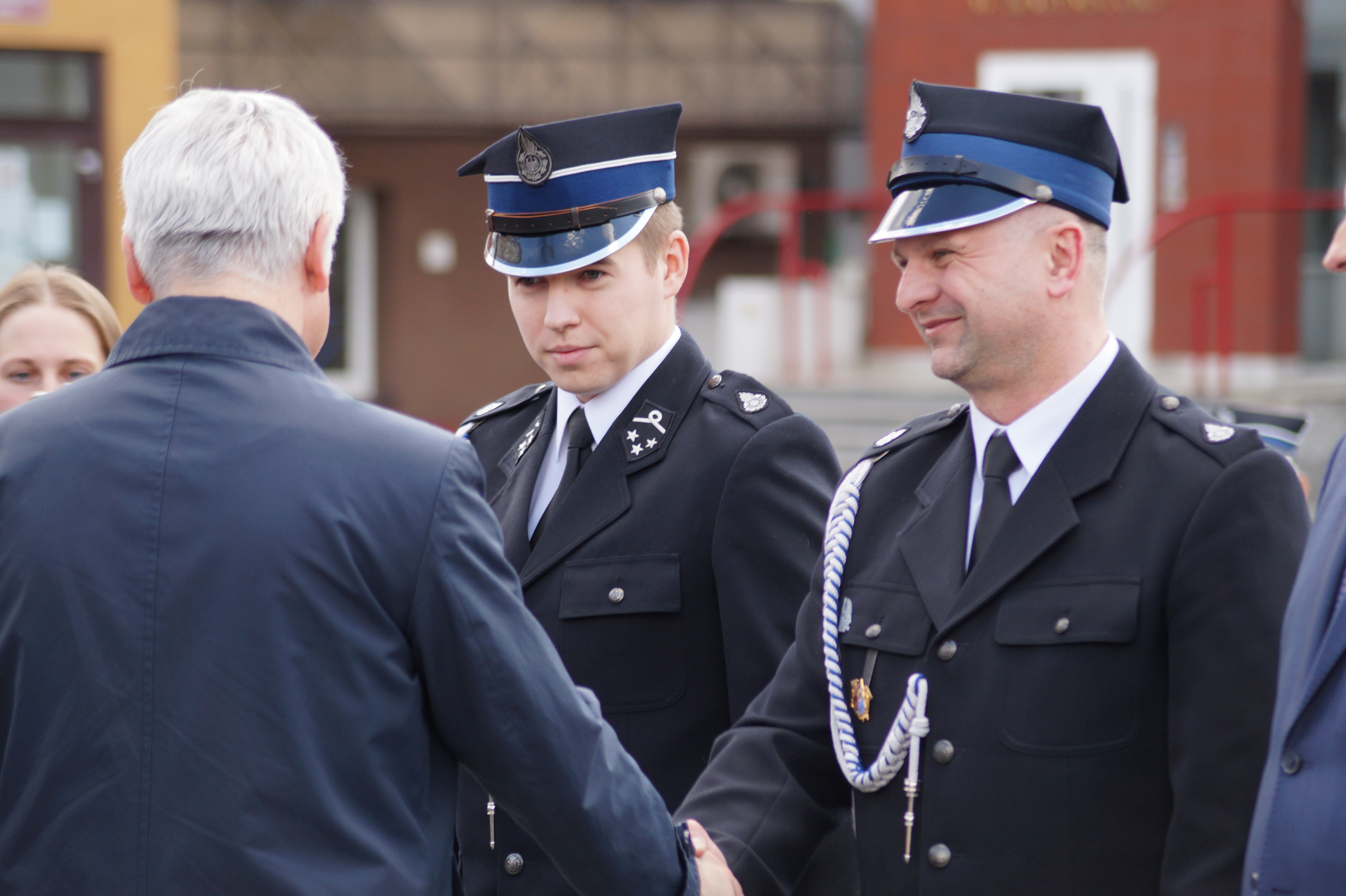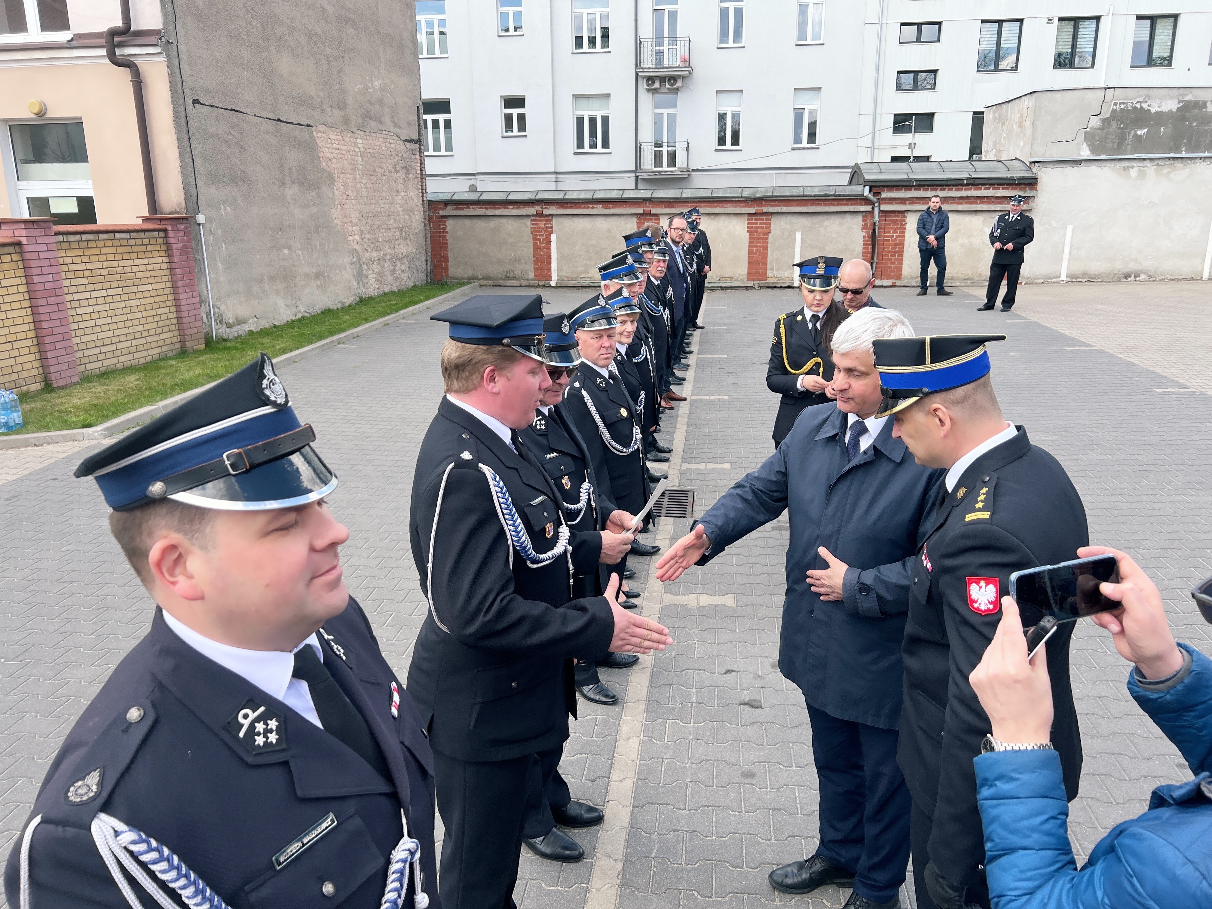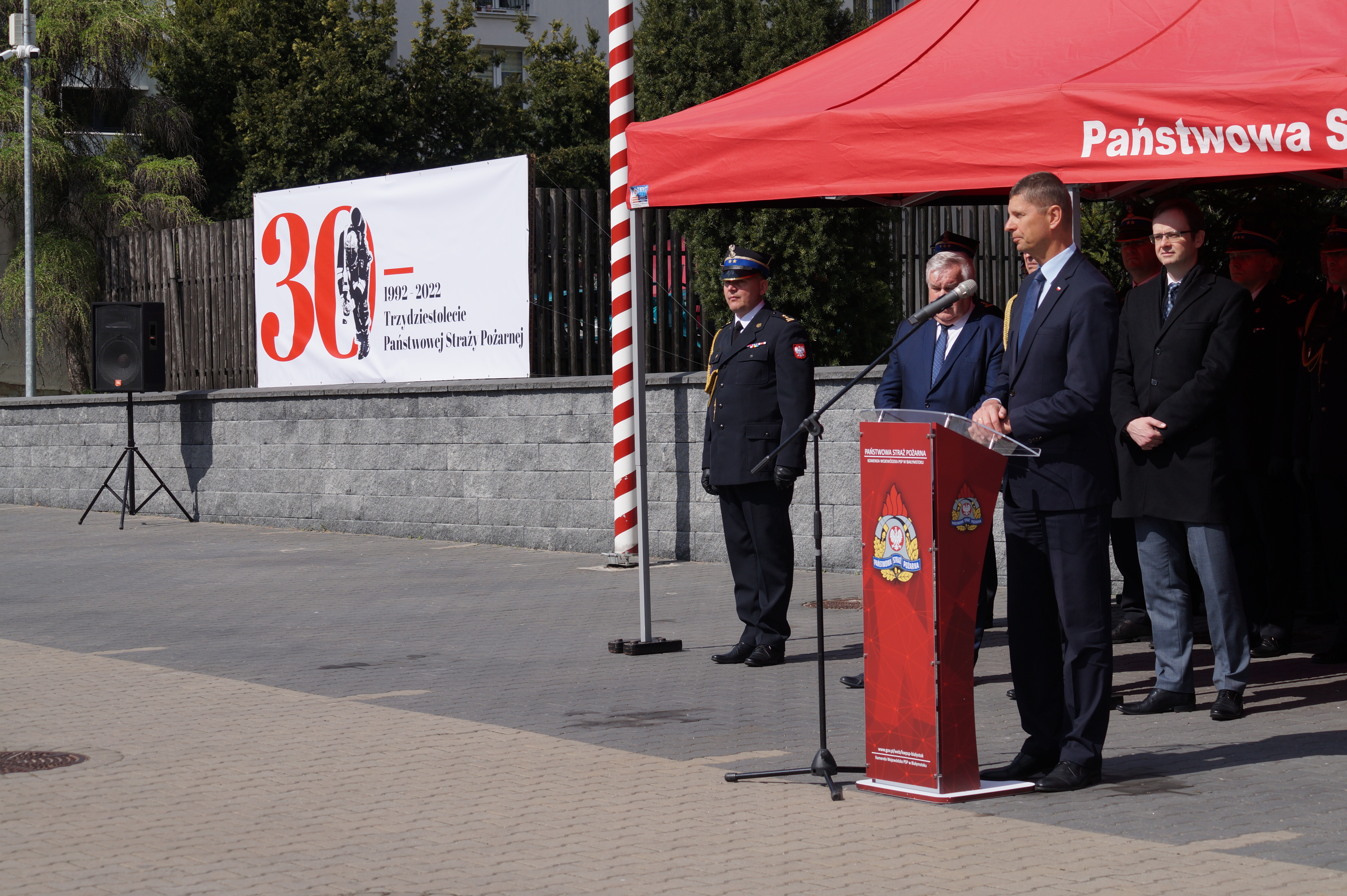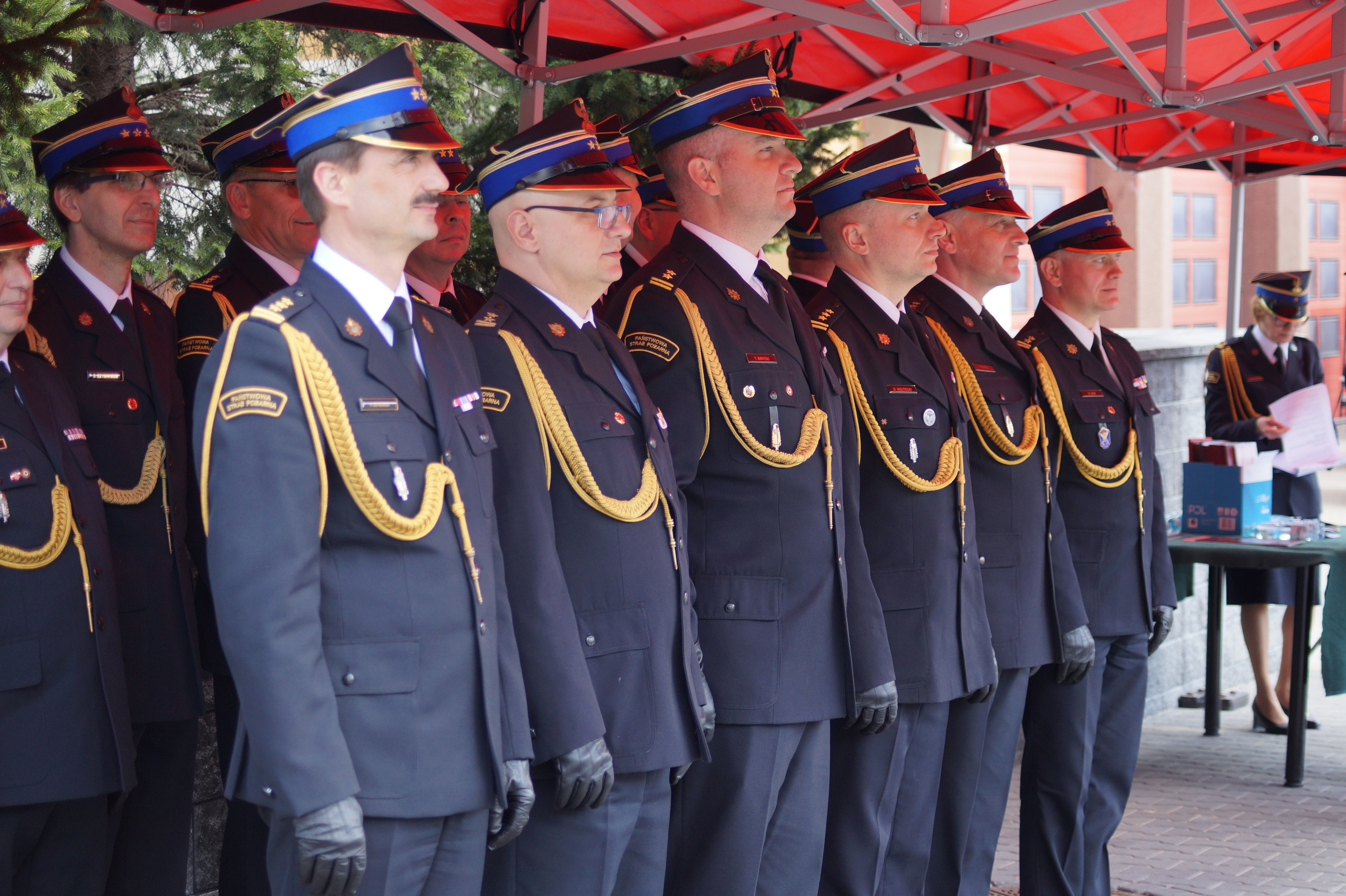 Decyzje wręczał Pan Bohdan PASZKOWSKI - Wojewoda Podlaski, w asyście st. bryg. Sebastiana Zdanowicza - Podlaskiego Komendanta Wojewódzkiego PSP i druha Andrzeja Koca - Prezes Zarządu Oddziału Wojewódzkiego Związku Ochotniczych Straży Pożarnych Rzeczypospolitej Polskiej.