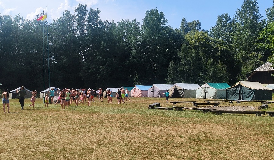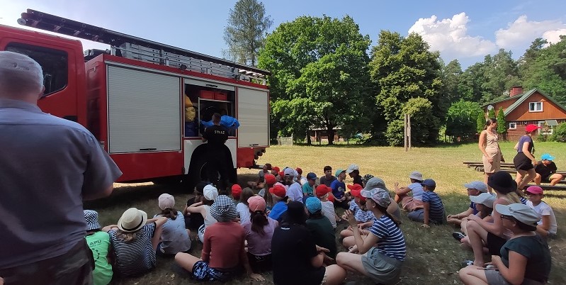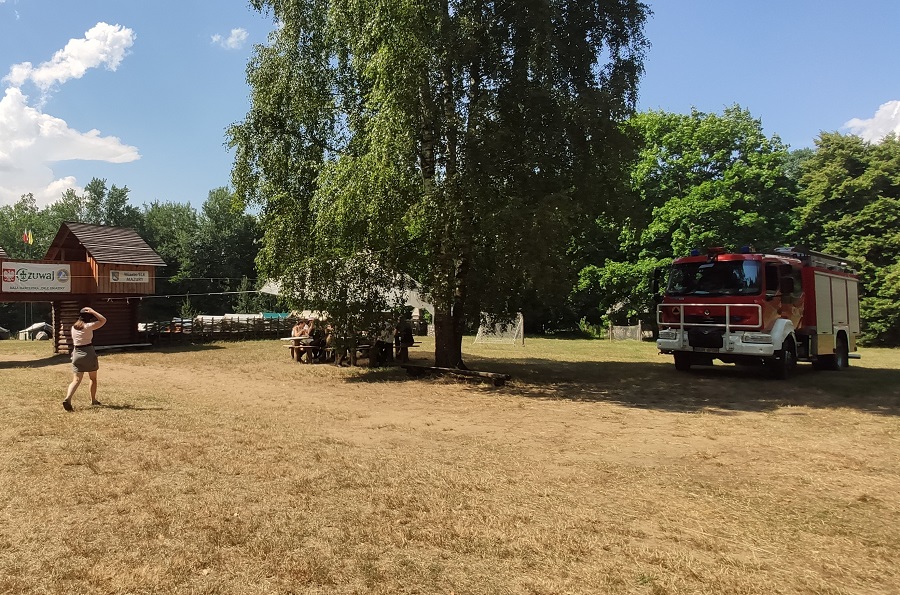 Realizując działania edukacyjne w ramach prewencji społecznej, funkcjonariusze Komendy Powiatowej Państwowej Straży Pożarnej w Grajewie omówili zasady postepowania na wypadek powstania pożaru lub innego miejscowego zagrożenia na terenie obozu ze szczególnym uwzględnieniem niebezpiecznych zjawisk atmosferycznych, praktycznego użycia podręcznego sprzętu gaśniczego i alarmowania służb przy wykorzystaniu numeru alarmowego 112. W celu wzmożenia bezpieczeństwa obozowiczów przeprowadzono praktyczną próbę ewakuacji i dokonano podsumowania jej przebiegu.
