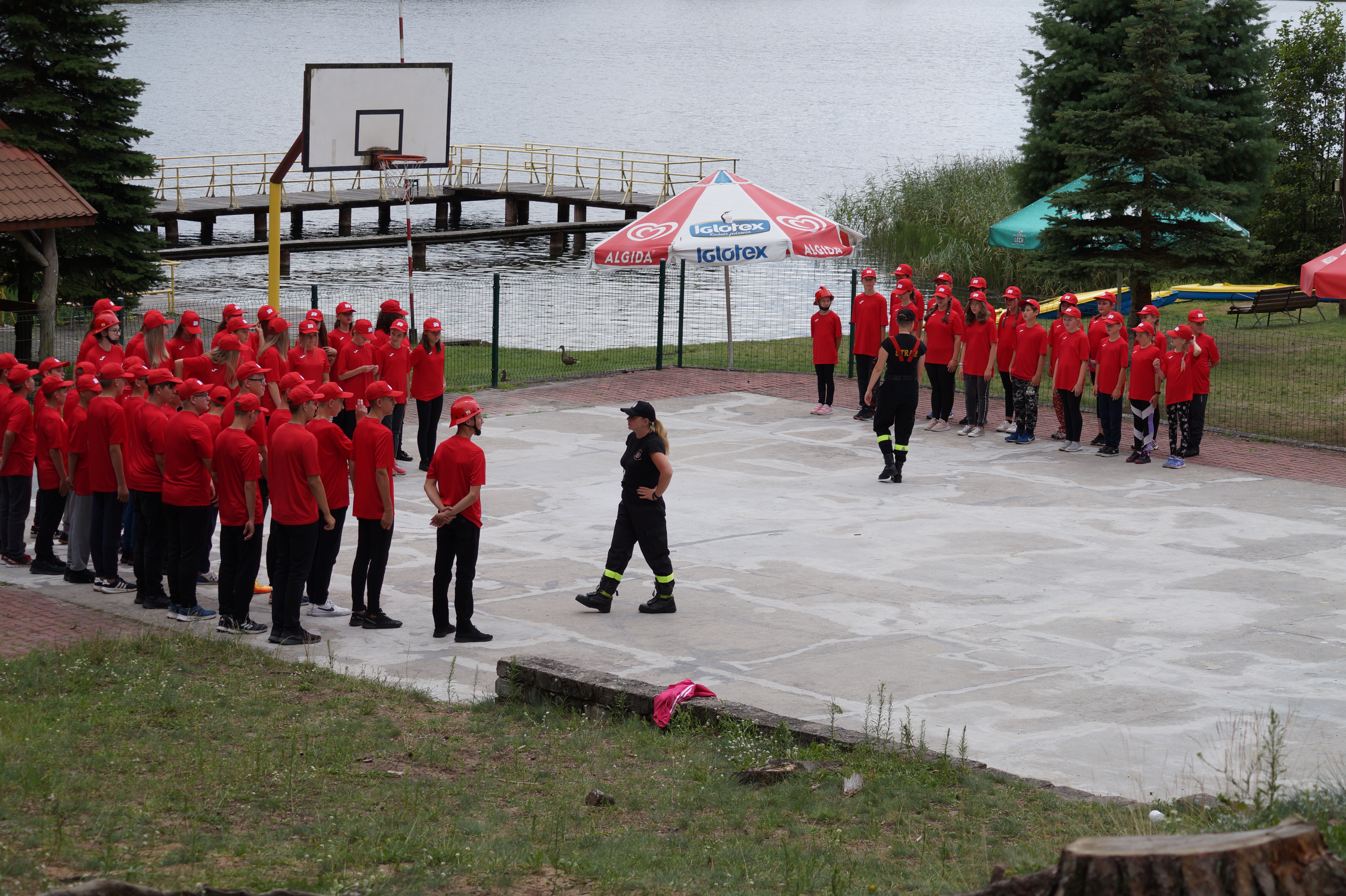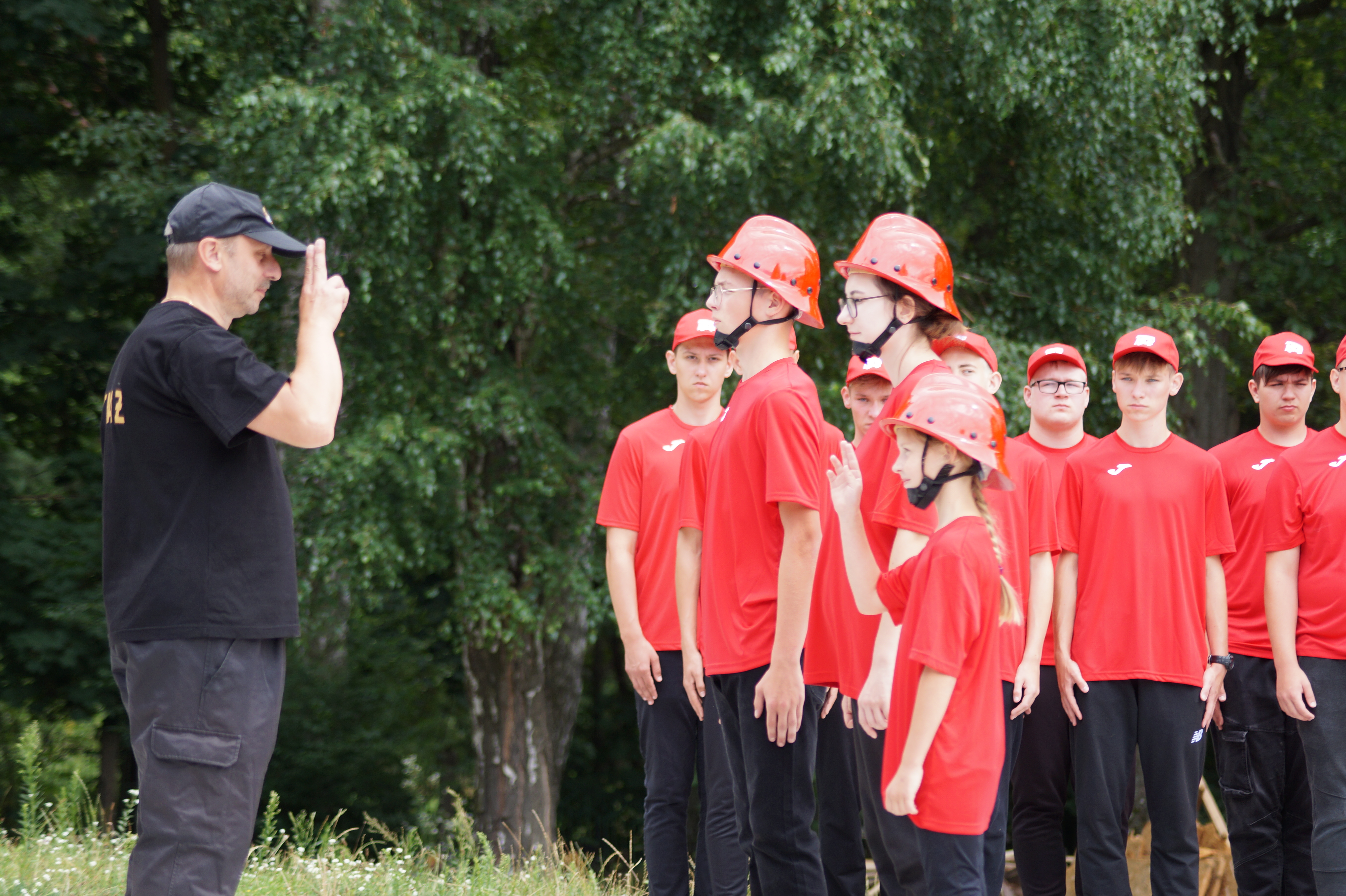 Zastępca Podlaskiego Komendanta Wojewódzkiego PSP st. bryg. Robert Dzierżek odwiedził Obóz Strażacki Młodzieżowych Drużyn Pożarniczych z woj. podlaskiego, zorganizowany w "Leśnym Dworze" w Ełku w woj. warmińsko-mazurskim.