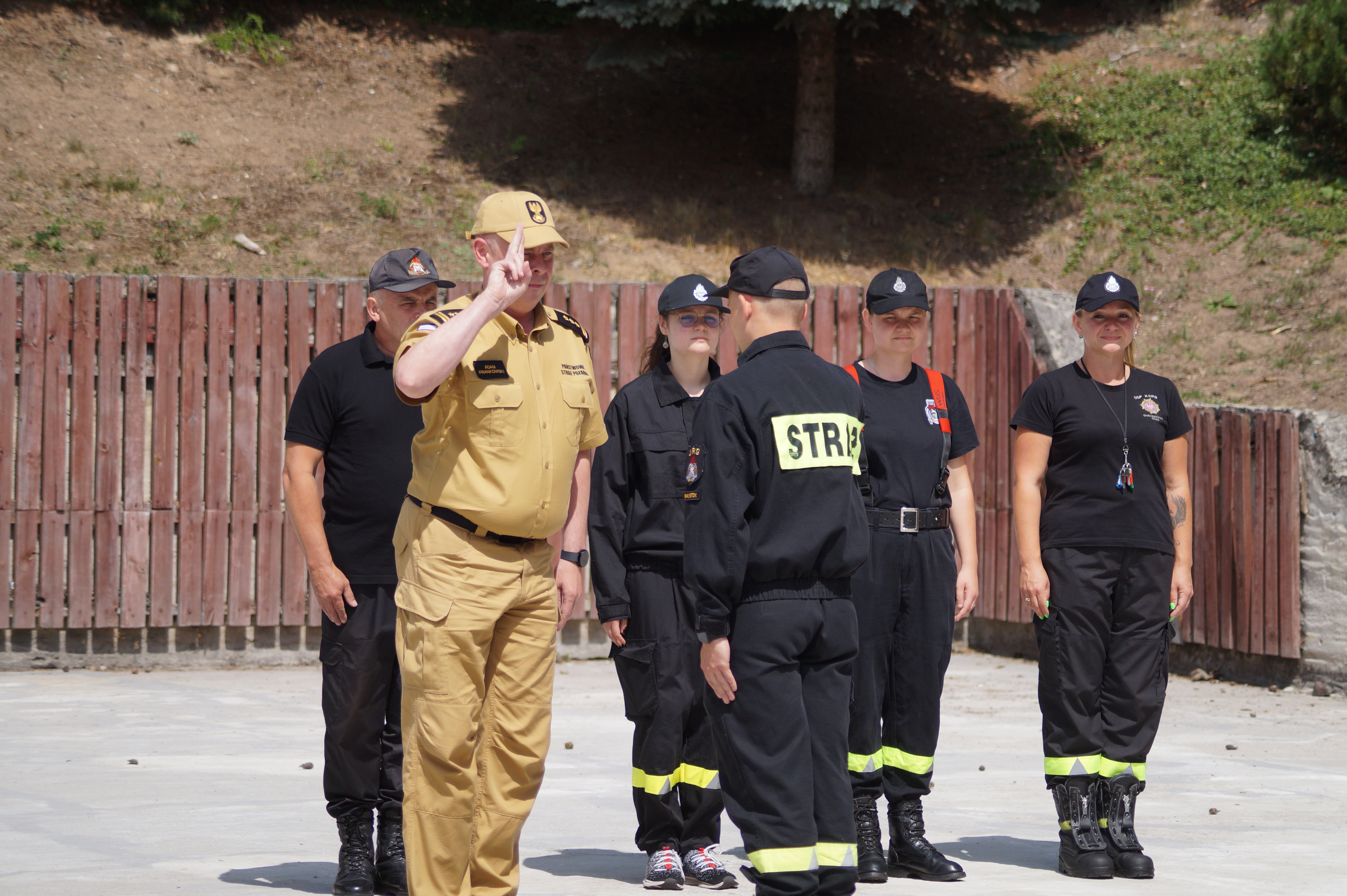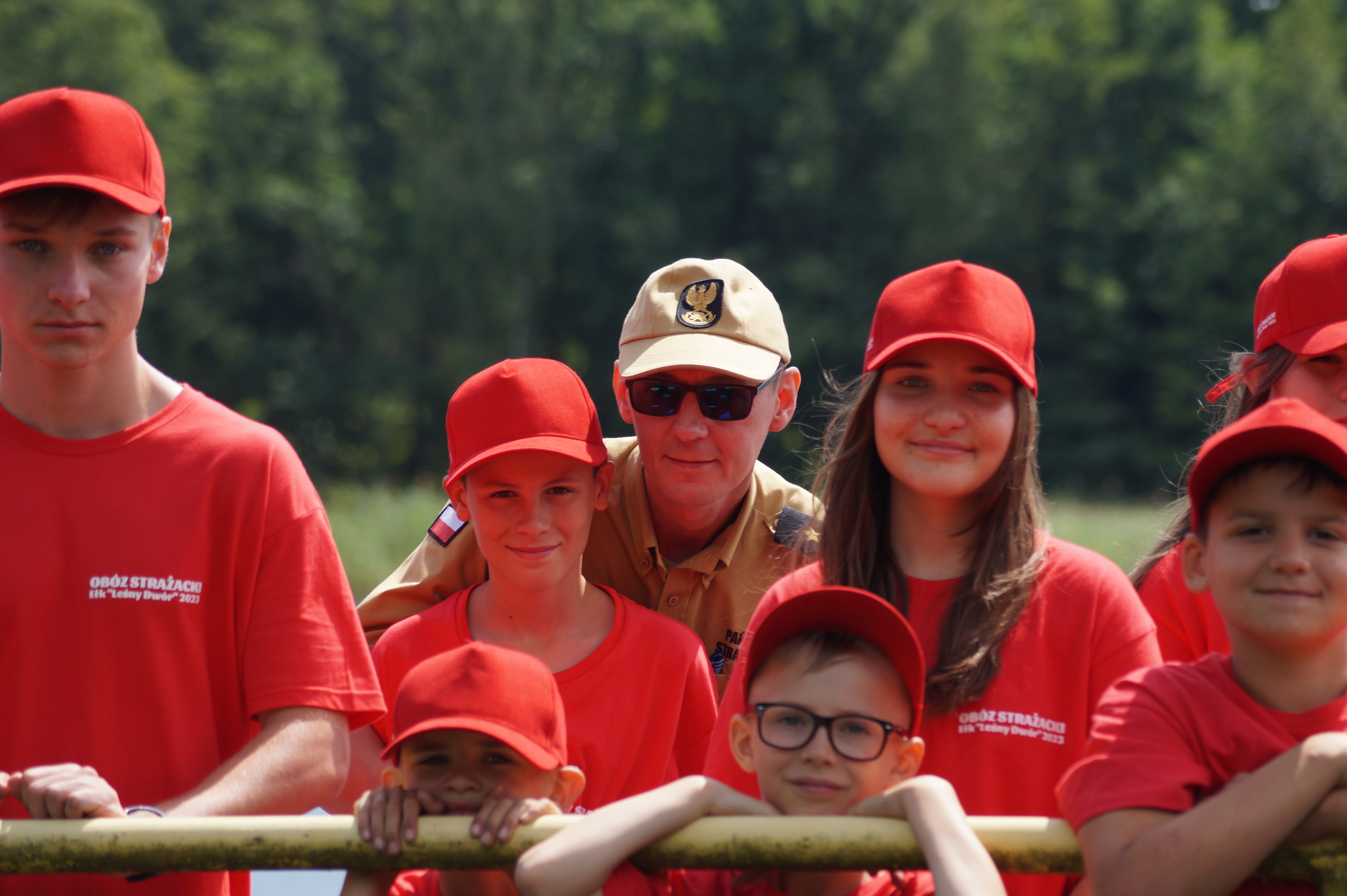 Zastępca Podlaskiego Komendanta Wojewódzkiego PSP st. bryg. Adam Frankowski wizytował Obóz Szkoleniowy Młodzieżowych Drużyn Pożarniczych z woj. podlaskiego, zorganizowany w "Leśnym Dworze" w Ełku w woj. warmińsko-mazurskim.