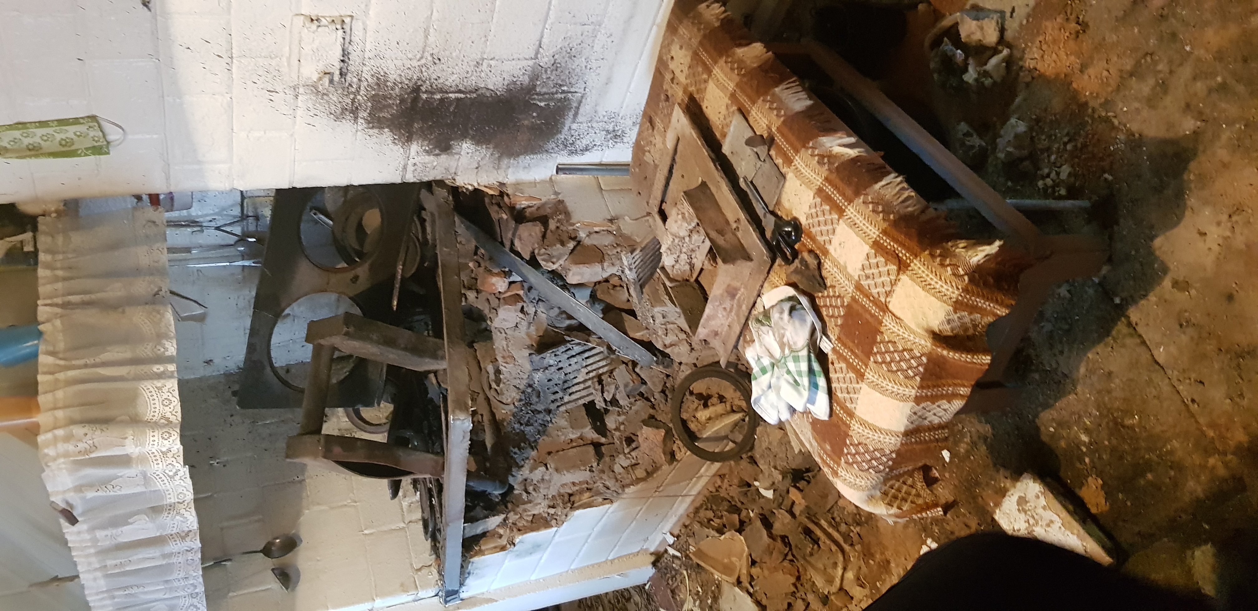 Po przybyciu na miejsce zdarzenia stwierdzono, że w budynku jednorodzinnym w którym mieszkało małżeństwo doszło do rozsadzenia pieca kaflowego, w wyniku czego poszkodowany został mężczyzna. Działania straży polegały na zabezpieczeniu miejsca zdarzenia, opatrzeniu rany nogi poszkodowanemu mężczyźnie i przekazaniu osoby poszkodowanej przybyłemu na miejsce Zespołowi Ratownictwa Medycznego. Kobieta po zbadaniu przez Zespół Ratownictwa Medycznego pozostała na miejscu zdarzenia. Ranny mężczyzna został przewieziony do szpitala na dalszą diagnostykę.