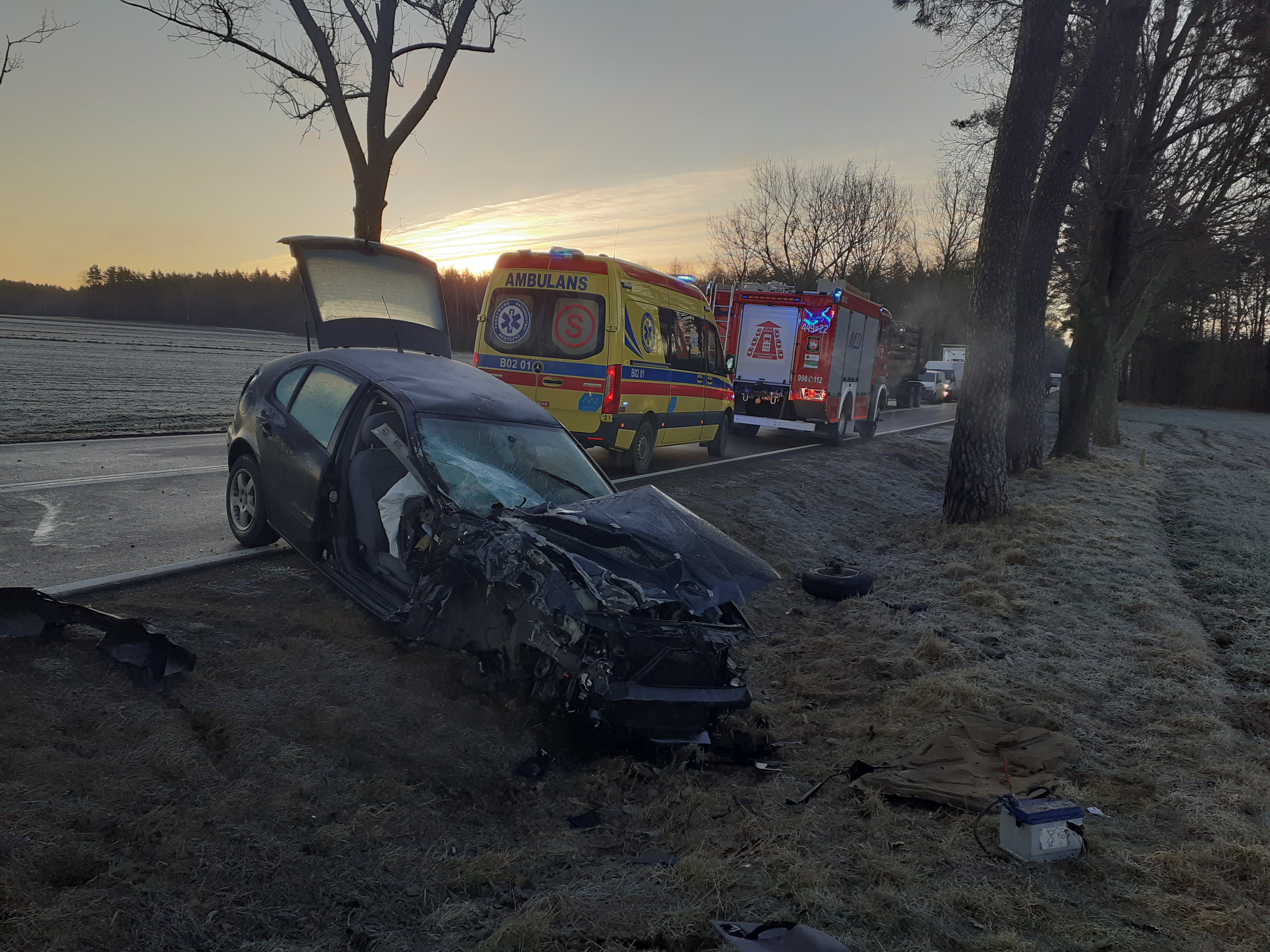 O godzinie 5:40 do SKKP w Kolnie wpłynęła informacja o wypadku na drodze krajowej 63 w pobliżu miejscowości Mały Płock. Po dojeździe na miejsce zdarzenia ustalono, że doszło do zderzenia dwóch pojazdów, którymi podróżowali tylko kierowcy. W momencie przyjazdu zastępów JOP, obydwaj kierowcy znajdowali się poza pojazdami, uskarżając się na ból w klatce piersiowej. Trzeci pojazd sam ciężarowy (ciągnik siodłowy) z przyczepą wiozący kombajn - stoi 150m dalej, kierowcy nic się nie stało. Działania zastępów polegały na zabezpieczeniu miejsca zdarzenia, zabezpieczeniu pojazdów poprzez odłączenie akumulatorów oraz udzieleniu poszkodowanym kwalifikowanej pierwszej pomocy do momentu przybycia Zespołu ratownictwa Medycznego. Na czas działań droga była całkowicie zablokowana. W zdarzeniu udział brały po dwa zastępy z JRG Kolno i OSP KSRG Mały Płock, łącznie 15 ratowników.