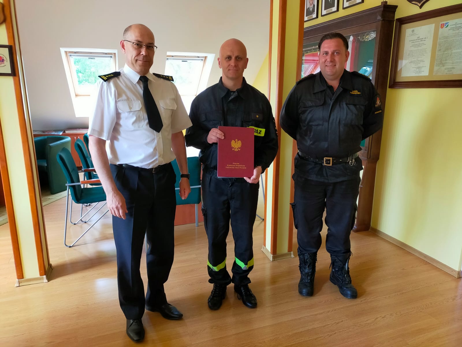 W dniu 15 czerwca 2022 r. Komendant Powiatowy PSP w Augustowie st. bryg. Leszek Krzyżewski przekazał na ręce funkcjonariusza asp. Andrzeja Sobolewskiego list gratulacyjny Komendanta Wojewódzkiego oraz decyzje o przyznaniu nagrody finansowej.