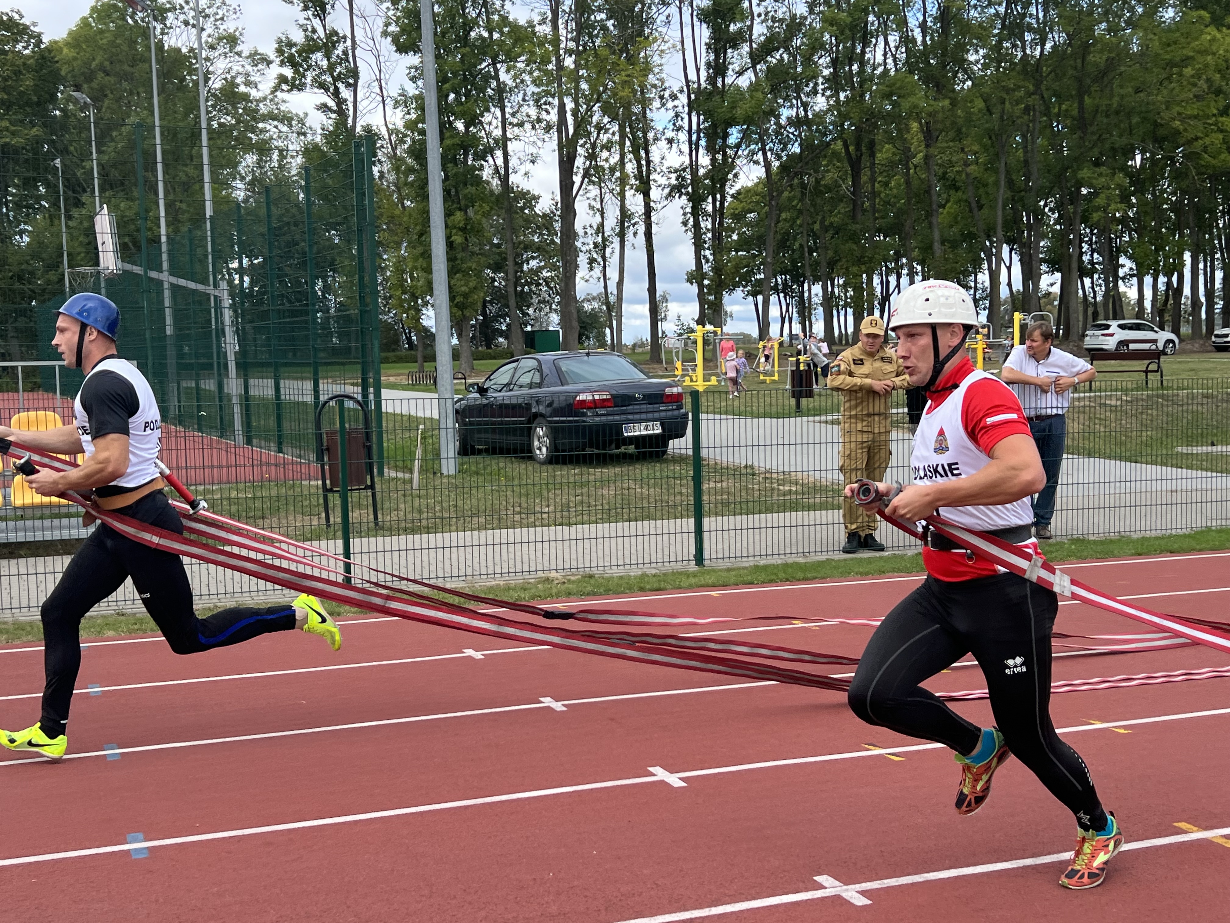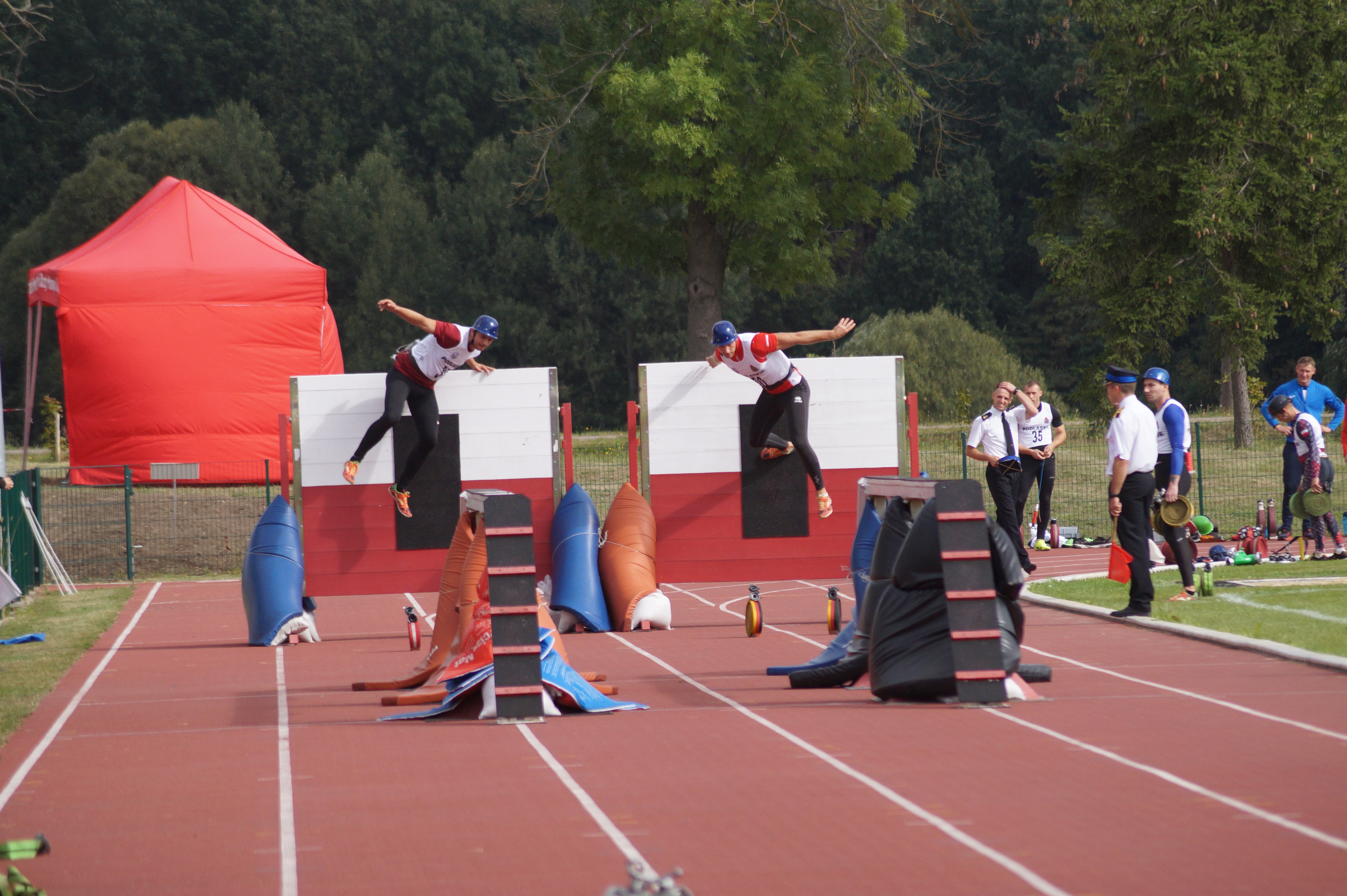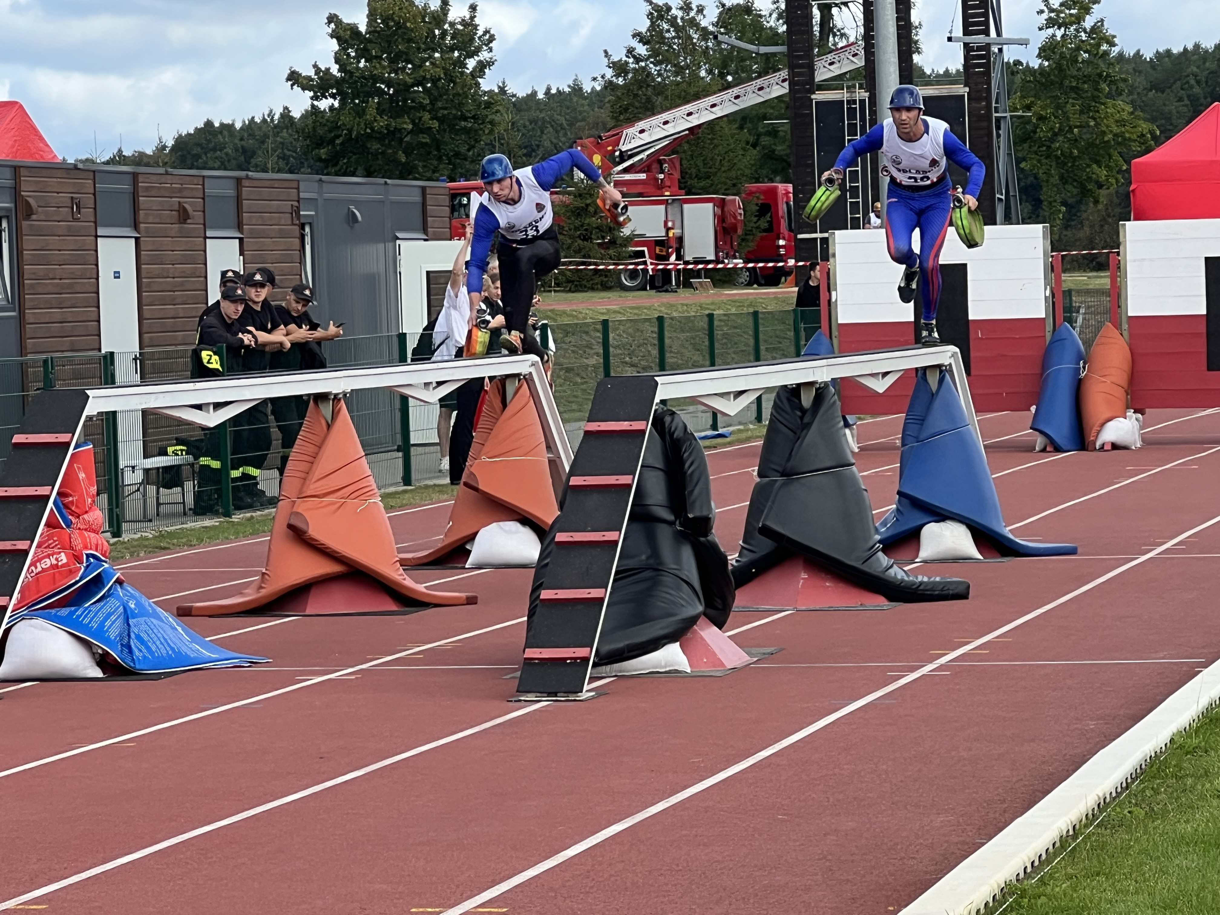 Jako pierwsza rozegrana został konkurencja – pożarniczy tor przeszkód 100 m. Pierwsze trzy miejsca przedstawiały się w następujący sposób: