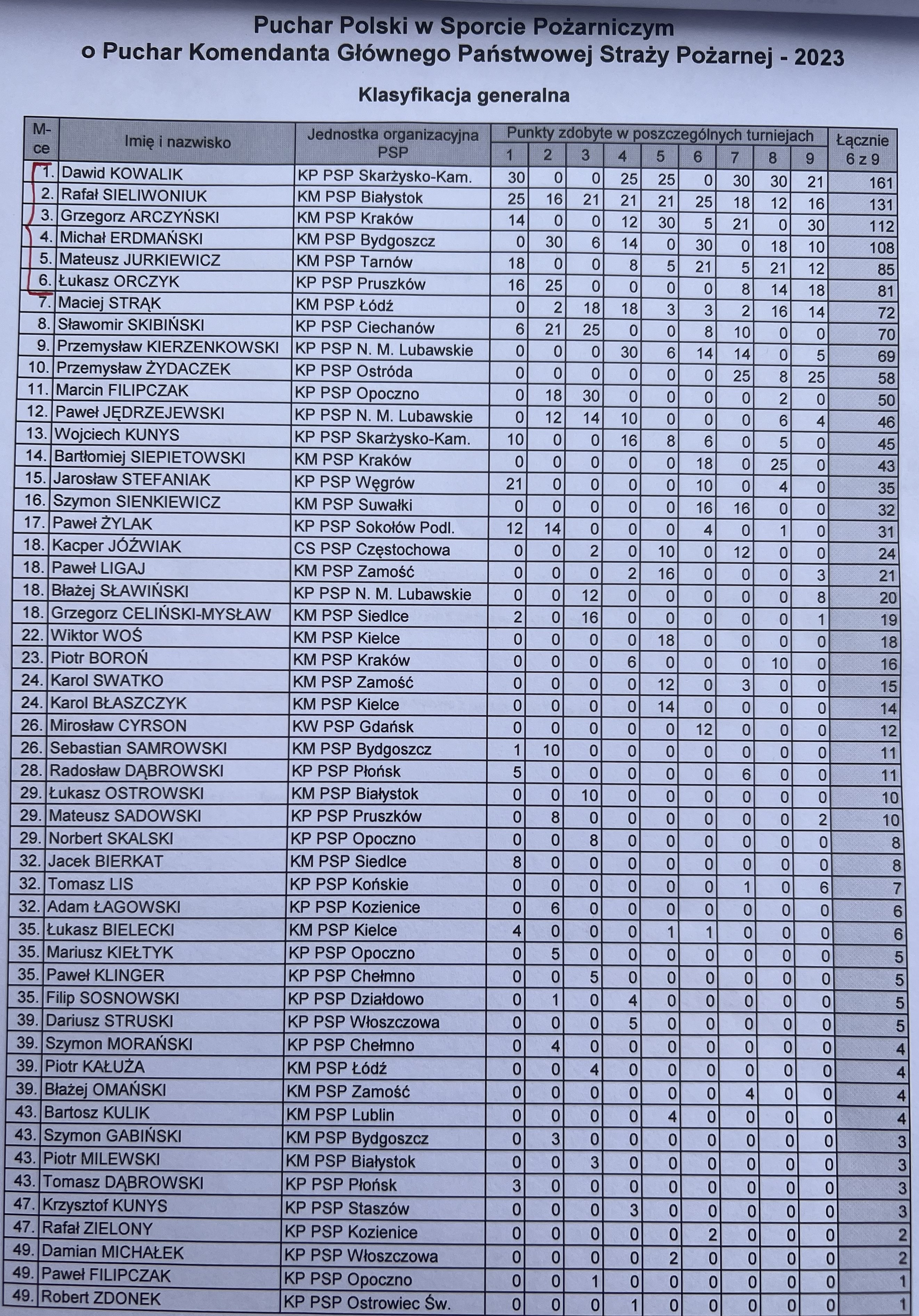 - Dawid Kowalik – KP PSP Skarżysko-Kamienna – 161 pkt,