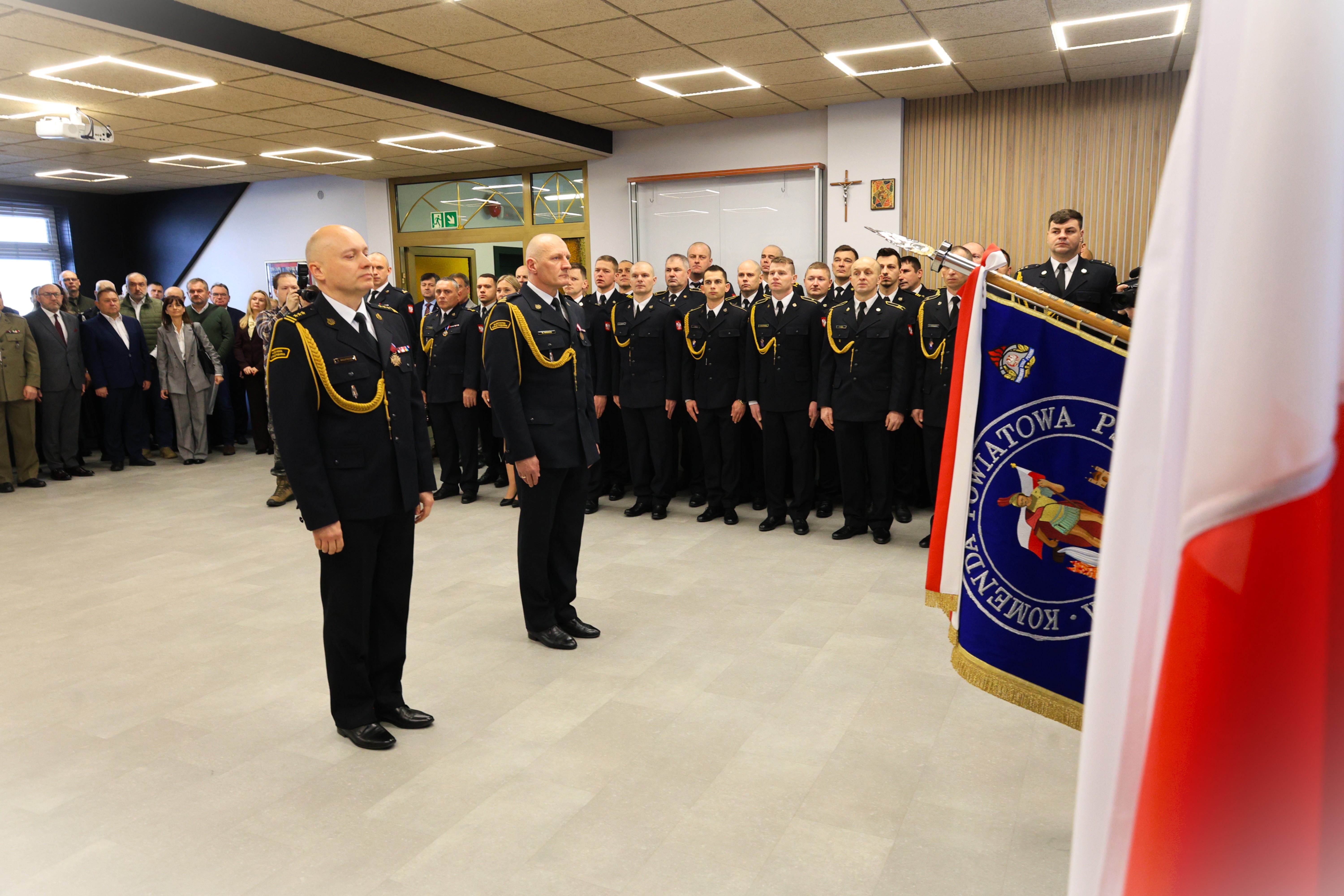 9 lutego 2026 roku w Komendzie Powiatowej PSP w Sokółce, w obecności zaproszonych gości oraz funkcjonariuszy i pracowników komendy, odbyła się uroczystość zmiany na stanowisku Komendanta Powiatowego PSP.