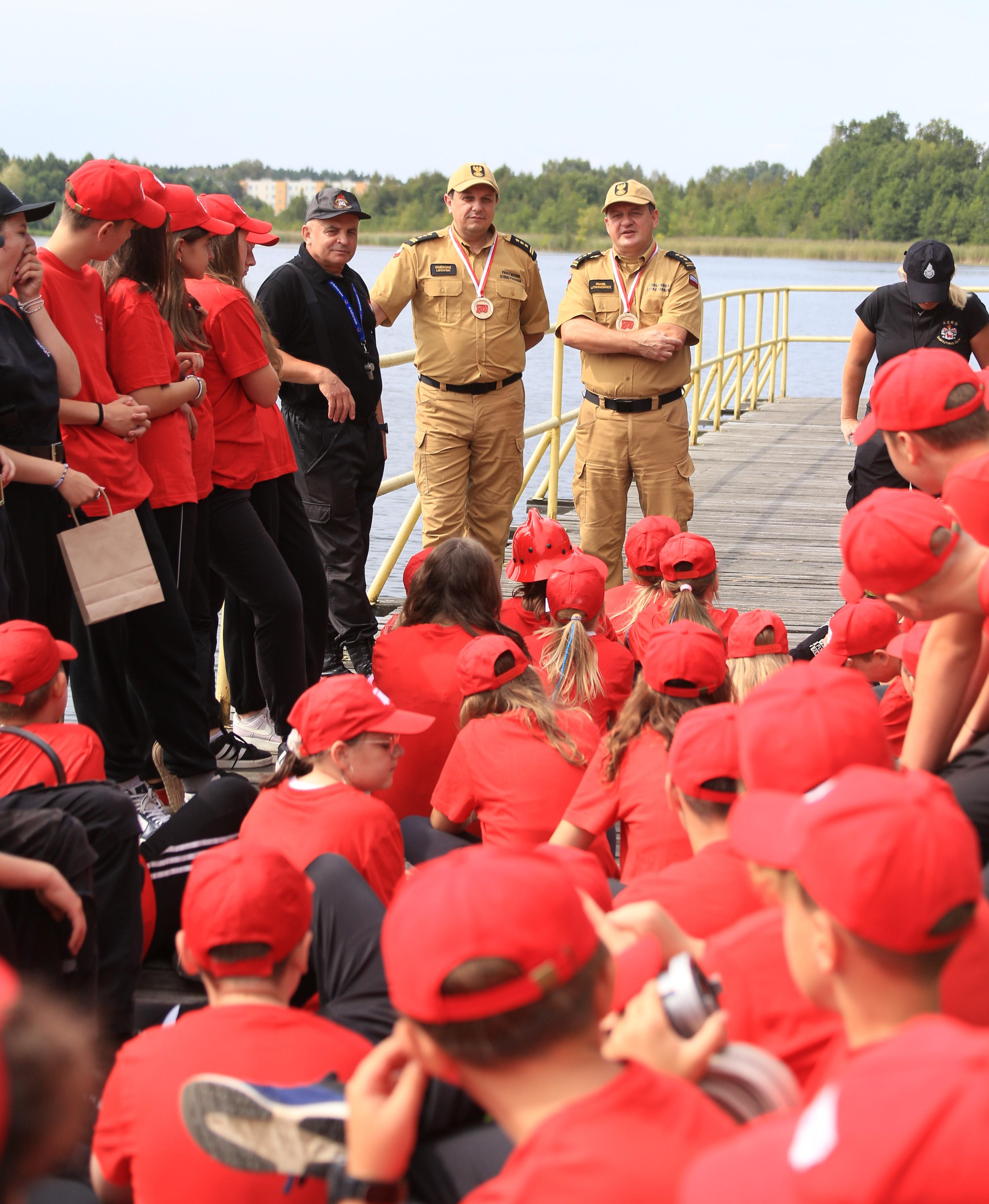 Zastępca Podlaskiego Komendanta Wojewódzkiego PSP po apelu i odśpiewaniu hymnu przeprowadził pogawędkę z dziećmi w zakresie bezpiecznego wypoczynku i edukacji pożarniczej.