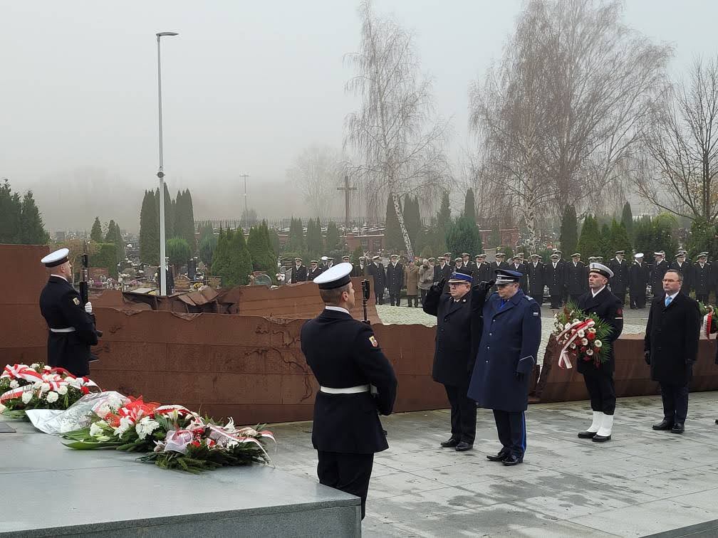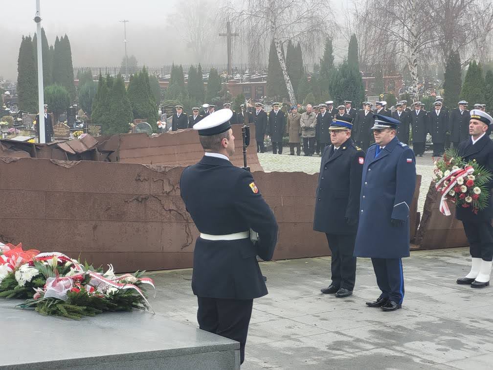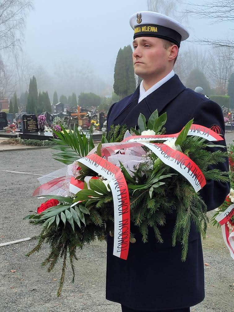 Uczestnicy obchodów złożyli kwiaty w panteonie bohaterów Marynarki Wojennej w Gdyni – Oksywiu na Cmentarzu Marynarki Wojennej.