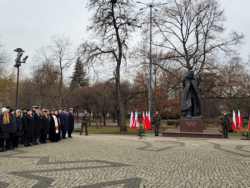 Uczestnicy obchodów złożyli kwiaty pod pomnikiem Marszałka Józefa Piłsudskiego w Gdańsku.