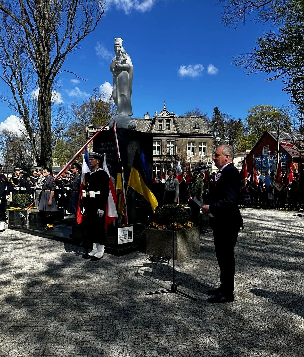 Uroczystość rozpoczęła się mszą św. w kościele parafialnym pw. Św. Kazimierza. Następnie ulicami miasta odbył się przemarsz pod figurkę Matki Boskiej Królowej Korony Polskiej, gdzie złożono kwiaty.