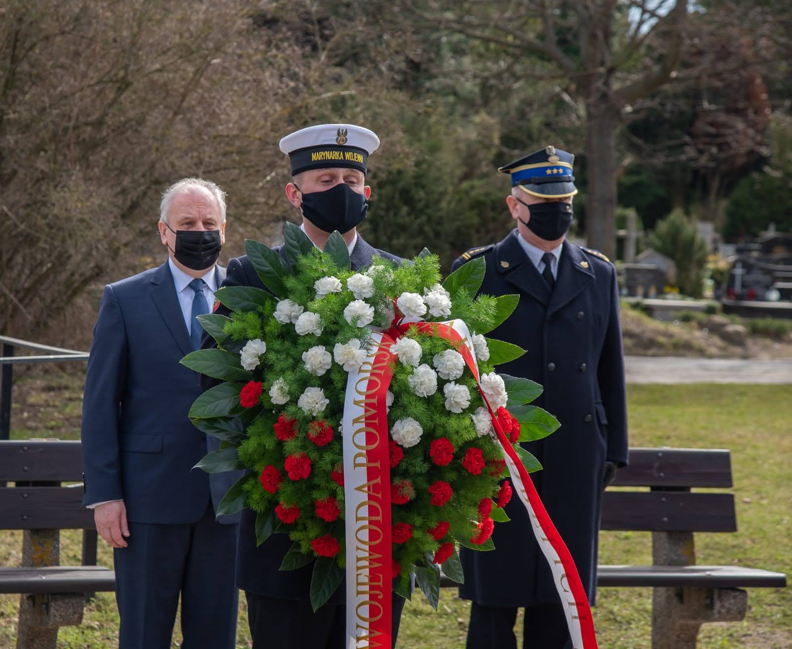 81 lat temu, prawie 22 tysiące polskich jeńców zostało wywiezionych i rozstrzelanych w Katyniu. Z okazji Dnia Pamięci Ofiar Zbrodni Katyńskiej pod Pomnikiem Golgoty Wschodu na cmentarzu łostowickim w Gdańsku kwiaty złożył wojewoda pomorski Dariusz Drelich w asyście przedstawicieli służb mundurowych, wśród których hołd pomordowanym oddał zastępca pomorskiego komendanta wojewódzkiego PSP st. bryg. Tomasz Siemiętowski.