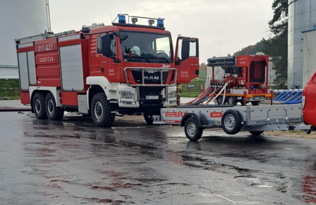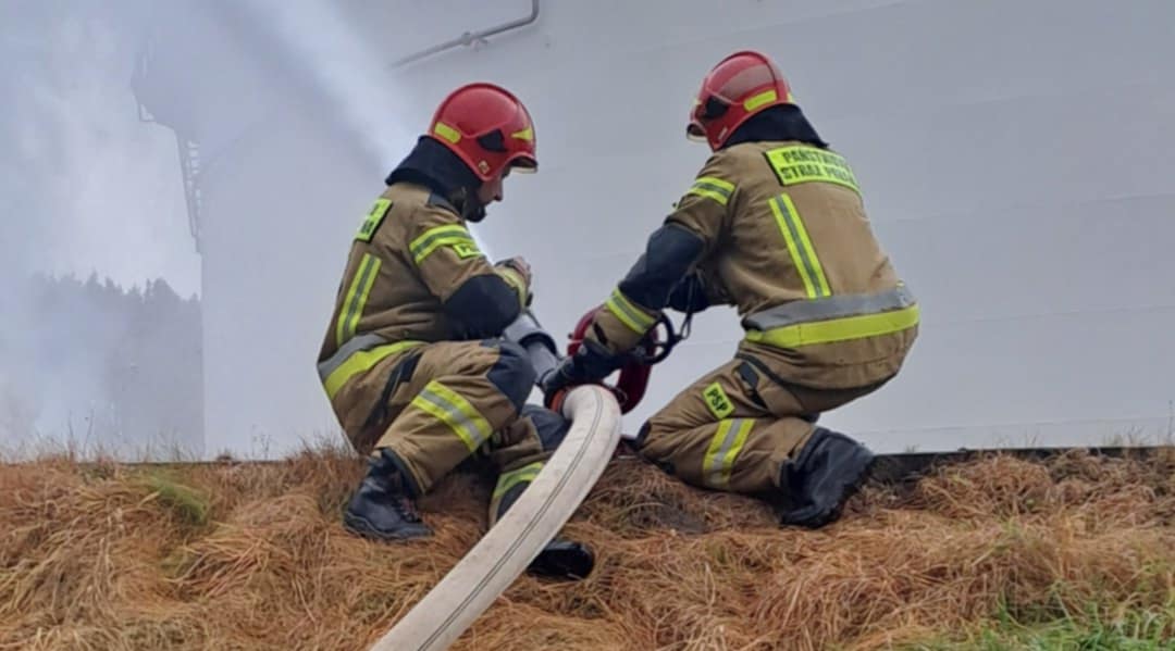 Ćwiczenia ratowniczo - gaśnicze w bazie PERN w Dębogórzu