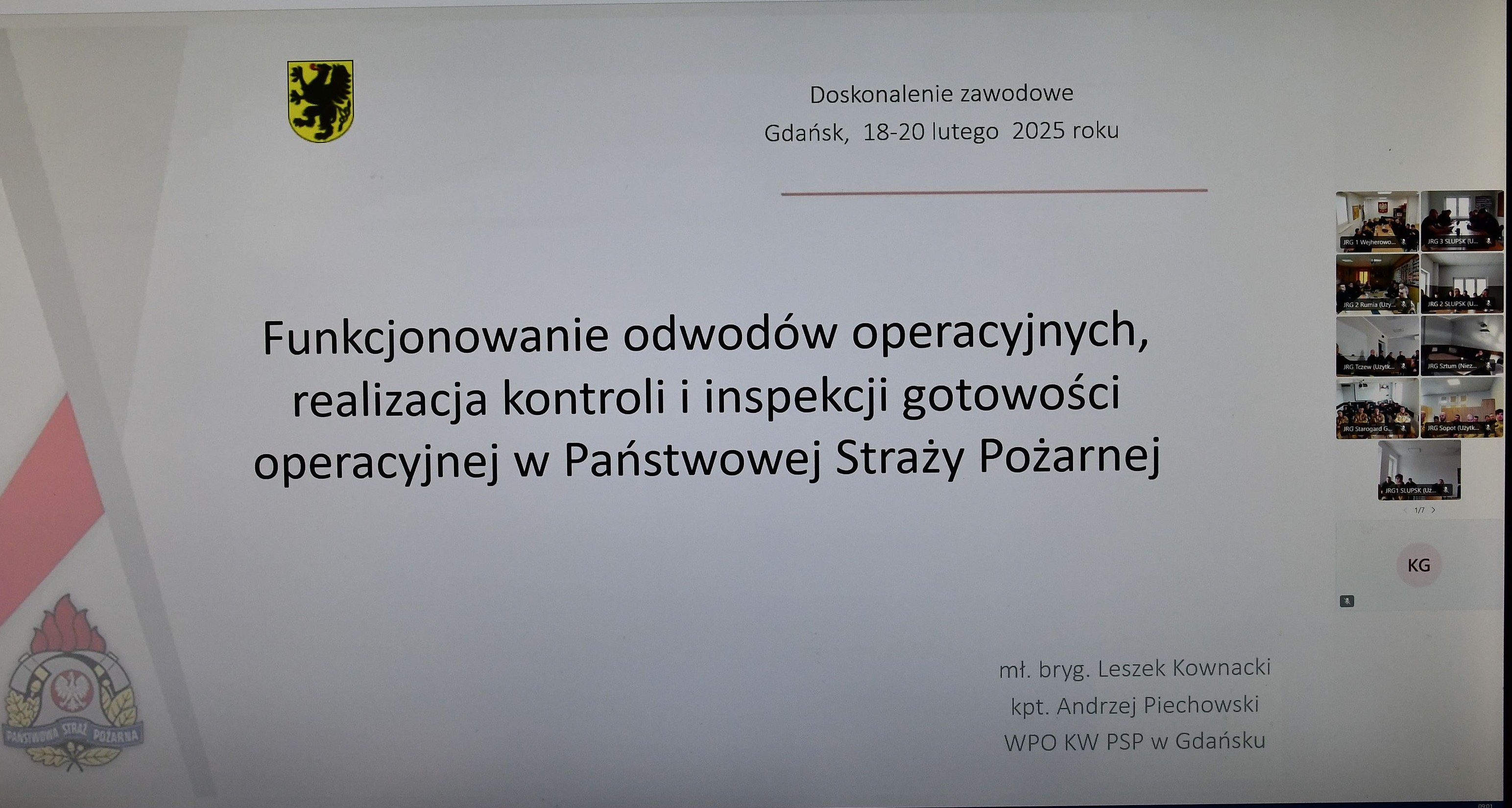 W dniach 18 - 20 lutego 2025 roku w Jednostkach Ratowniczo – Gaśniczych oraz w Stanowiskach Kierowania województwa pomorskiego odbyło się kolejne szkolenie wideokonferencyjne w ramach doskonalenia zawodowego.