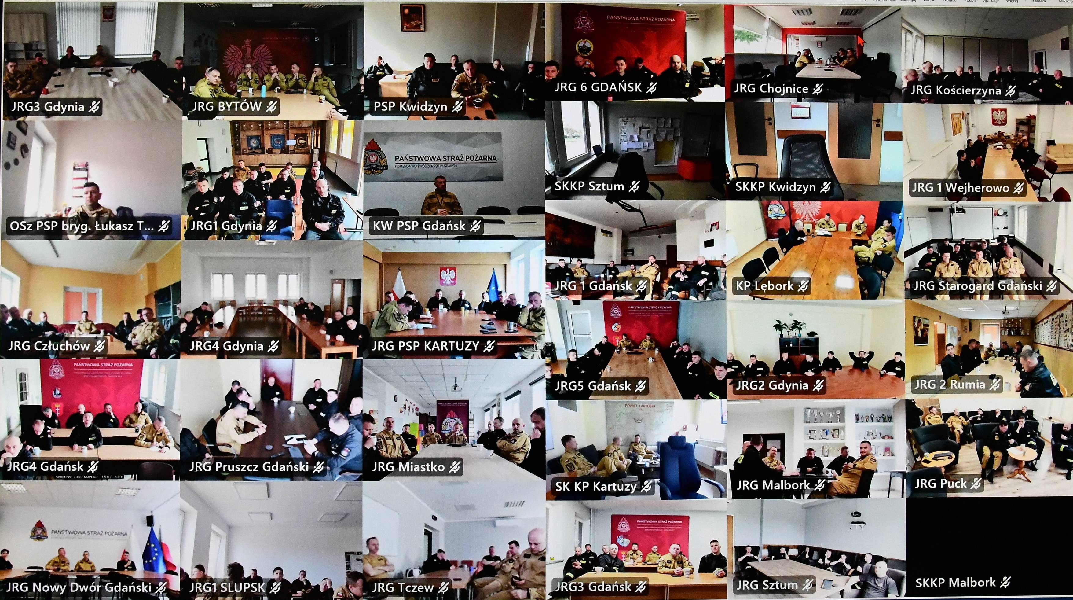 W dniach 22 - 24 kwietnia 2025 roku w Jednostkach Ratowniczo - Gaśniczych oraz Stanowiskach Kierowania województwa pomorskiego odbyło się kolejne szkolenie wideokonferencyjne w ramach doskonalenia zawodowego.