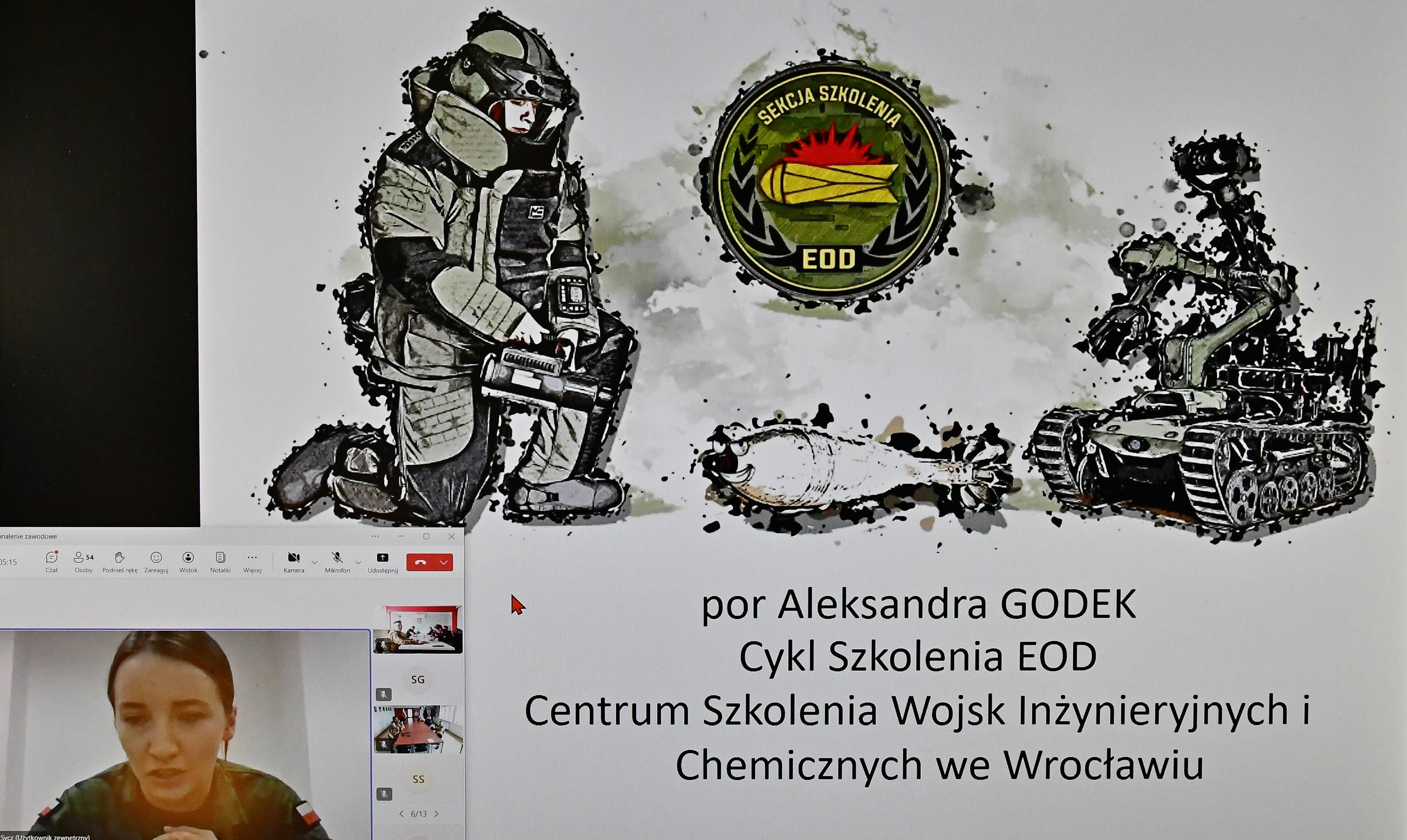 Drugim tematem były „Urządzenia i materiały wybuchowe pochodzenia militarnego”. Zajęcia poprowadzili wykładowcy Centrum Szkolenia Wojsk Inżynieryjnych i Chemicznych we Wrocławiu – mjr Dariusz Sycz oraz por. Aleksandra Godek.