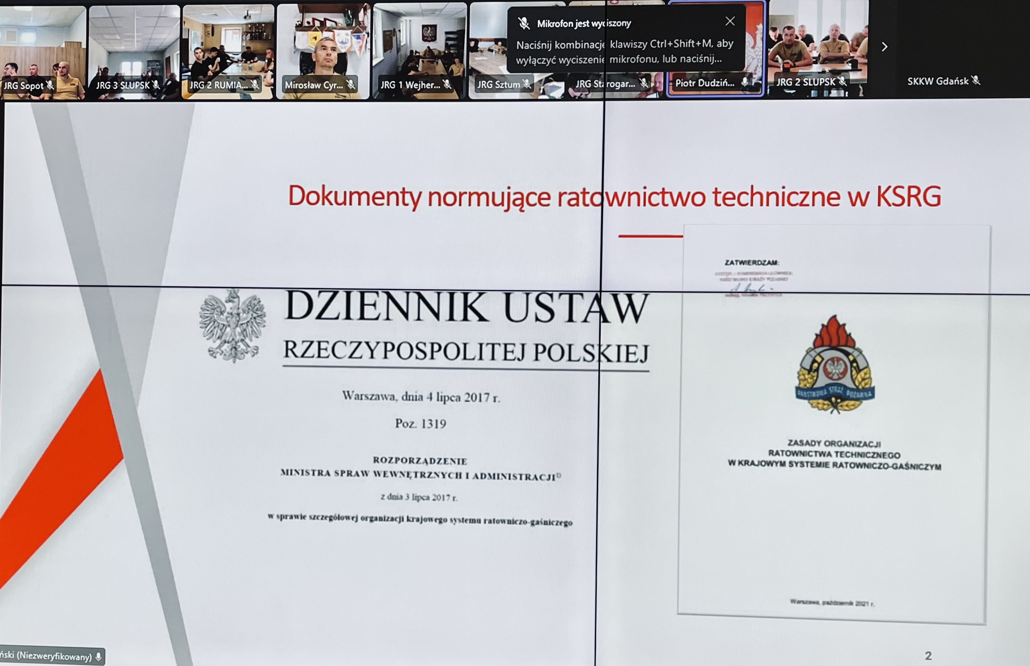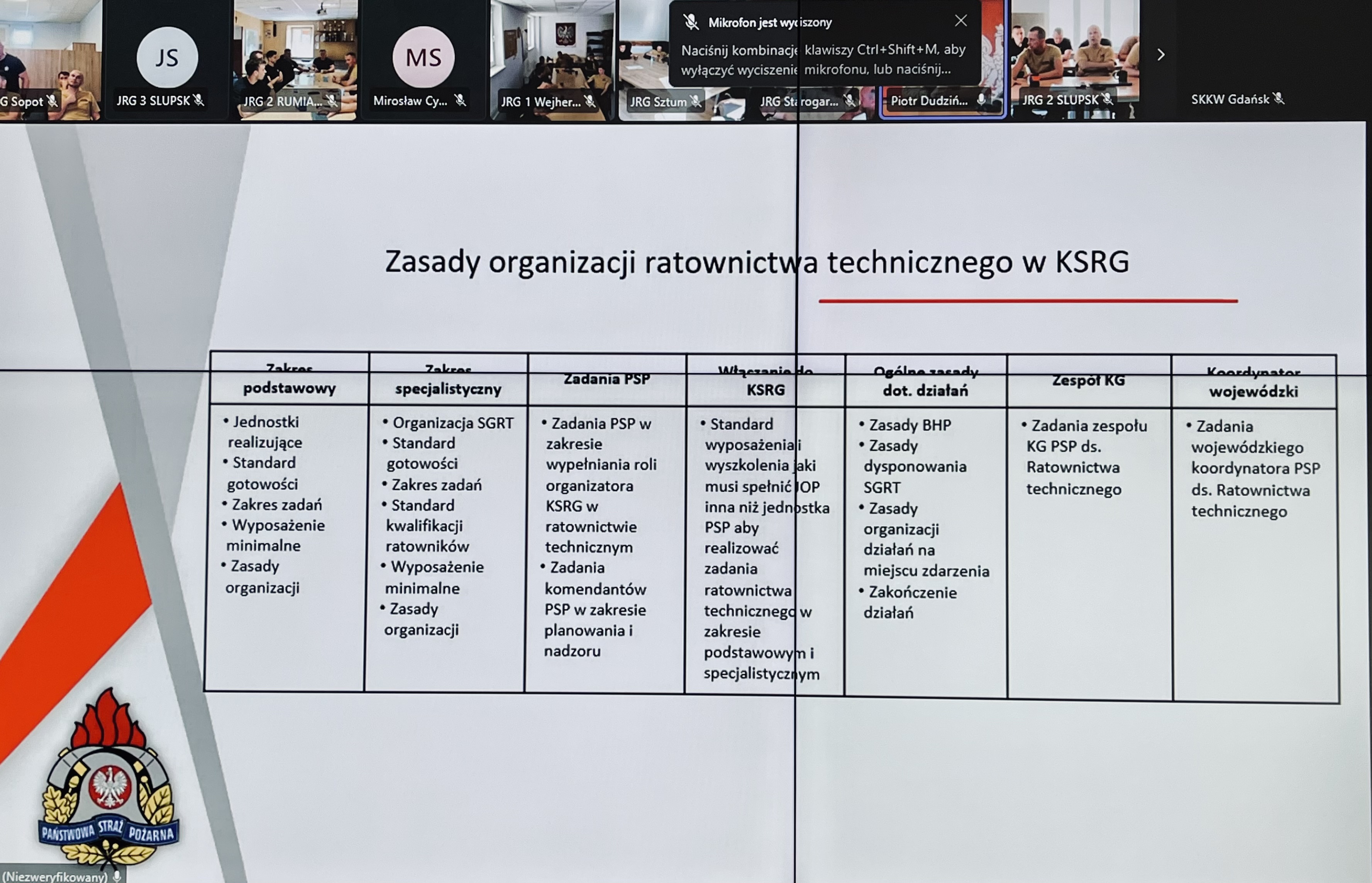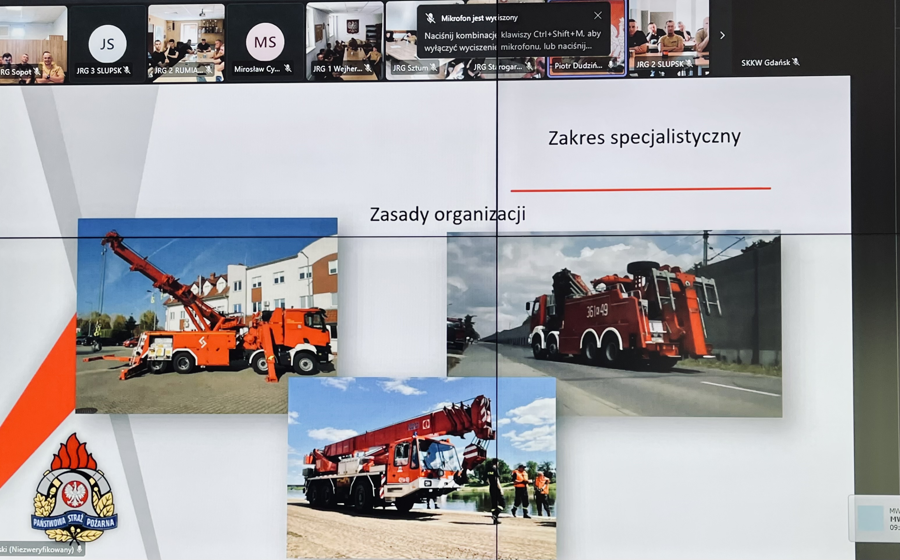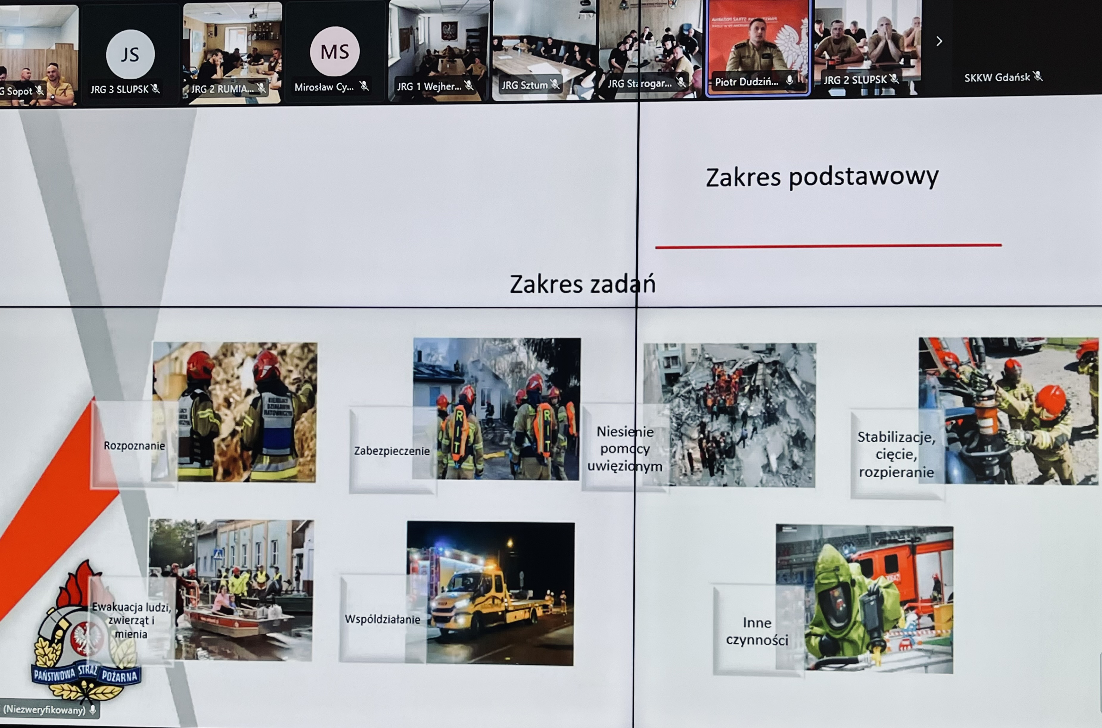 W dniach 12 – 14 sierpnia 2025 roku w Jednostkach Ratowniczo – Gaśniczych oraz w Stanowiskach Kierowania woj. pomorskiego odbyło się kolejne szkolenie wideokonferencyjne w ramach doskonalenia zawodowego. W trzydniowych zajęciach wzięło udział łącznie 876 osób, a ich głównym tematem była „Organizacja ratownictwa technicznego w KSRG w zakresie specjalistycznym”. Szkolenie przeprowadził st. kpt. Piotr Dudziński – zastępca dowódcy Jednostki Ratowniczo - Gaśniczej w Tczewie, który związany jest zawodowo z ochroną przeciwpożarową od 2012 roku.