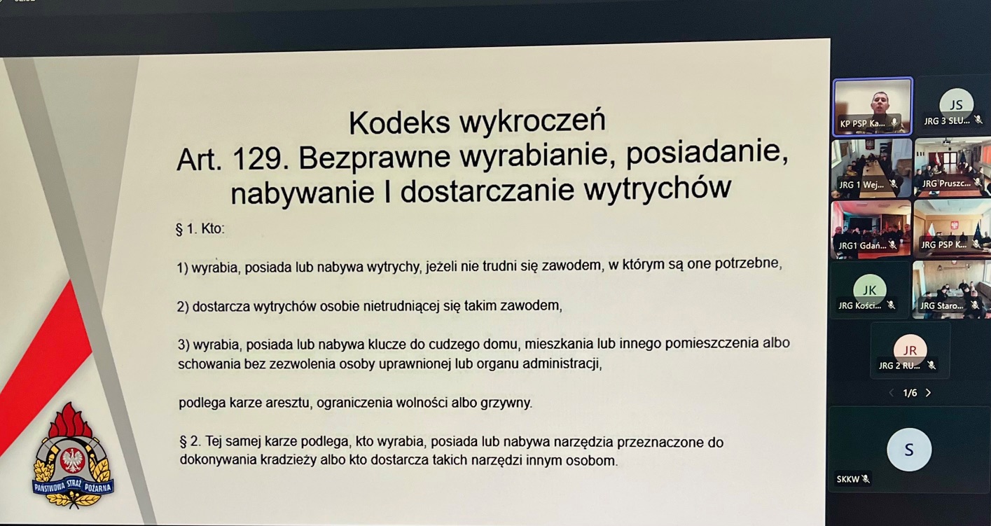 W dniach 23 – 25 września 2025 roku w Jednostkach Ratowniczo – Gaśniczych oraz w Stanowiskach Kierowania woj. pomorskiego odbyło się kolejne szkolenie wideokonferencyjne w ramach doskonalenia zawodowego. W trzydniowych zajęciach wzięło udział łącznie 839 osób, a ich głównym tematem było „Wykorzystywanie narzędzi do małoinwazyjnego wykonywania dostępu do pomieszczeń”.